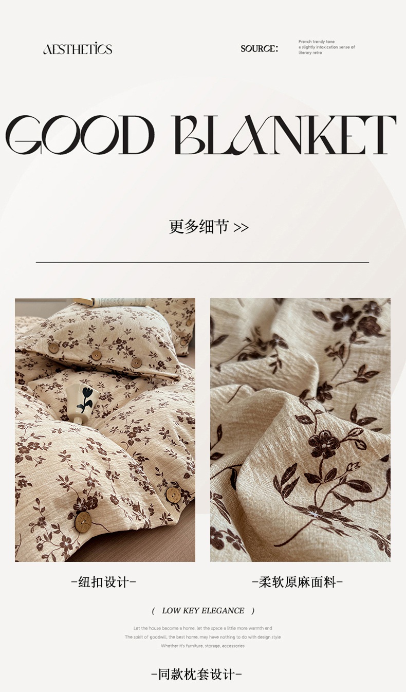 当前位置: 91家纺网 > 商品网购 > 床品套件 > 四件套 > 其它四件套 > 优佳优品 2025秋冬新款A类高克重亚麻复古侘季风复麻系列四件套 碎花漫语