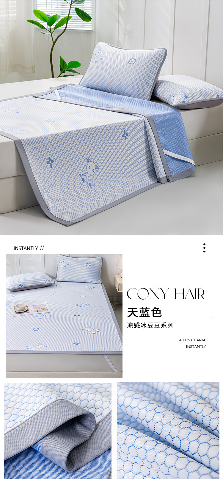 • 91家纺网 家纺一手货源 找家纺 观月轩家纺 2025新款亲肤舒适冰豆豆凉感席 凉席席子 暴力熊-浅灰色