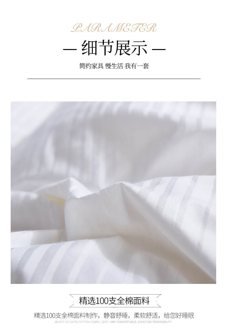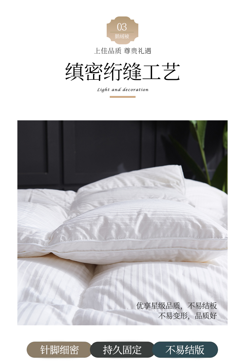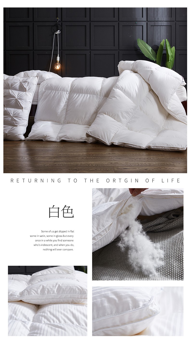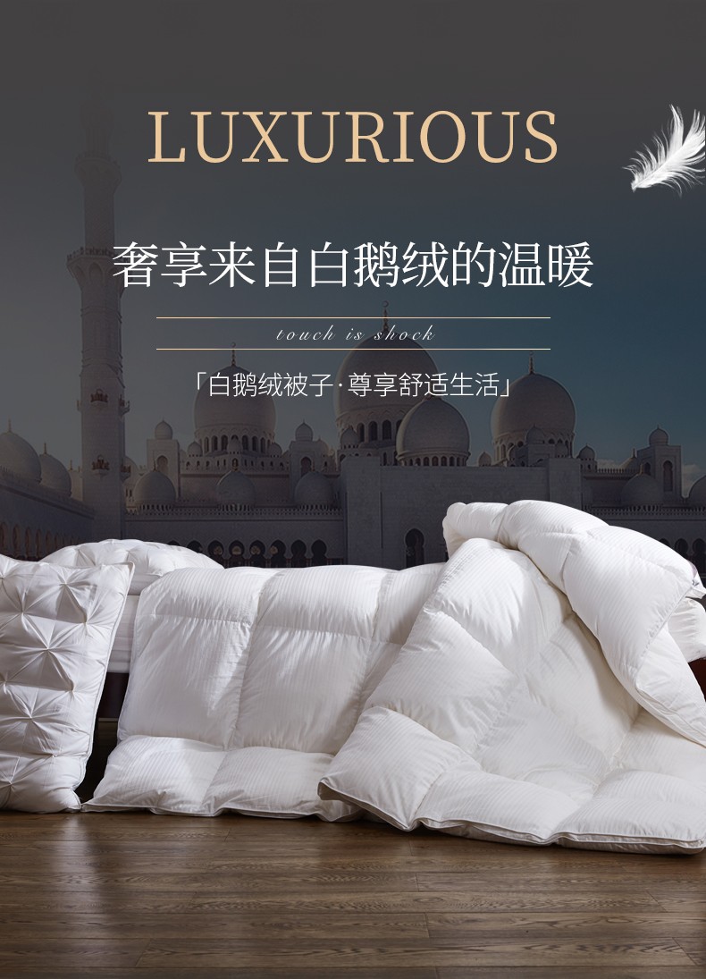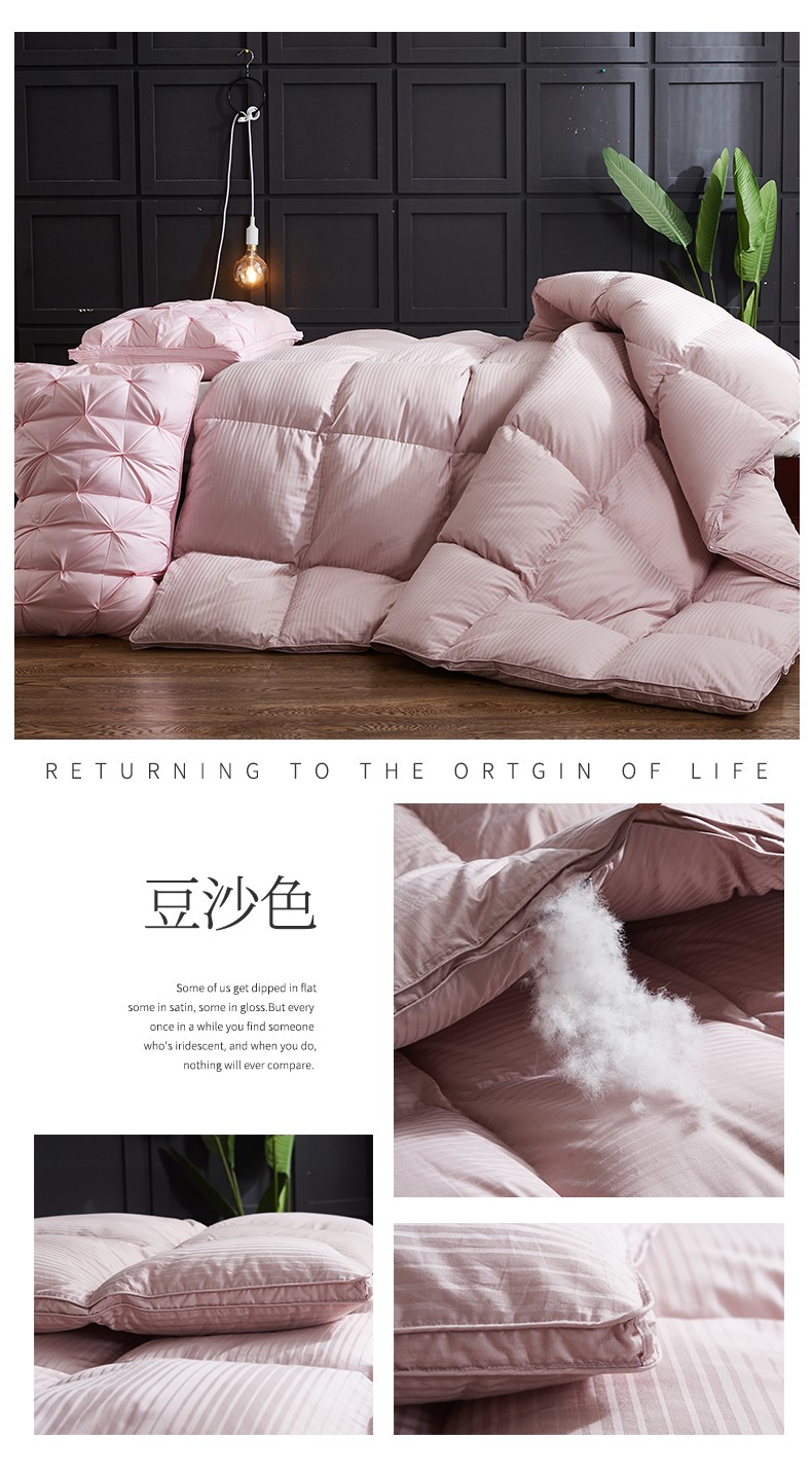 面料:100支纯棉缎纹 填充:95%白鹅绒 尺寸/填充重量 春秋被