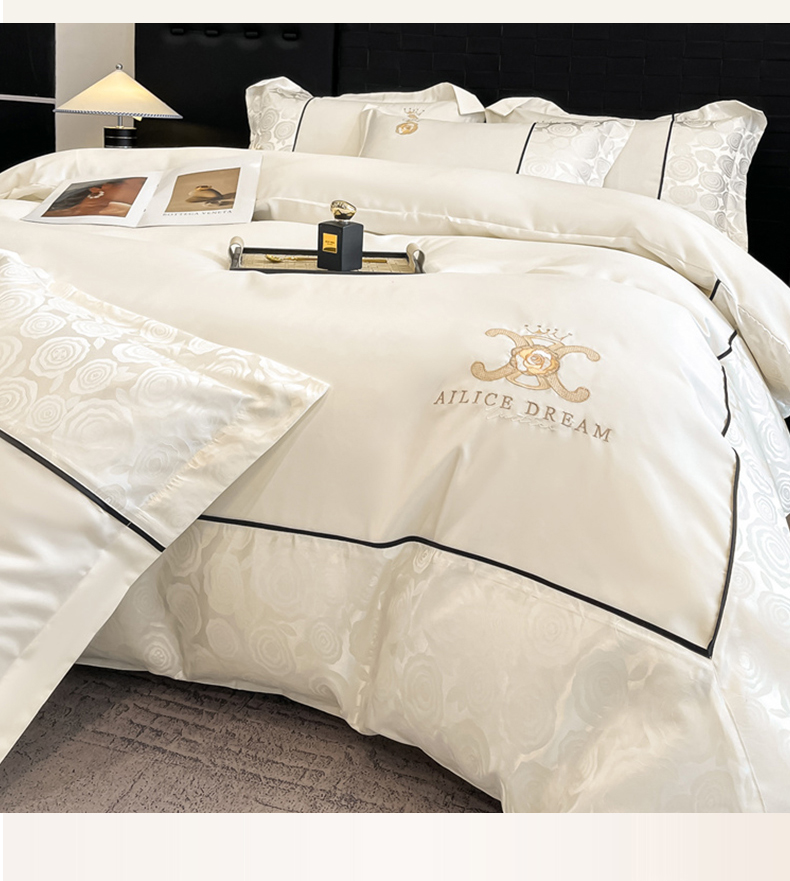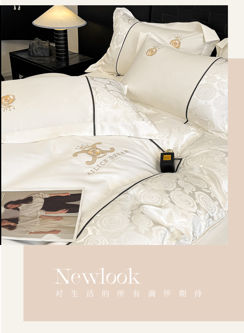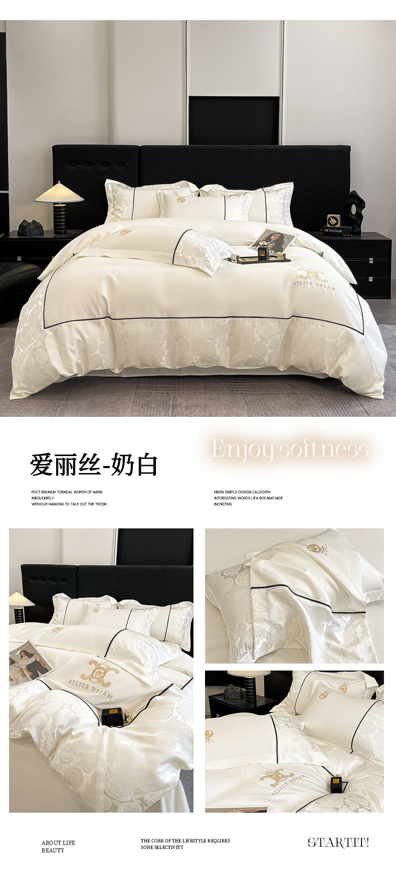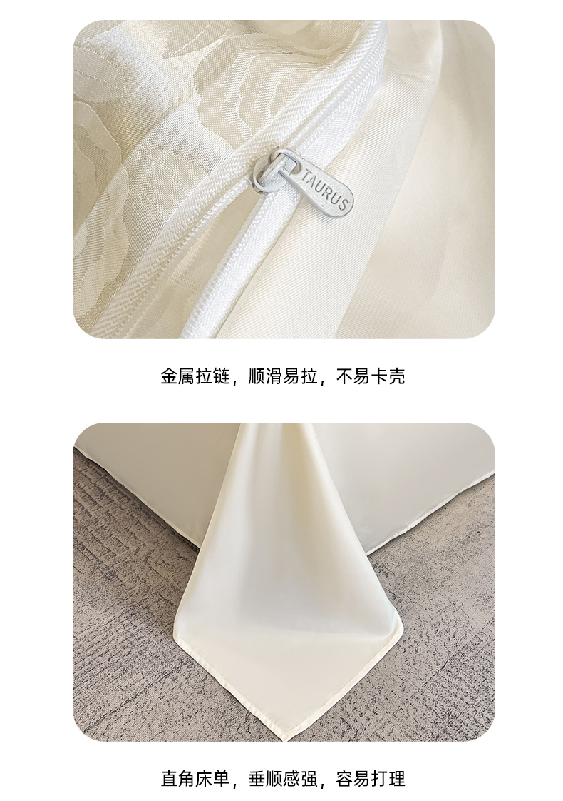 当前位置: 91家纺网 > 商品网购 > 床品套件 > 四件套 > 普通磨毛四件套 > 金牛座家纺 2025新款贡缎提花磨毛亲肤棉大拼角刺绣四件套 爱丽丝-奶白