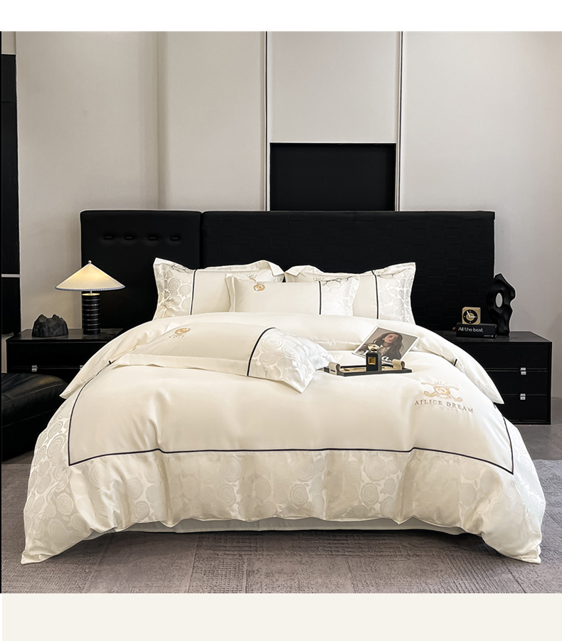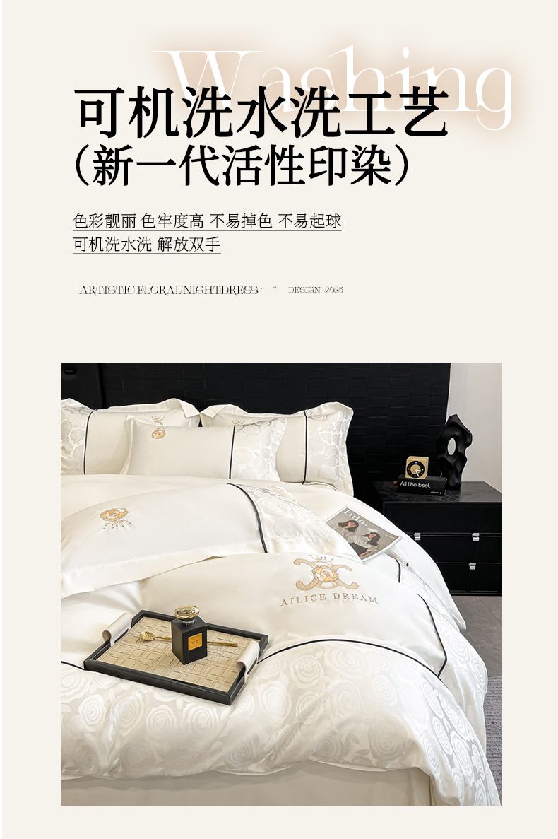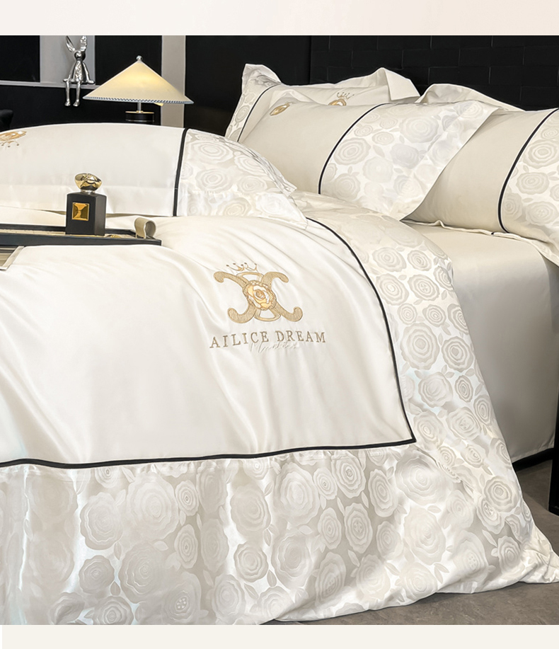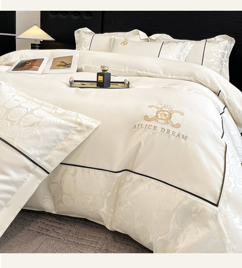 当前位置: 91家纺网 > 商品网购 > 床品套件 > 四件套 > 普通磨毛四件套 > 金牛座家纺 2025新款贡缎提花磨毛亲肤棉大拼角刺绣四件套 爱丽丝-奶白