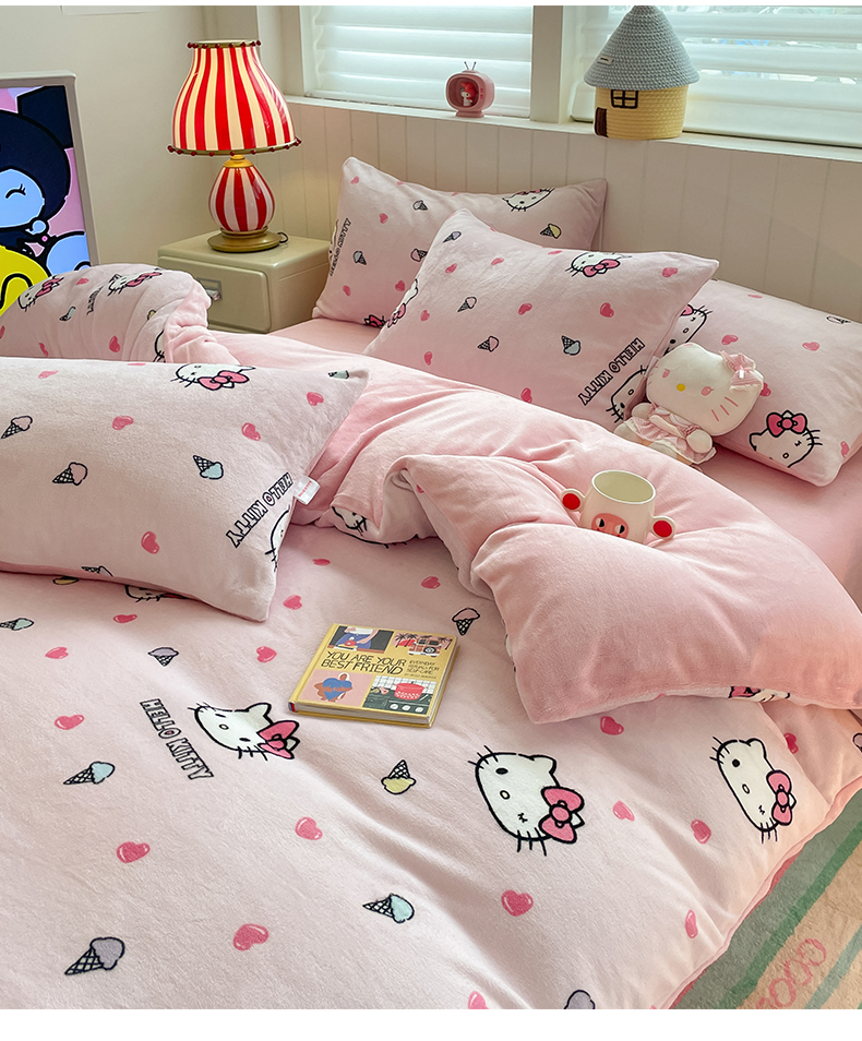 当前位置: 91家纺网 > 商品网购 > 床品套件 > 四件套 > 牛奶绒四件套 > 桃子家居 2025新款A类正版三丽鸥授权卡通加厚高克重牛奶绒系列四件套 绒三丽鸥-粉心甜筒kitty