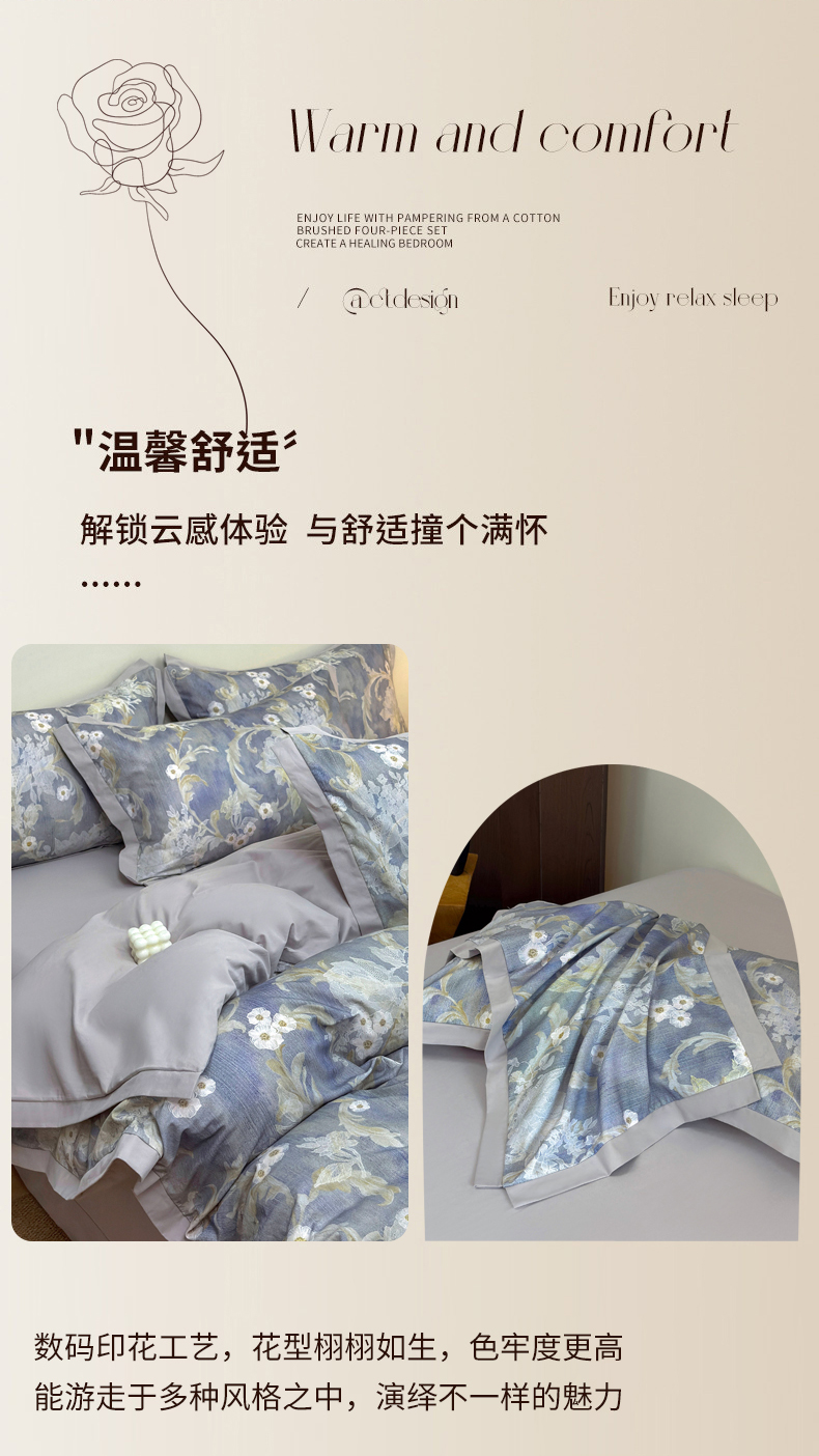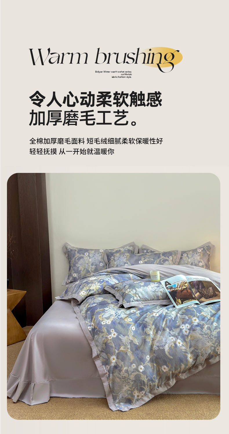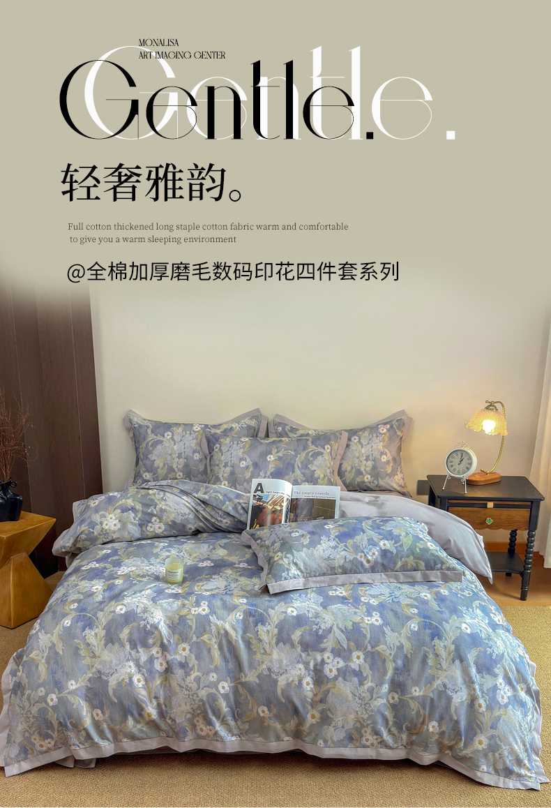 当前位置: 91家纺网 > 商品网购 > 床品套件 > 四件套 > 全棉普通四件套 > 未来家居 2025新款秋冬全棉加厚磨毛纯色印花缺角工艺系列高端礼盒包装四件套 若芙-蓝