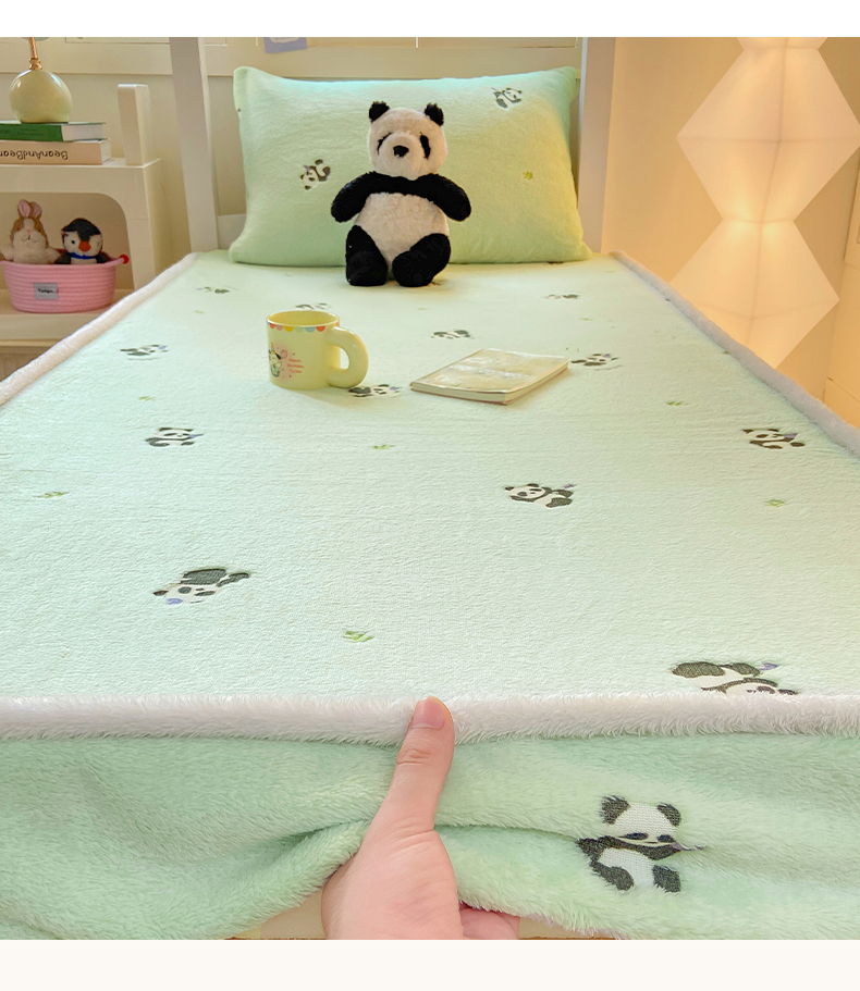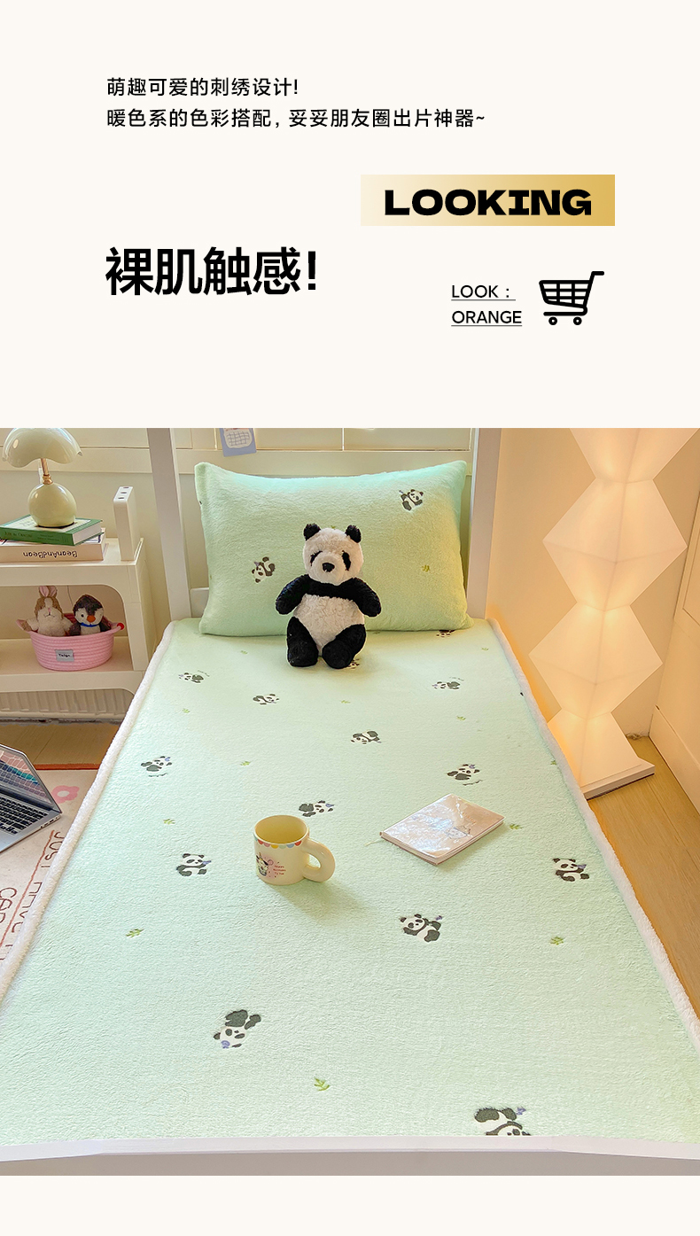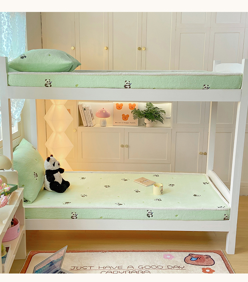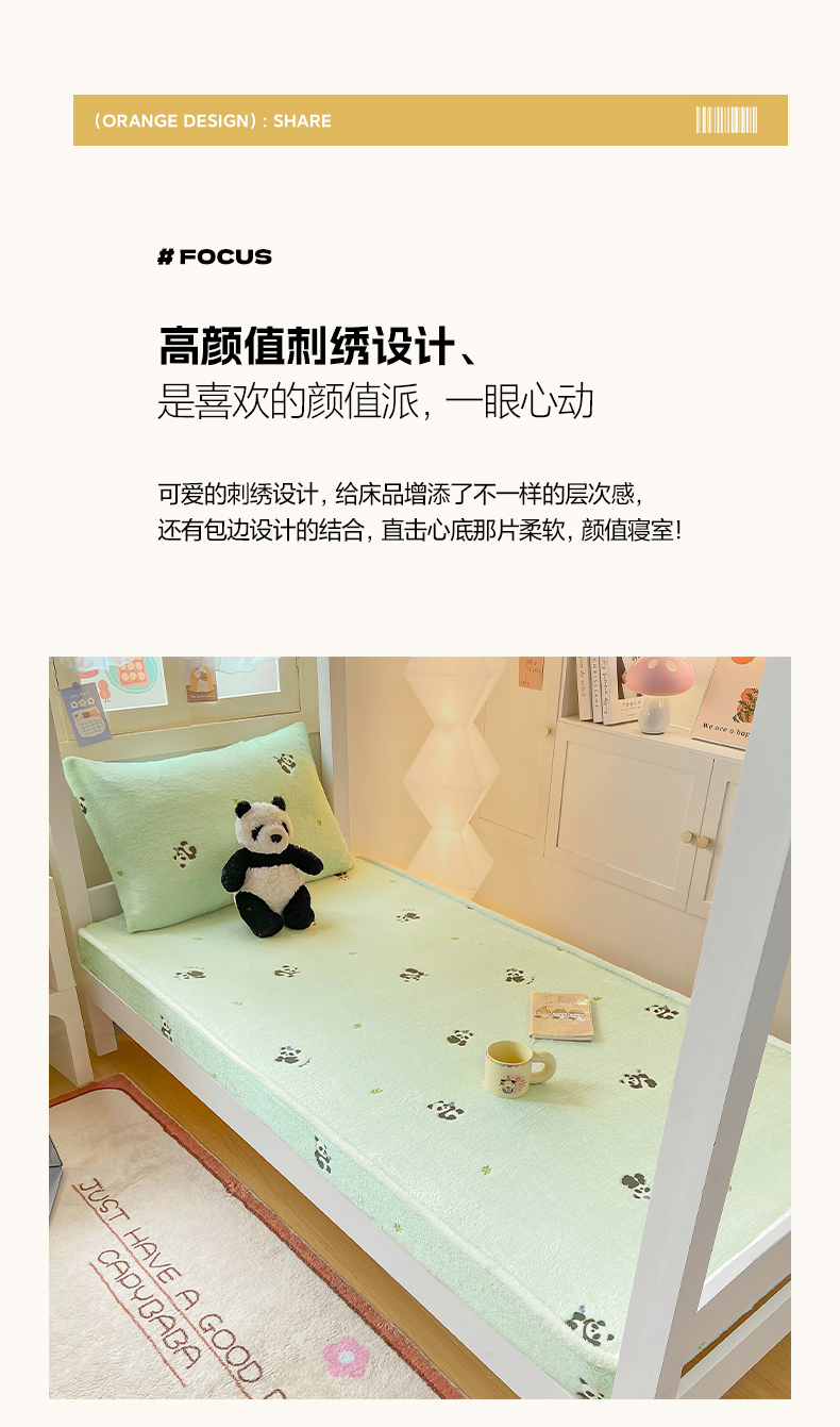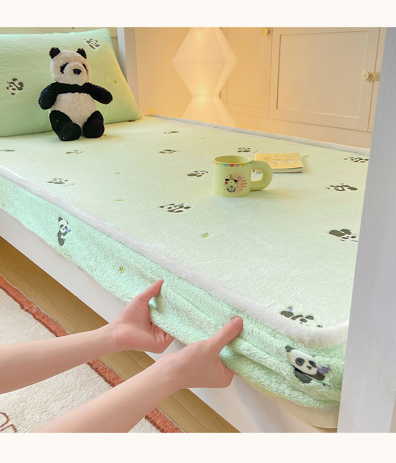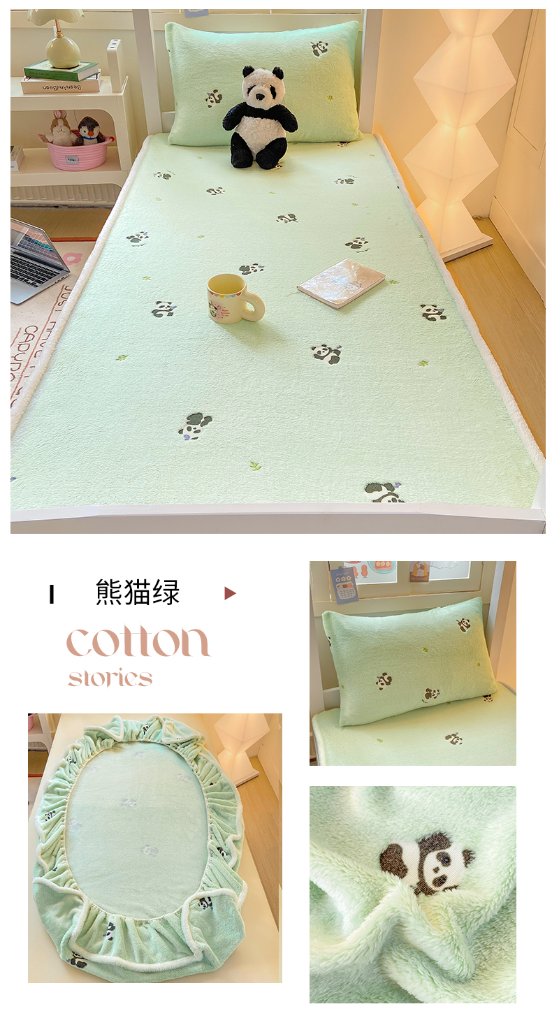 • 91家纺网 家纺一手货源 找家纺 眠势力 2025新款250g双面绒学生床笠单件三件套宿舍上下铺刺绣款牛奶绒床垫保护套 熊猫绿【双面绒刺绣款】
