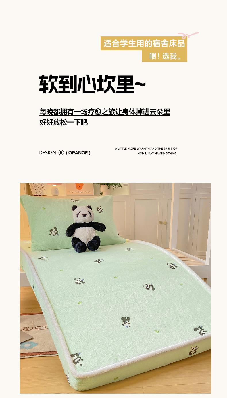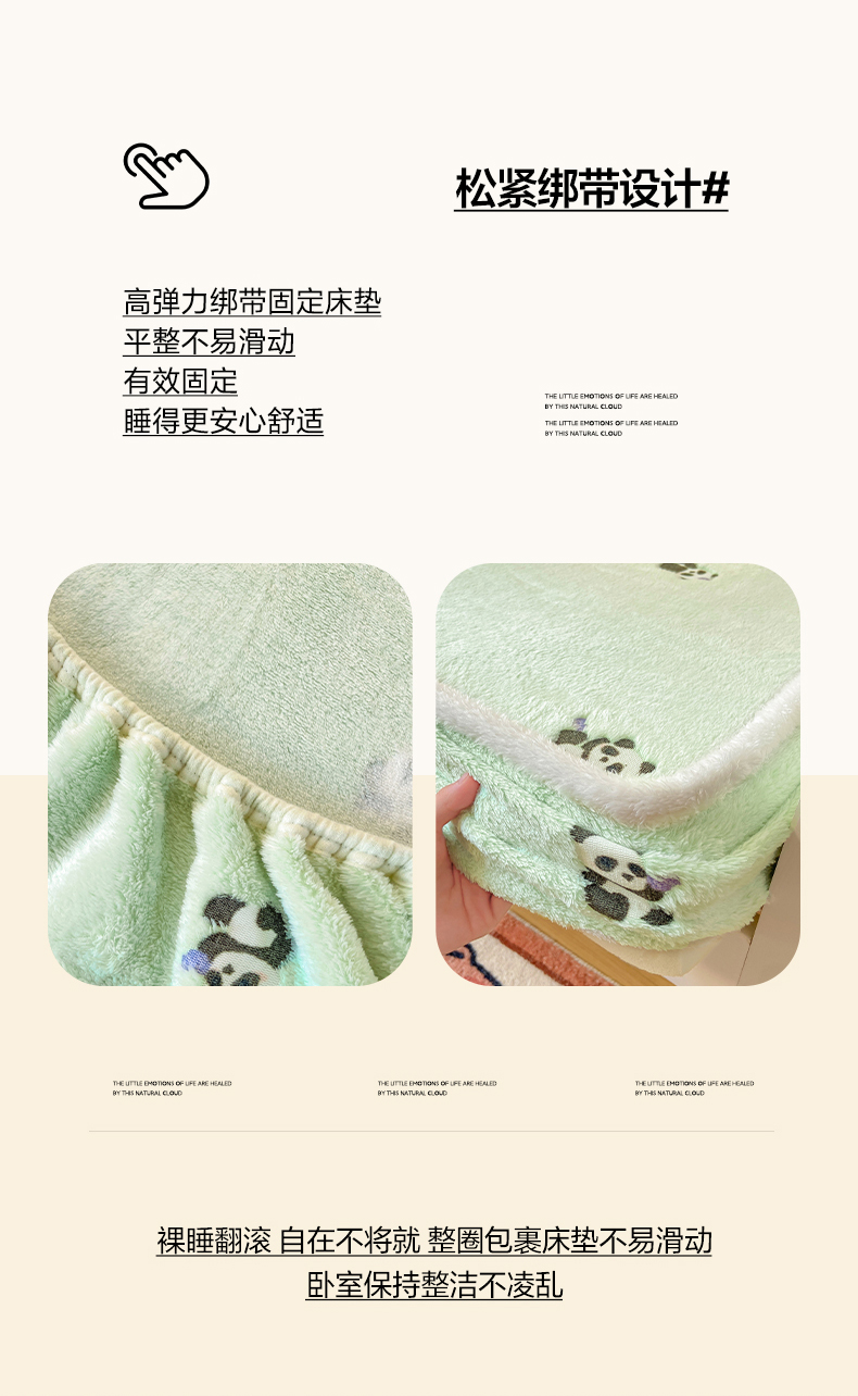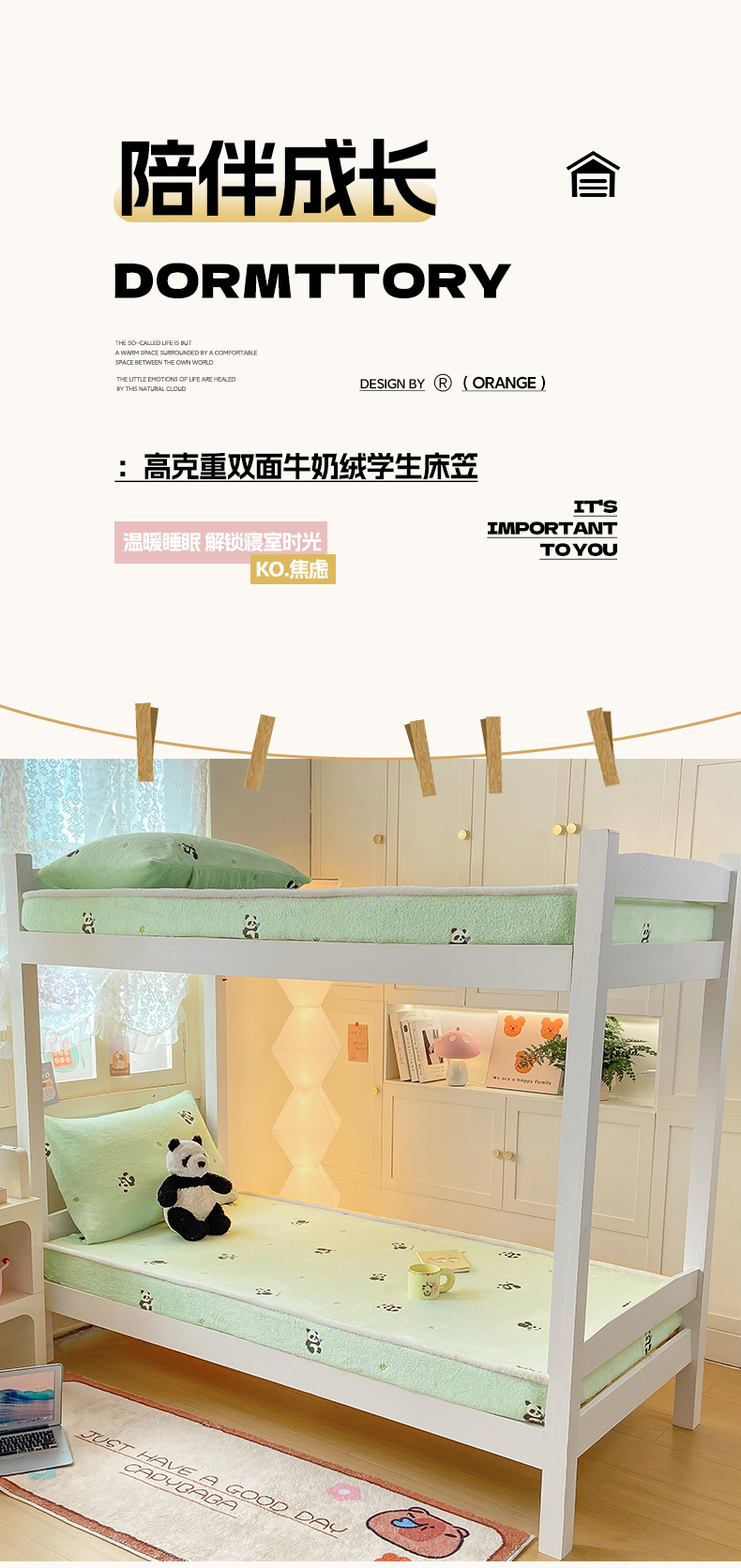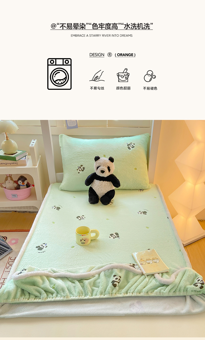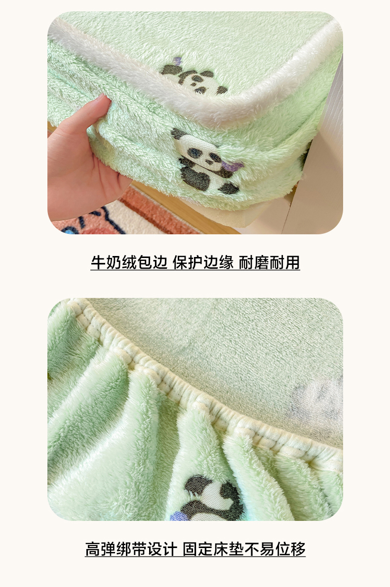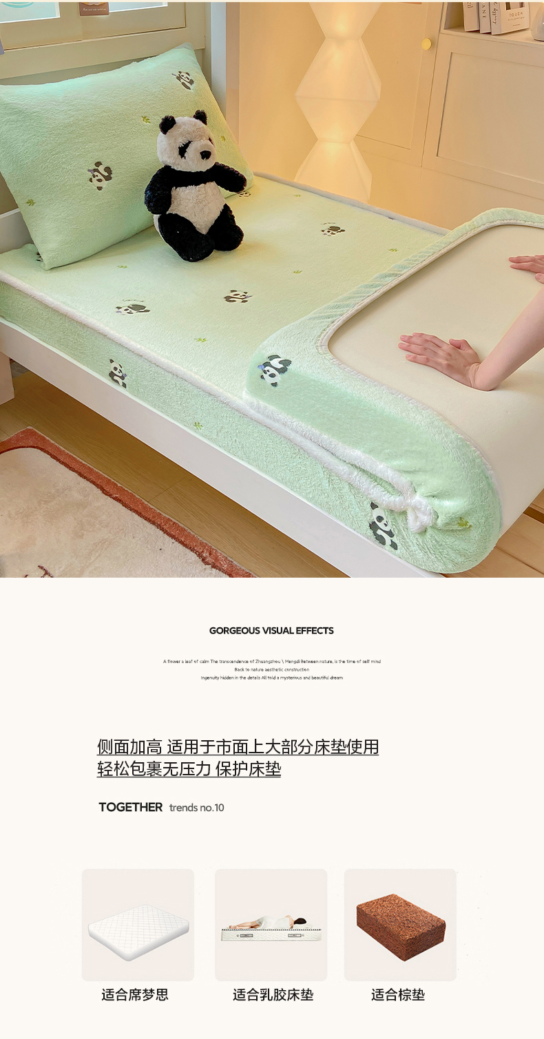 • 91家纺网 家纺一手货源 找家纺 眠势力 2025新款250g双面绒学生床笠单件三件套宿舍上下铺刺绣款牛奶绒床垫保护套 熊猫绿【双面绒刺绣款】