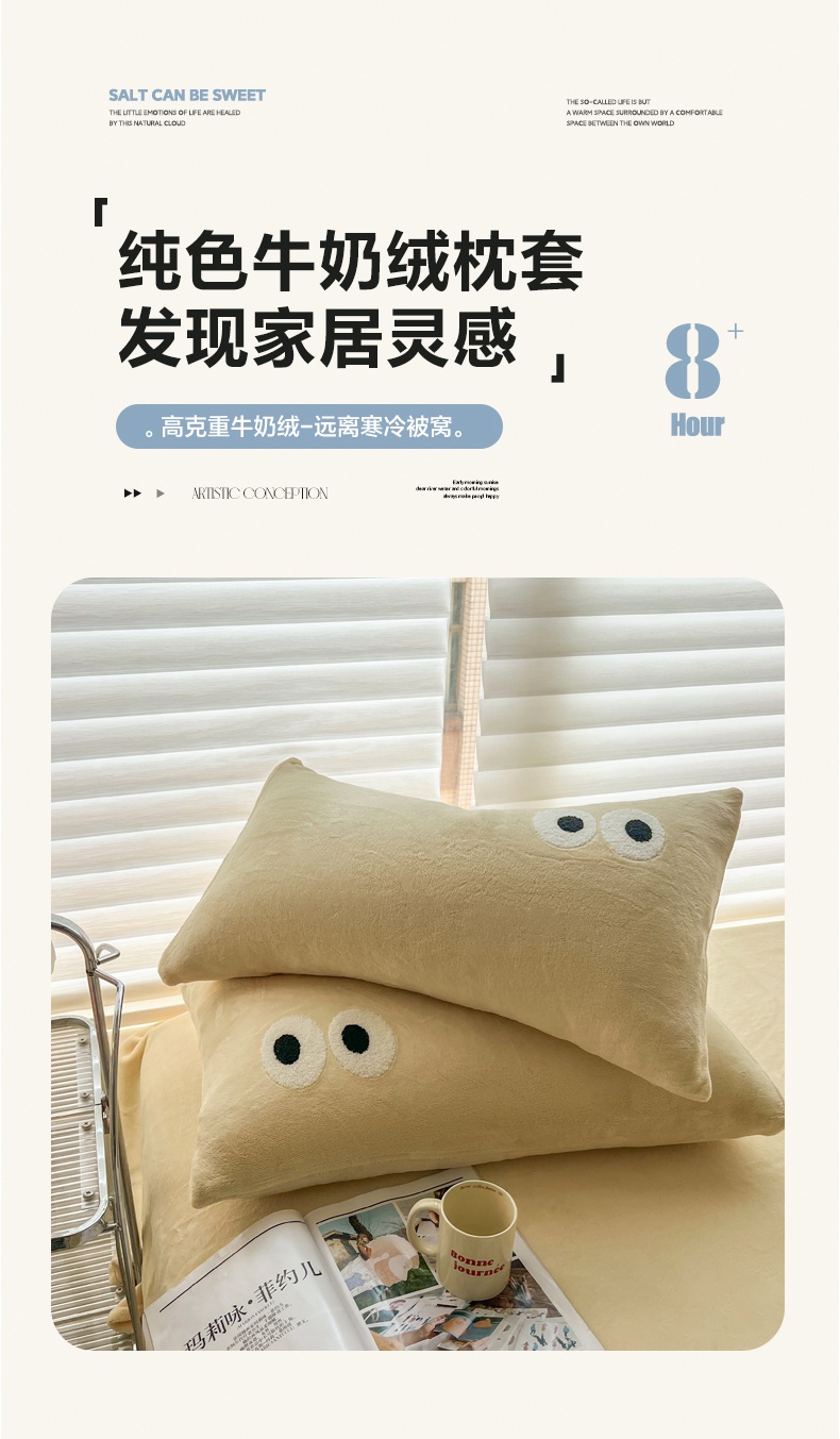 商品名称:悦织湾家纺 2025新款牛奶绒纯色单品枕套冬季加厚保暖透气轻奢时尚卡通枕套单品枕套枕套单件 牛奶绒奶黄