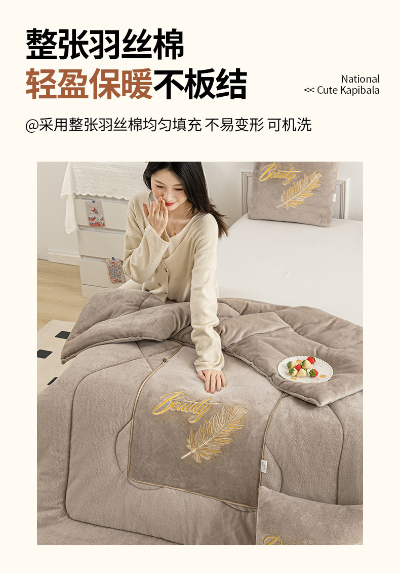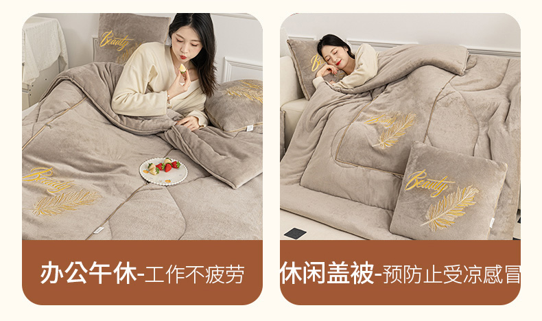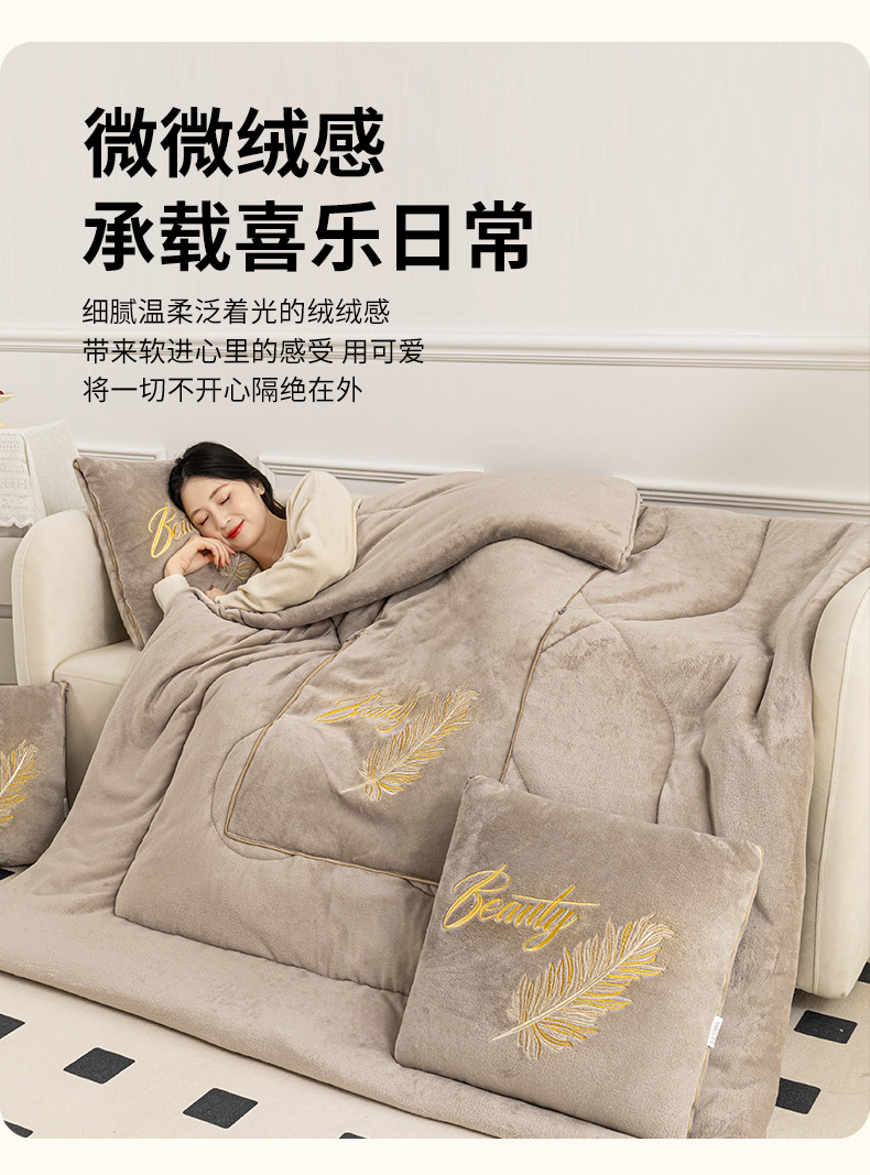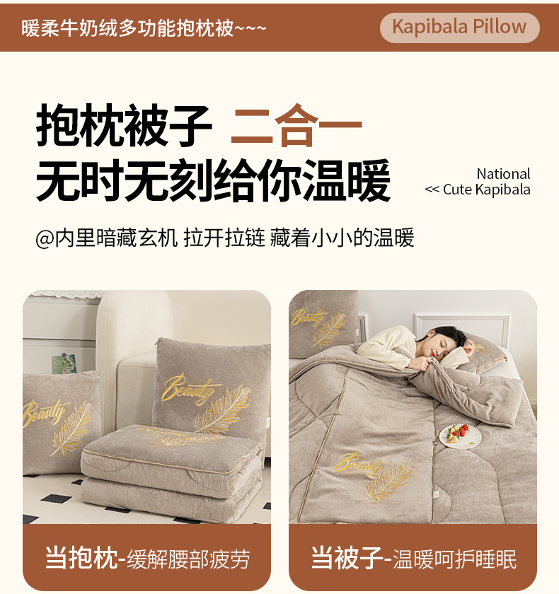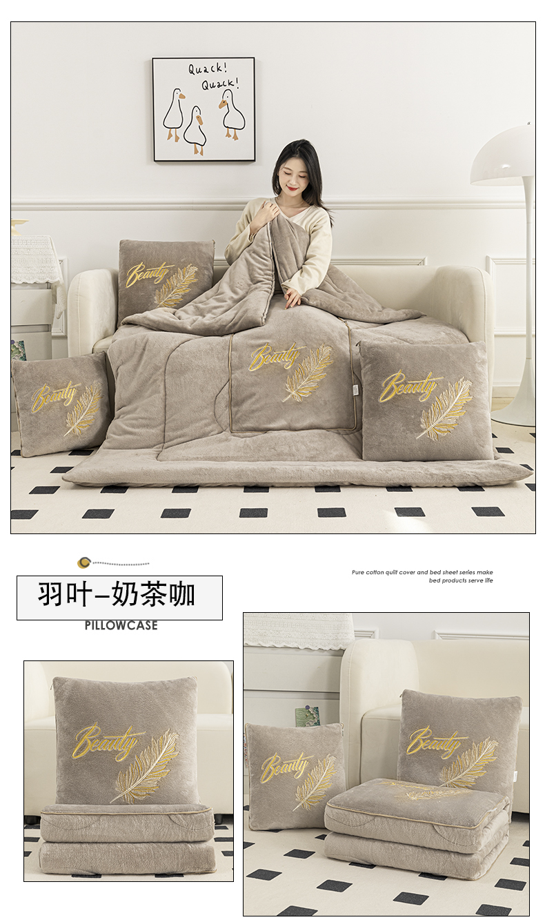 商品名称:哩哩熊 2025新款抱枕被子两用加厚二合一汽车载枕头办公室午睡毯子冬天靠枕-羽叶 羽叶-奶茶咖