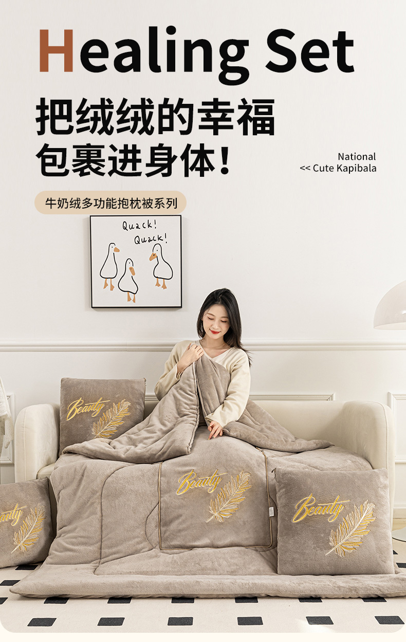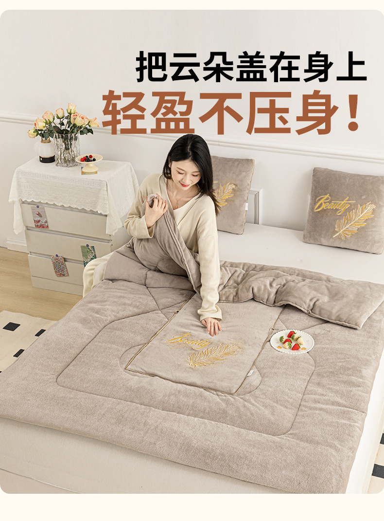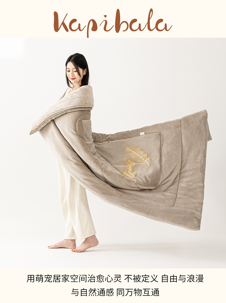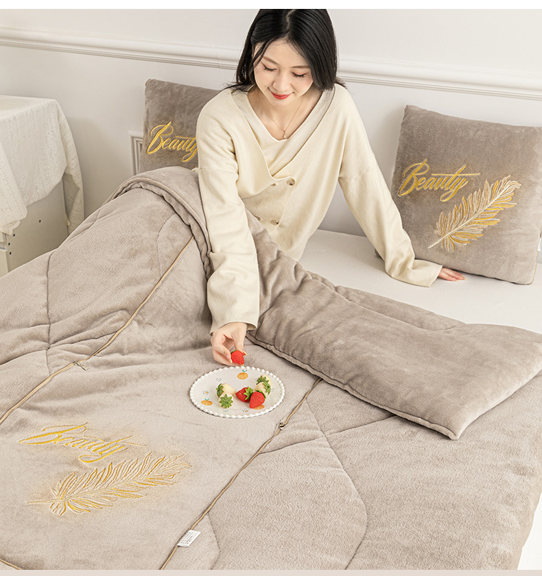 商品名称:哩哩熊 2025新款抱枕被子两用加厚二合一汽车载枕头办公室午睡毯子冬天靠枕-羽叶 羽叶-奶茶咖