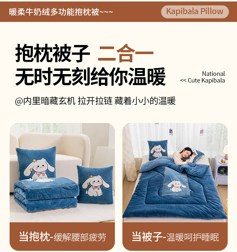 哩哩熊 2025新款抱枕被子两用加厚二合一汽车载枕头办公室午睡毯子冬天靠枕-长耳兔系列 组合图仅供展示不可下单,组合图仅供展示不可下单
