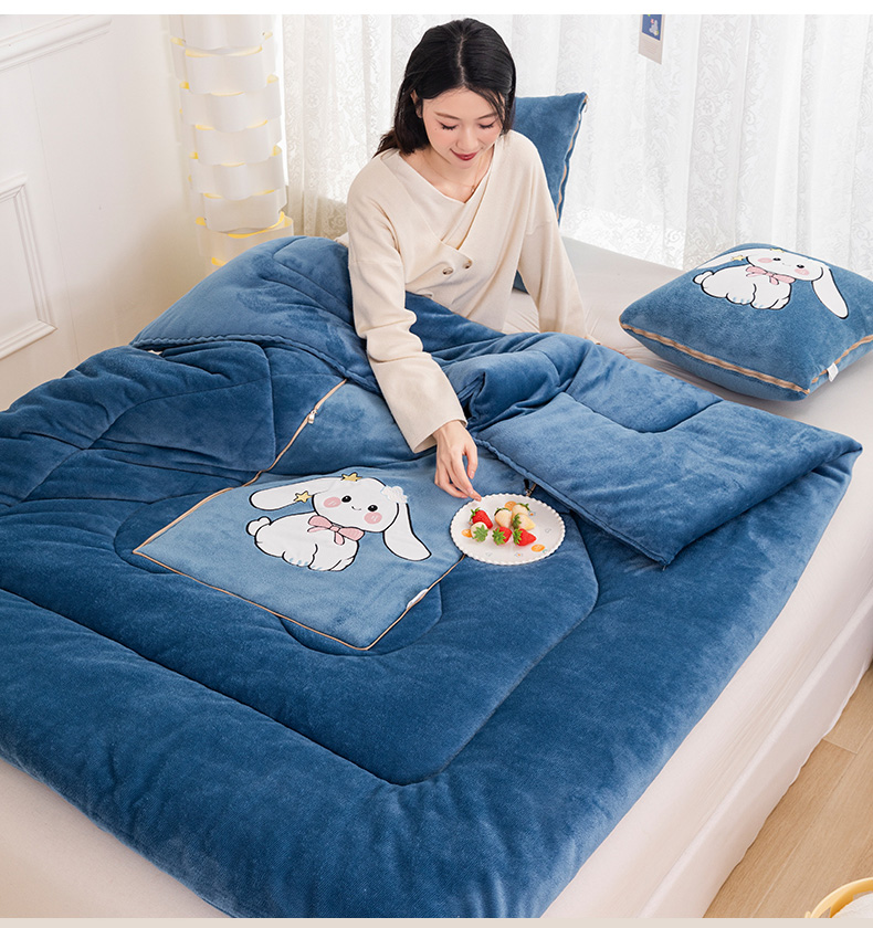 商品名称:哩哩熊 2025新款抱枕被子两用加厚二合一汽车载枕头办公室午睡毯子冬天靠枕-长耳兔系列 长耳兔-宝石蓝