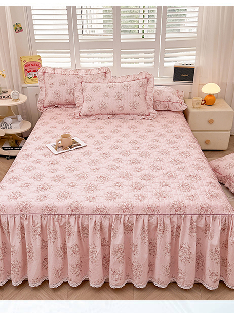 • 91家纺网 家纺一手货源 找家纺 缦彩 2025新款韩版100%全棉公主风夹棉床裙纯棉花边加厚床罩单件 卡曼-粉