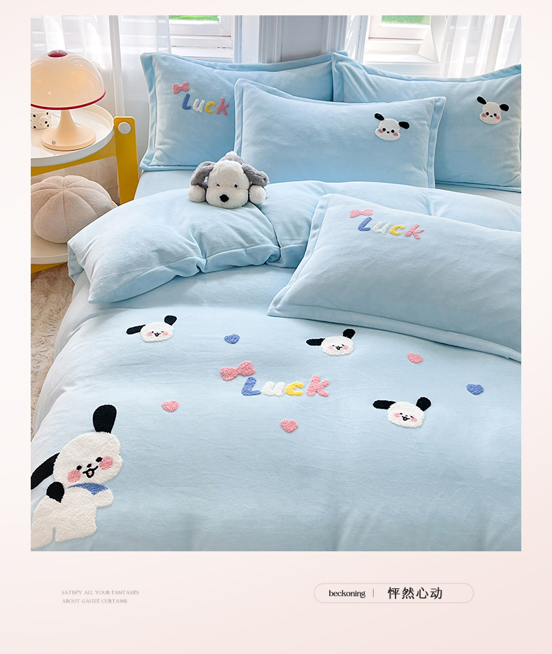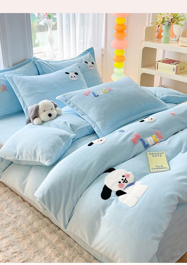 (总)雨菲家纺 2025新款水洗棉韩版荷叶花边毛巾绣四件套,开心狗-粉,开心狗-黄,开心狗-蓝,米米兔-粉,米米兔-粉紫,米米兔-杏,米米兔-杏紫,米米兔-紫