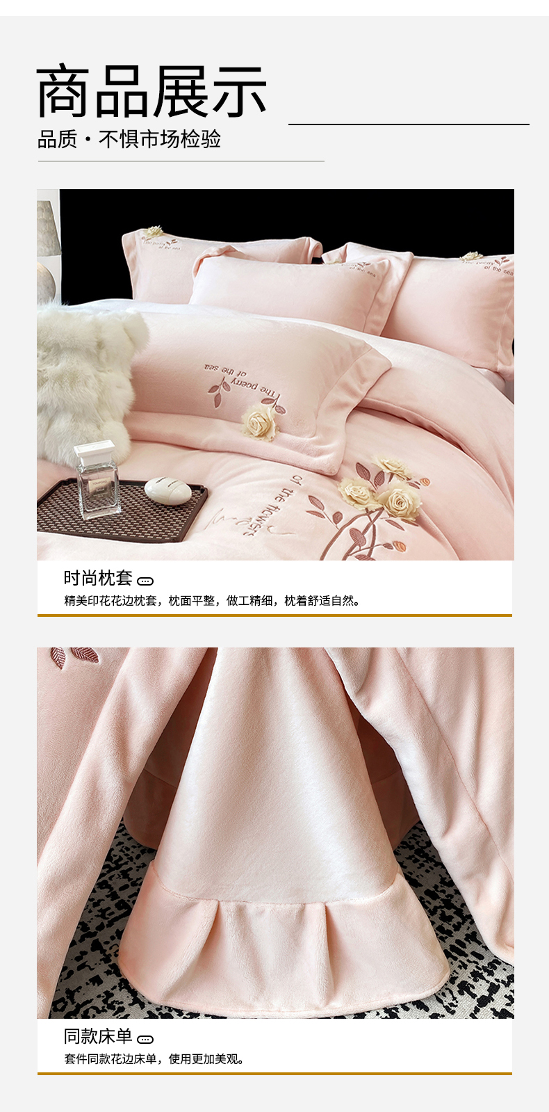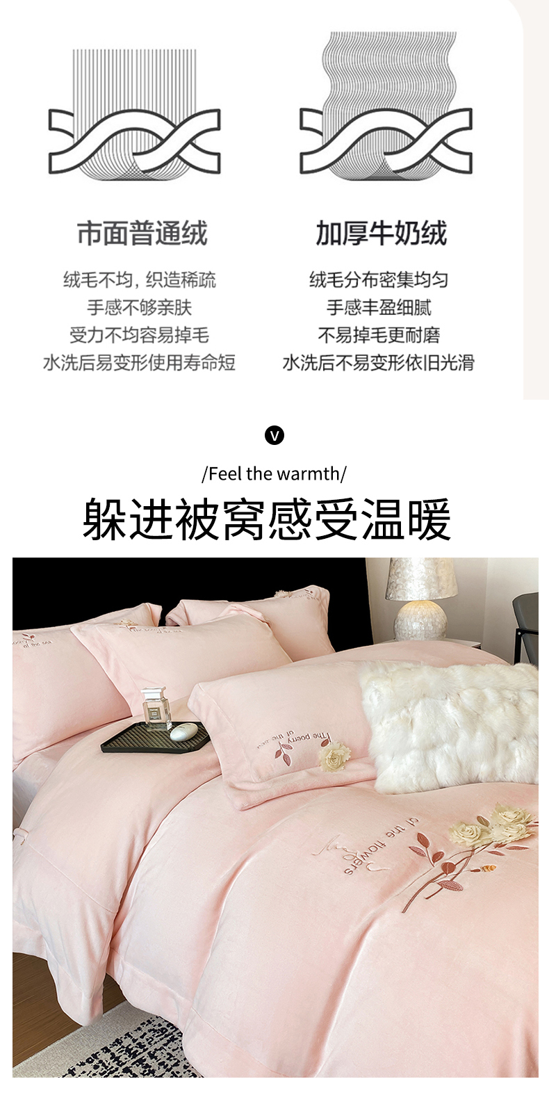 (总)席之家 2025新款刺绣牛奶绒四件套,花语-卡其玉,花语-奶咖,花语-青柠绿,花语-少女粉