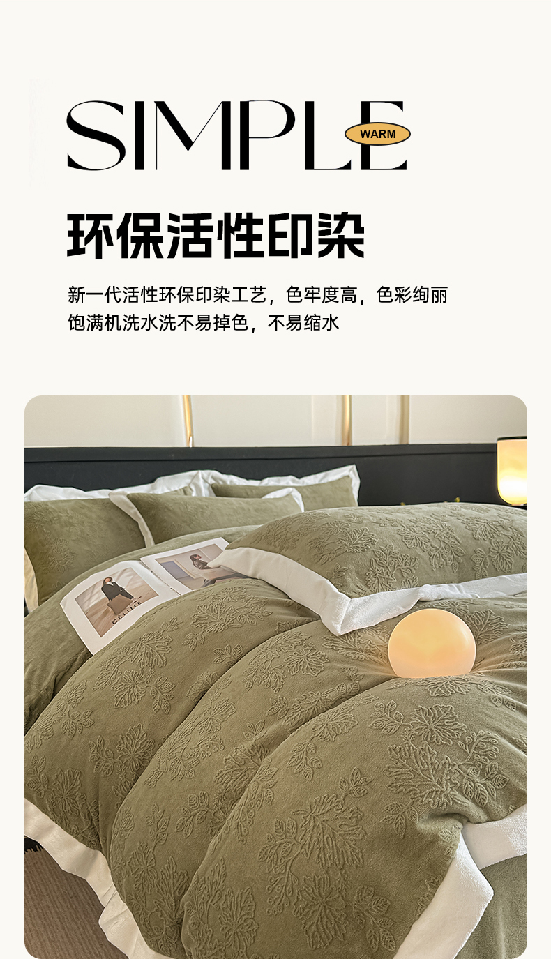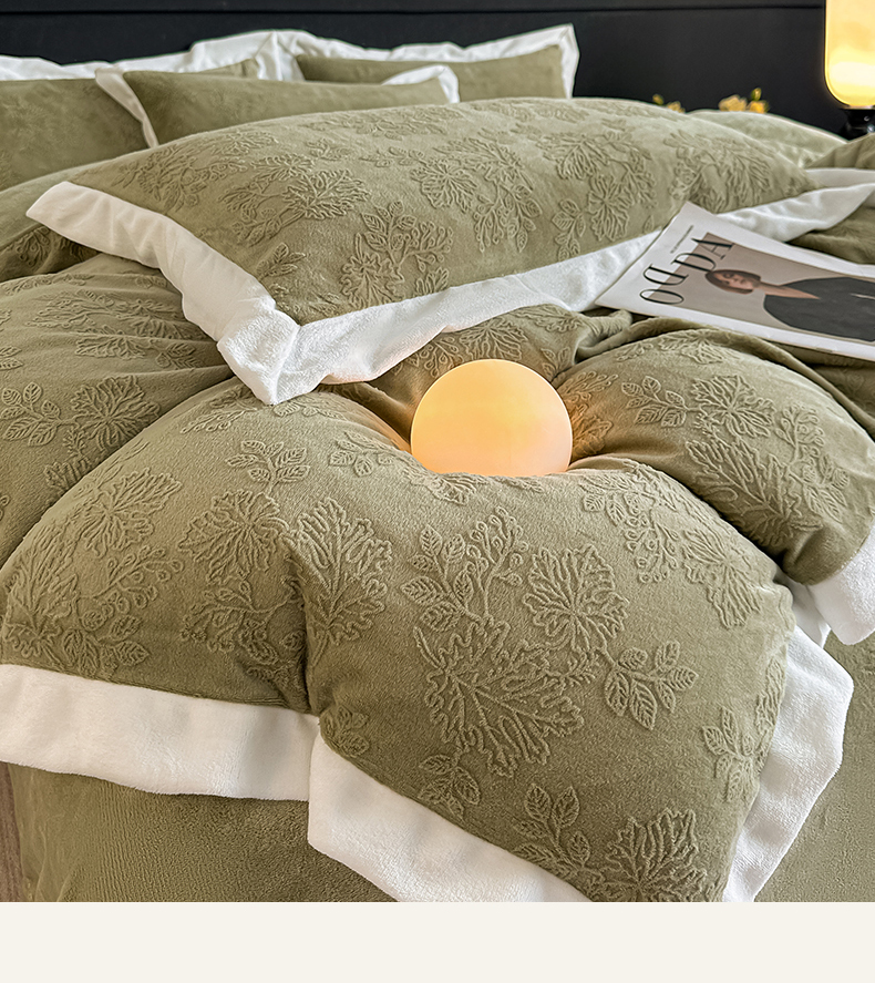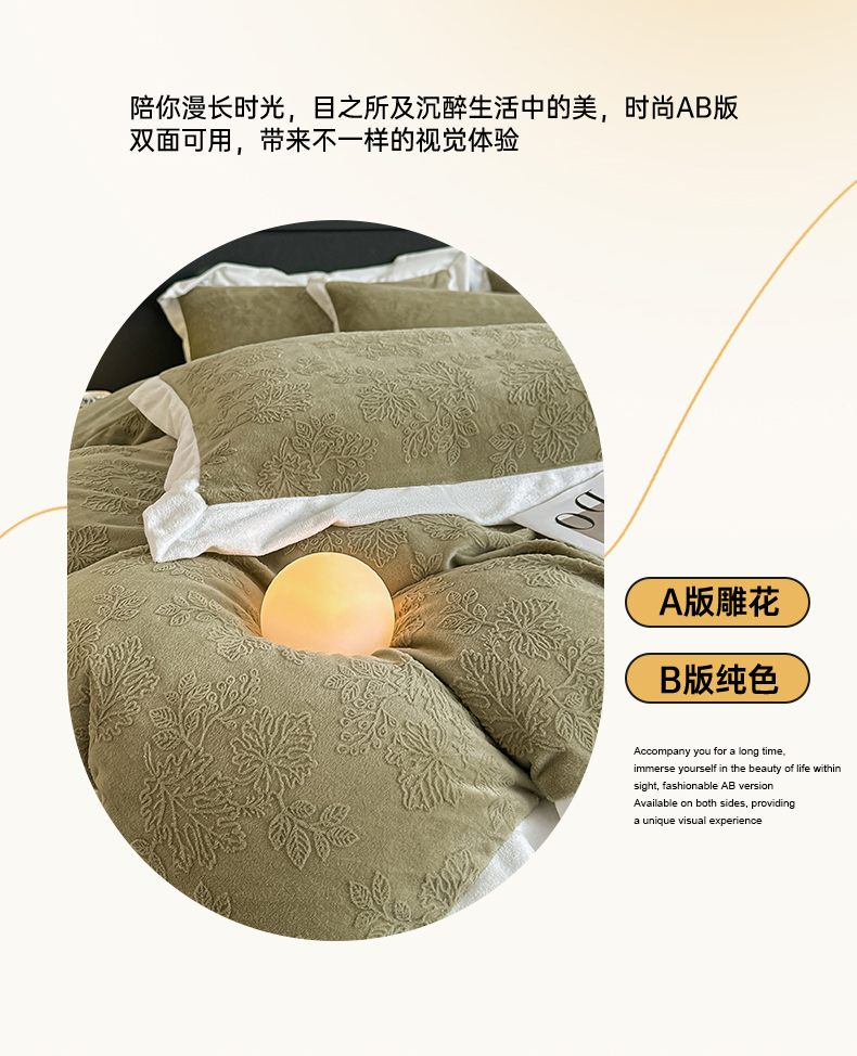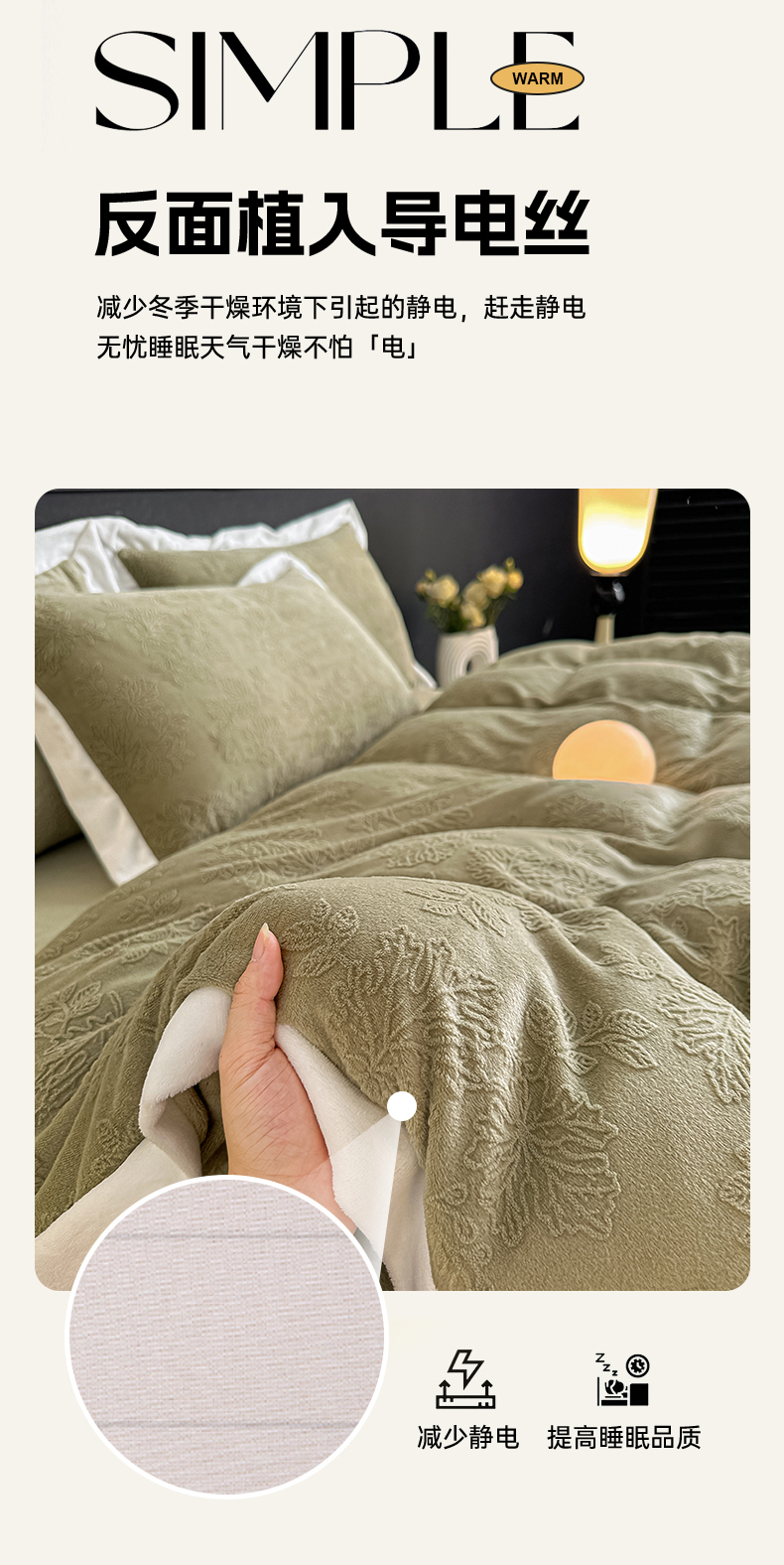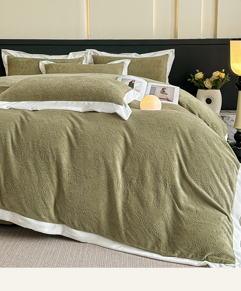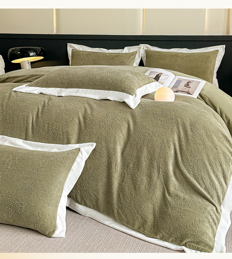 当前位置: 91家纺网 > 商品网购 > 床品套件 > 四件套 > 牛奶绒四件套 > 亿梵家居 2025秋冬新款-拼角款A类全消光牛奶绒立体5D雕花绒四件套 布兰卡-柳茶绿