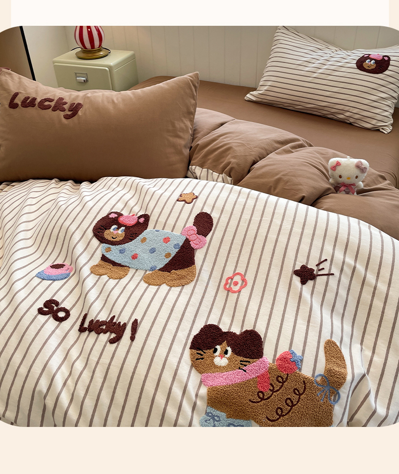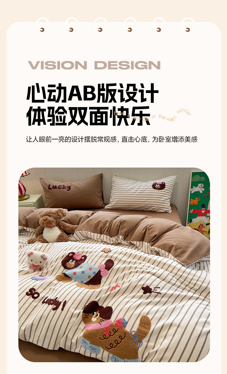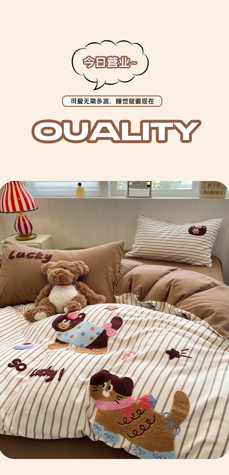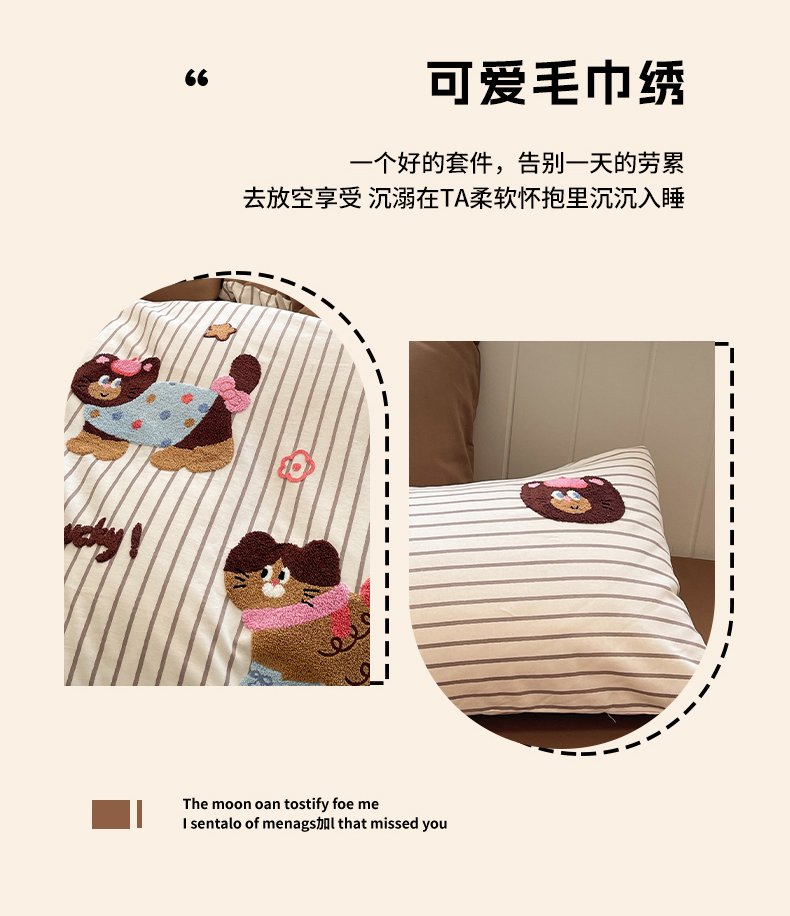 当前位置: 91家纺网 > 商品网购 > 床品套件 > 四件套 > 普通磨毛四件套 > 蓝邻家纺 2025新款全棉磨毛卡通刺绣款四件套--毛巾绣系列 喵小布