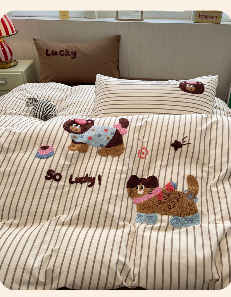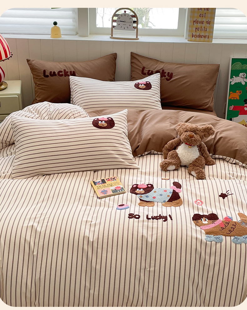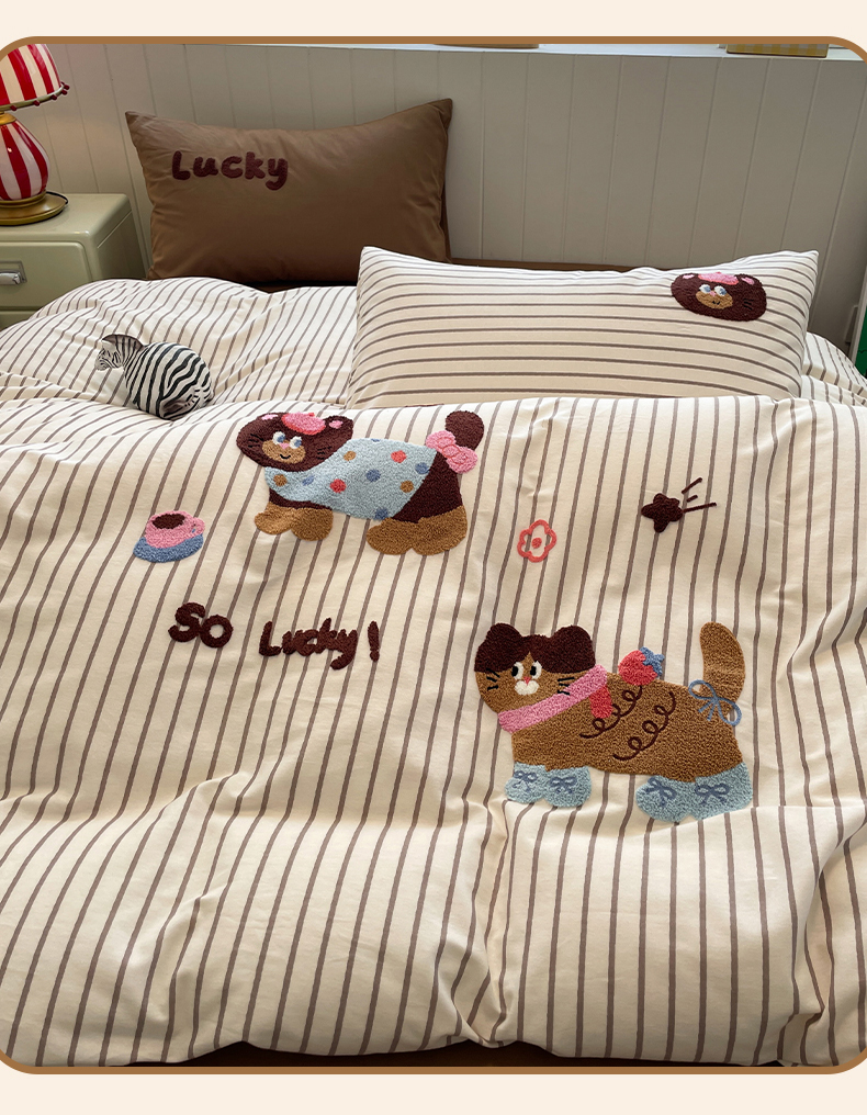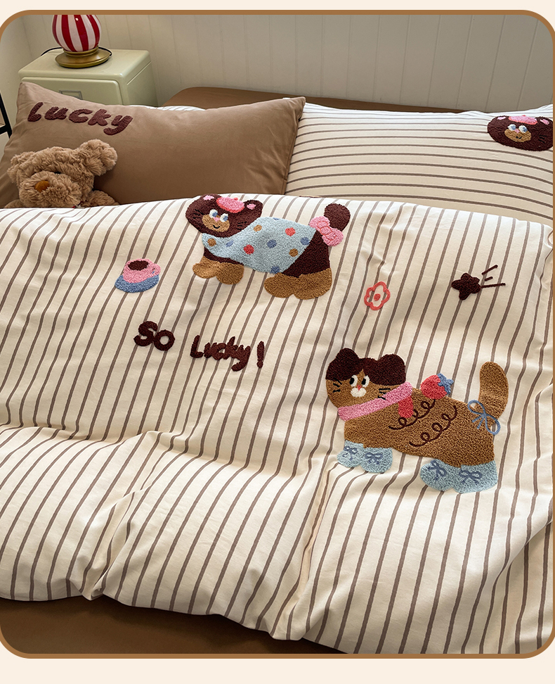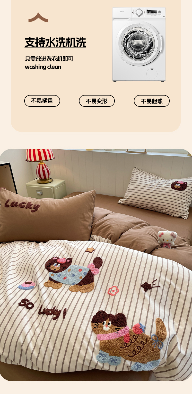 当前位置: 91家纺网 > 商品网购 > 床品套件 > 四件套 > 普通磨毛四件套 > 蓝邻家纺 2025新款全棉磨毛卡通刺绣款四件套--毛巾绣系列 喵小布