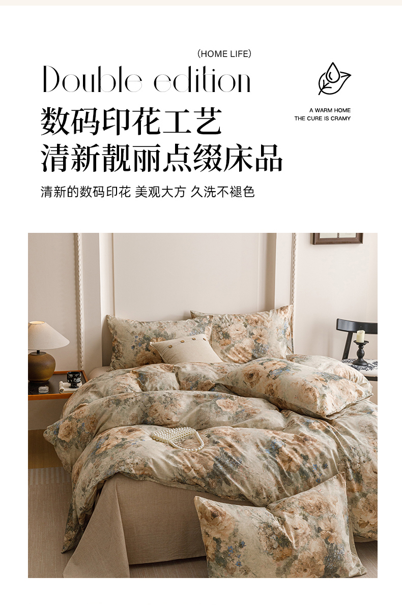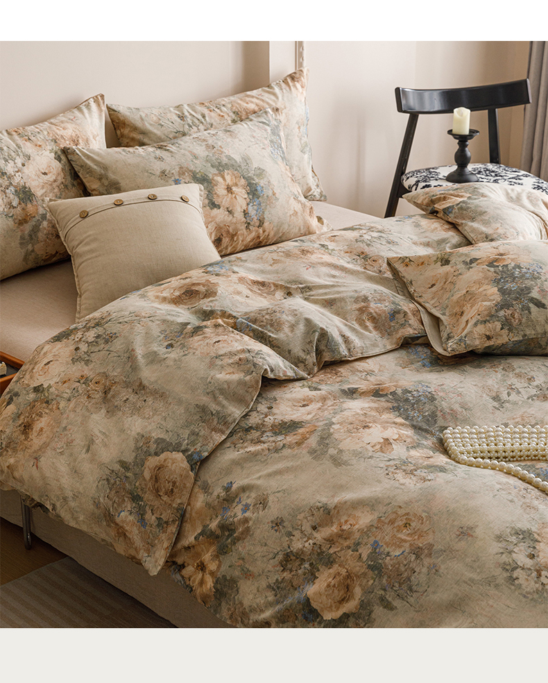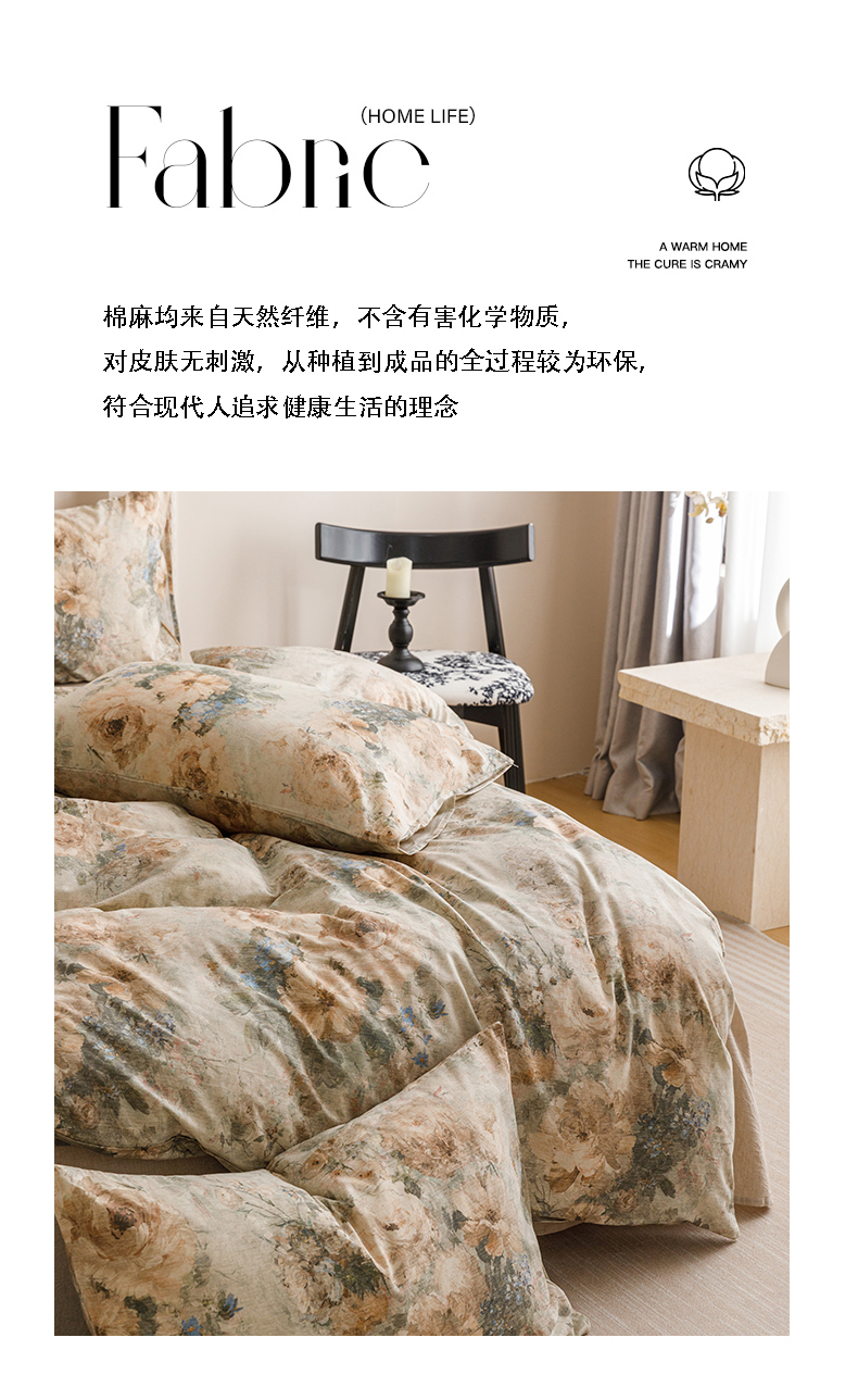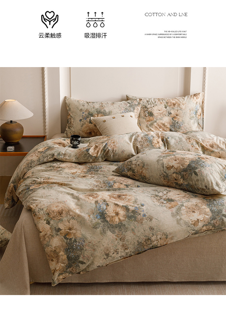 当前位置: 91家纺网 > 商品网购 > 床品套件 > 四件套 > 其它四件套 > 爱思佳 2025新款棉麻数码印花四件套 复古花语-绿