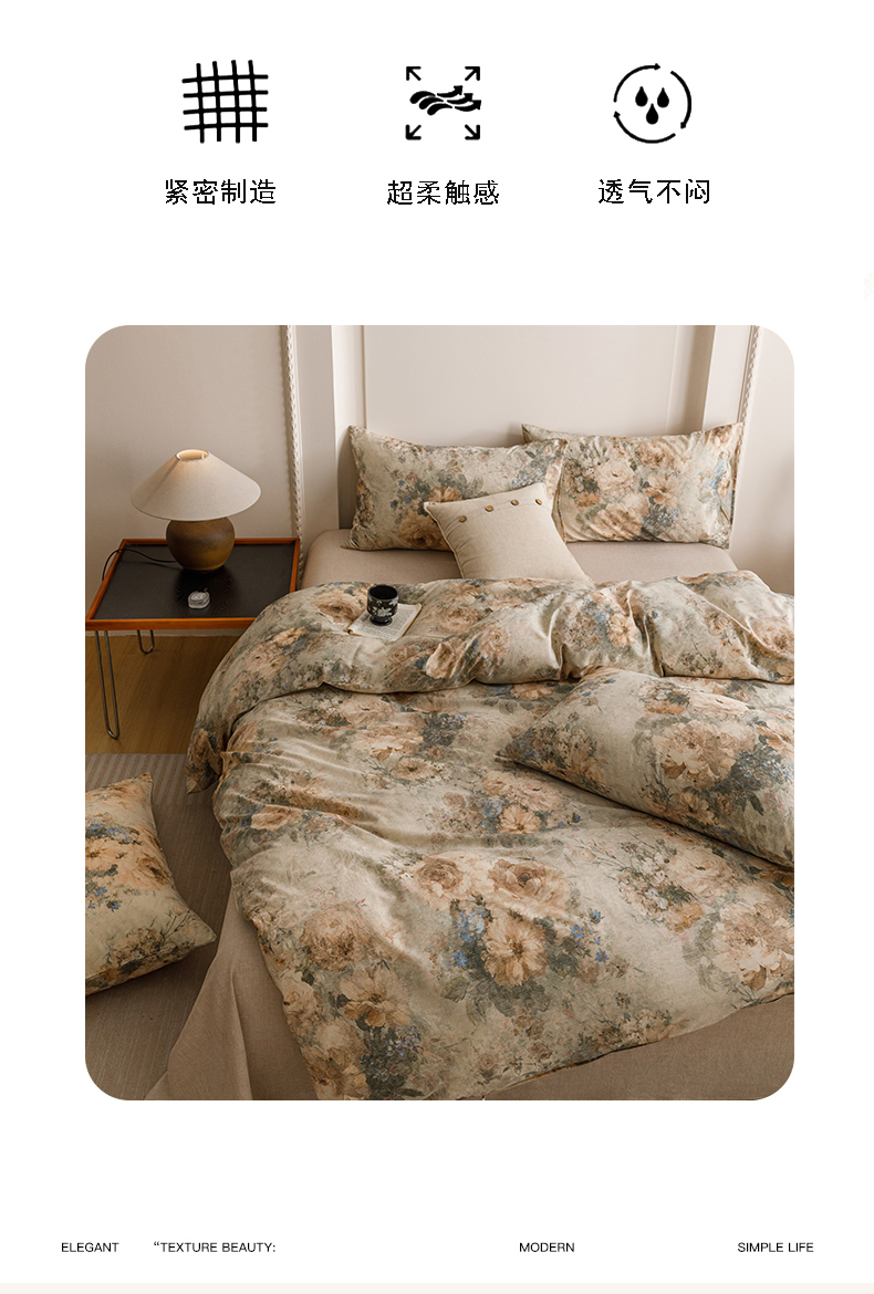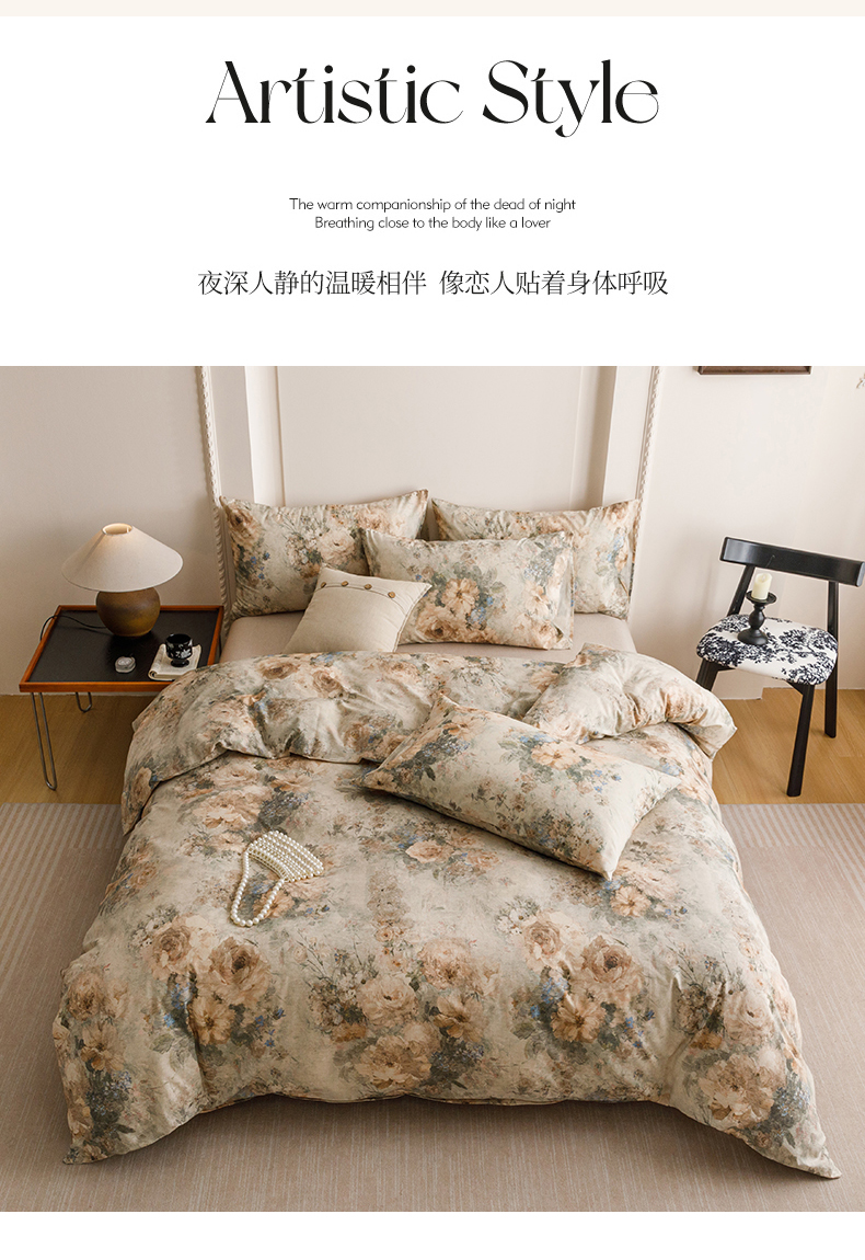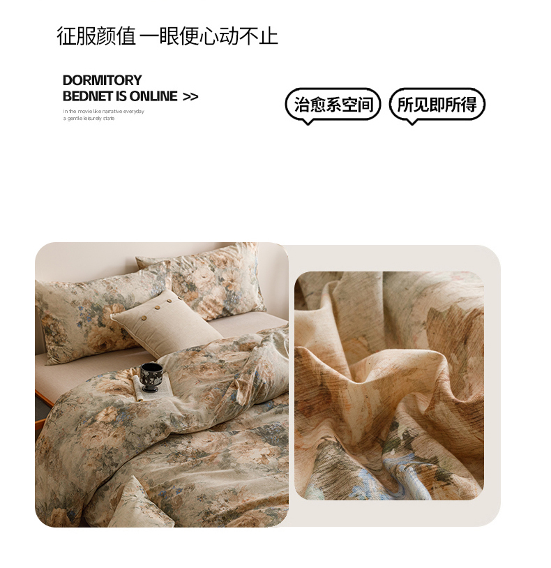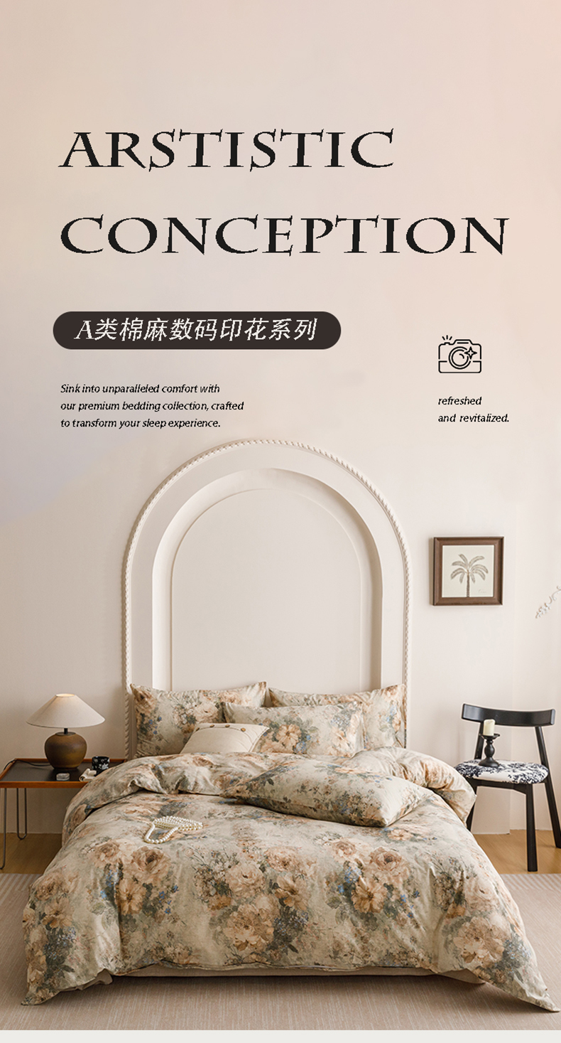 当前位置: 91家纺网 > 商品网购 > 床品套件 > 四件套 > 其它四件套 > 爱思佳 2025新款棉麻数码印花四件套 复古花语-绿