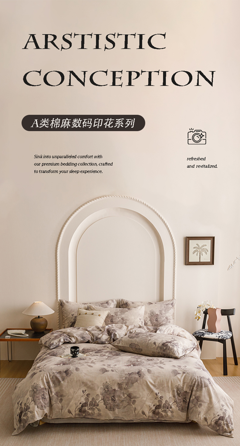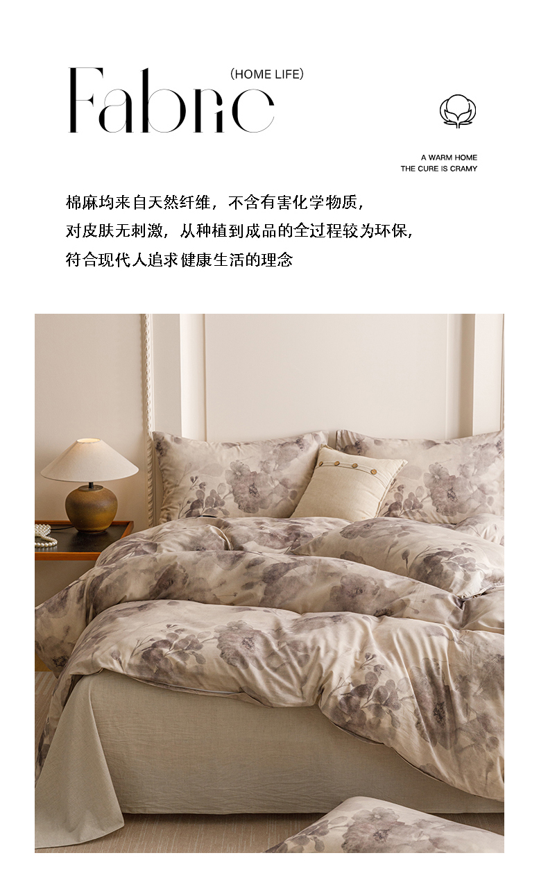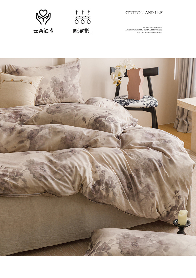 当前位置: 91家纺网 > 商品网购 > 床品套件 > 四件套 > 其它四件套 > 爱思佳 2025新款棉麻数码印花四件套 素潇-灰