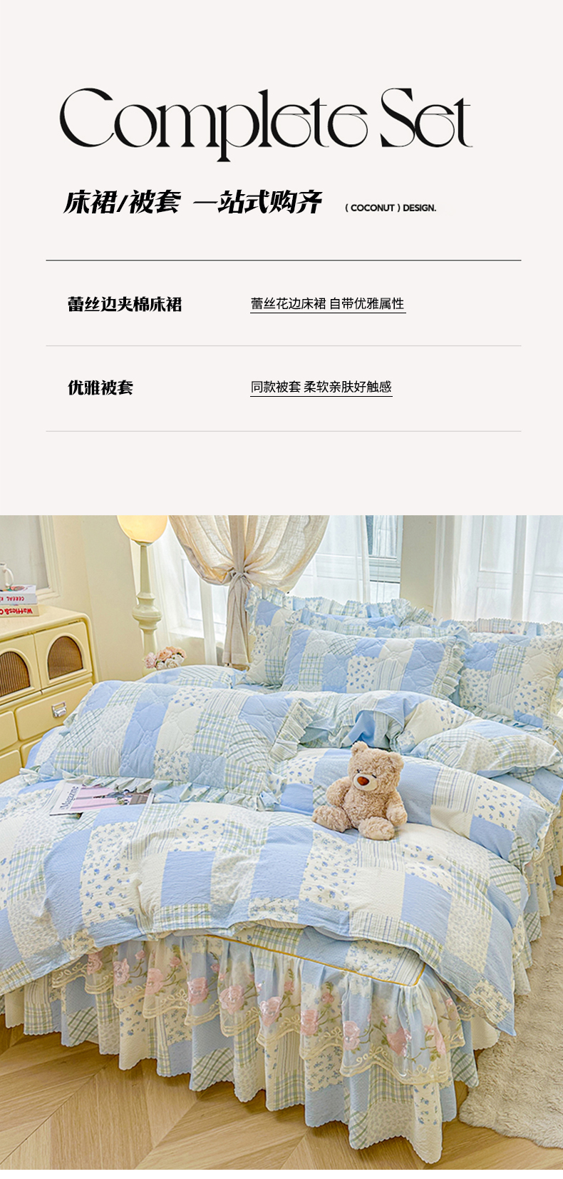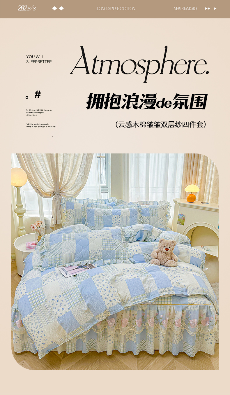 商品名称:(总)艾裙海 2025秋冬新款木棉皱皱双层纱夹棉床裙系列四件套