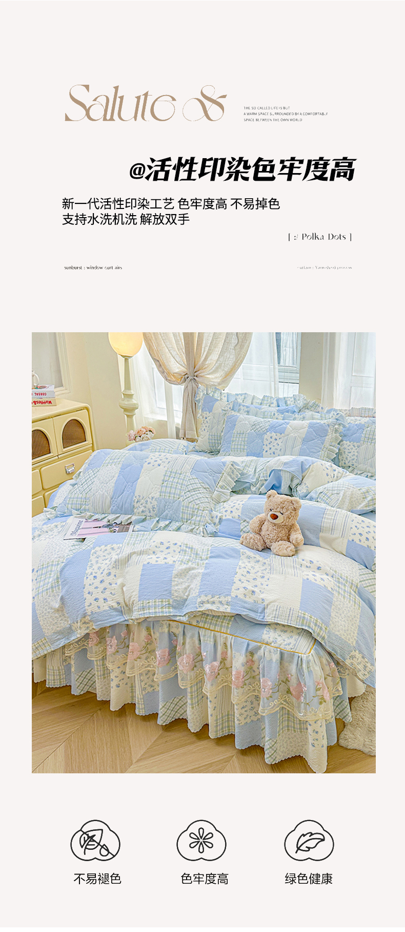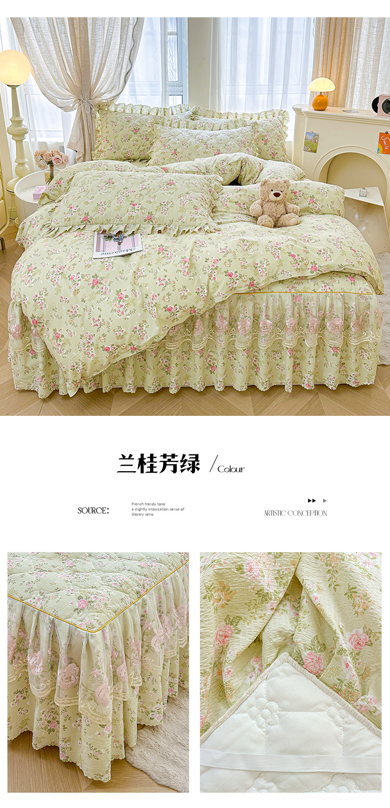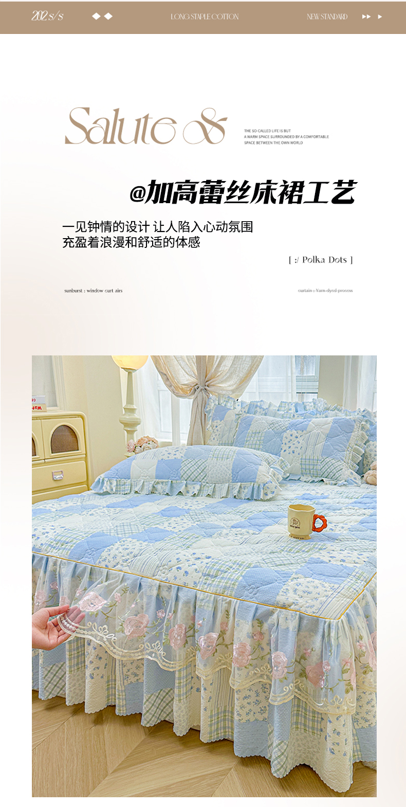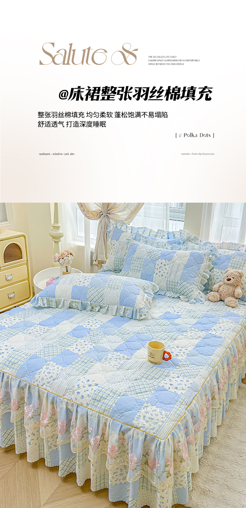 (总)艾裙海 2025秋冬新款木棉皱皱双层纱夹棉床裙系列单品床裙,百福蓝,繁华碟影,黑色波点,可爱小女孩,兰桂芳绿,盛夏光年,素碟吟,紫藤花语