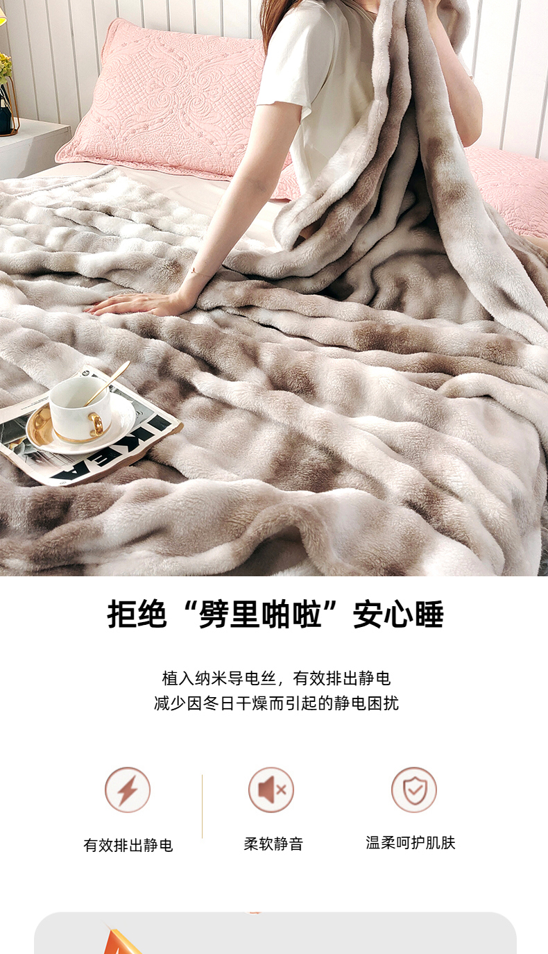 (总)安琪家纺 2025新款280克直播爆品兔毛绒高克重多功能抽条毛毯盖毯午睡毯跨境外贸,果绿,深灰,酒红,粉色,咖色,奶白,浅灰,紫色,藏青