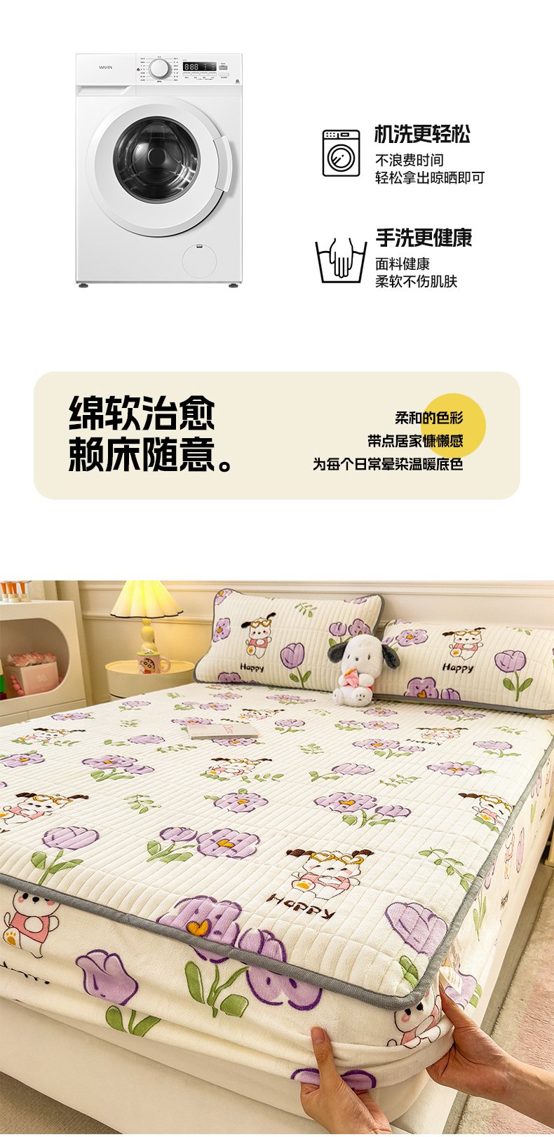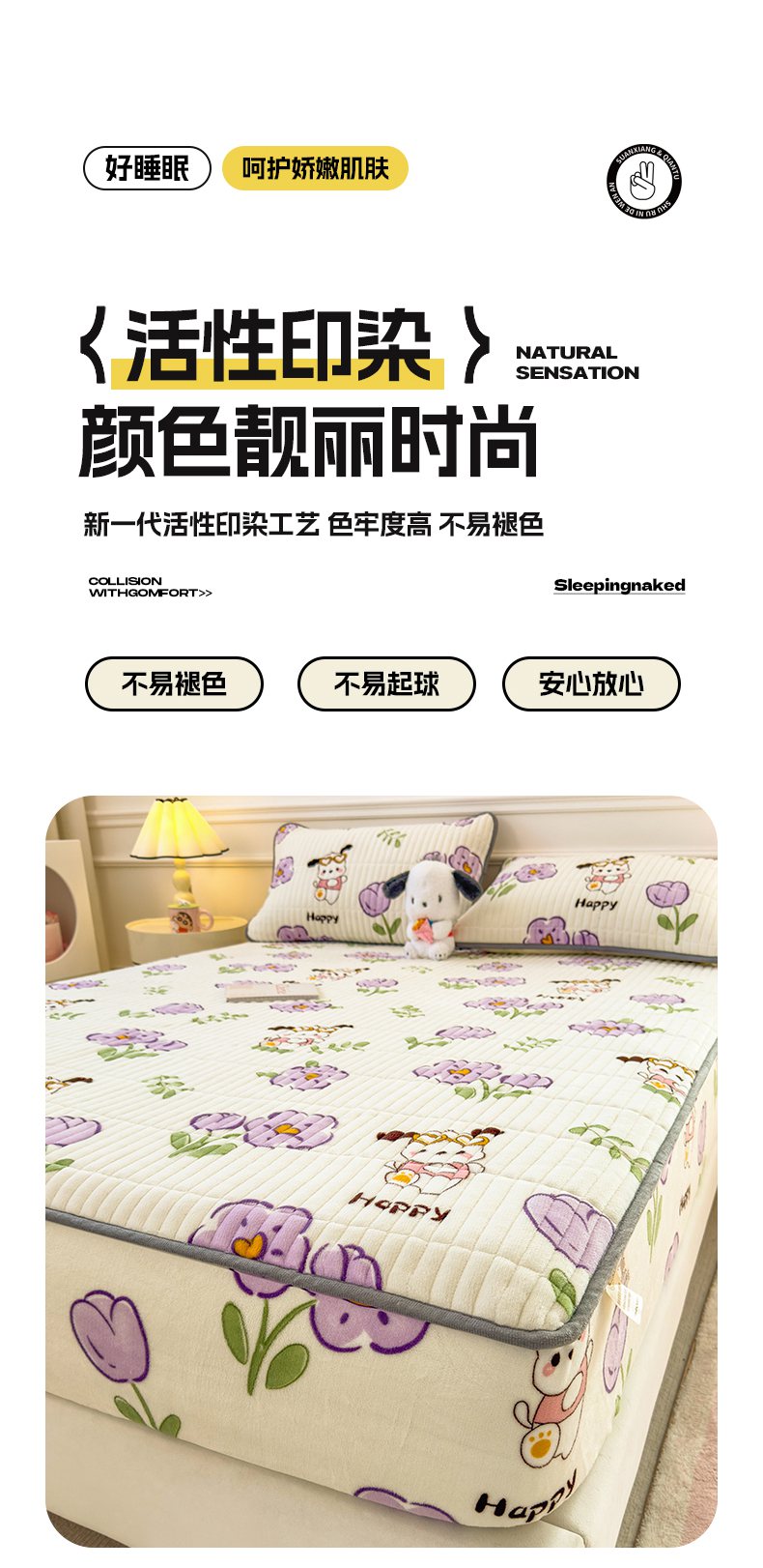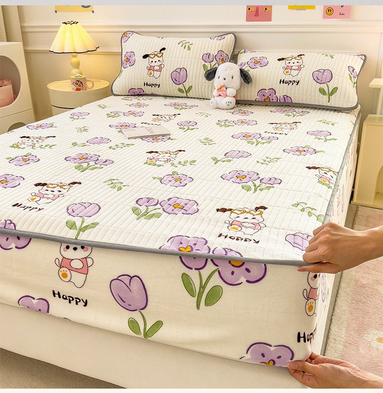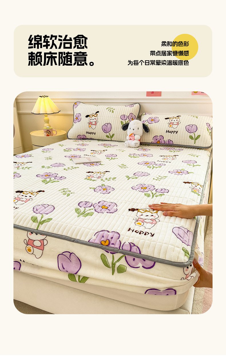 (总)摩妮卡 2025新款加厚保暖牛奶绒夹棉绣花床垫三件套,呆呆熊-蓝,呆呆熊-黄,呆呆熊-咖,Kitty猫-白,Kitty猫-粉,Kitty猫-紫