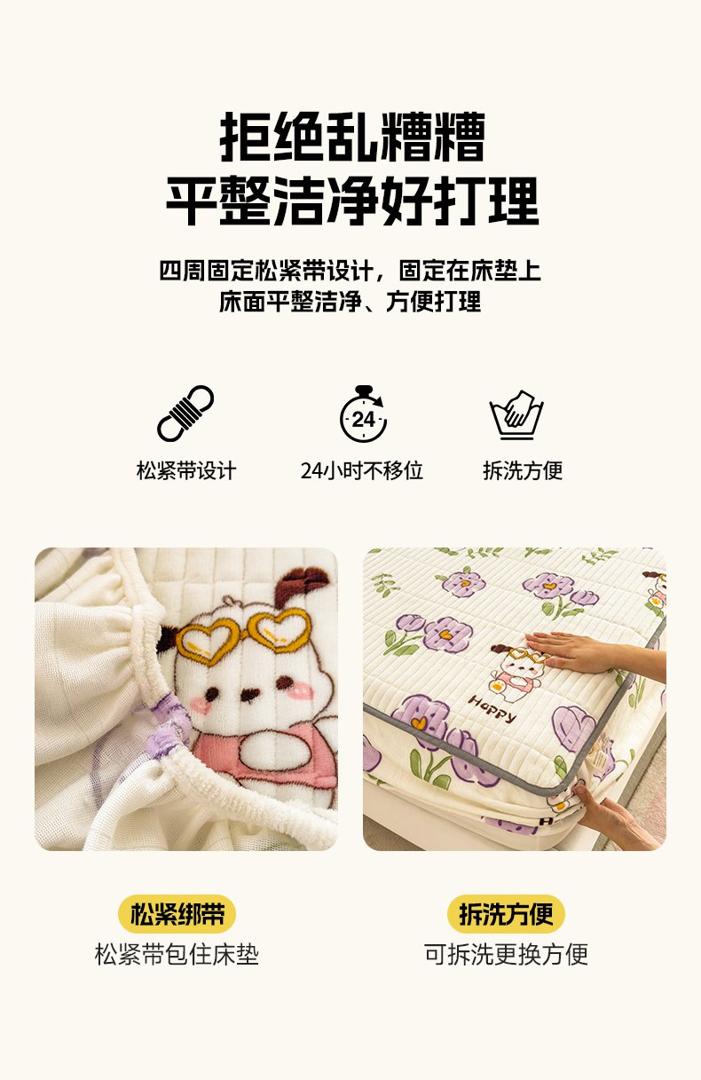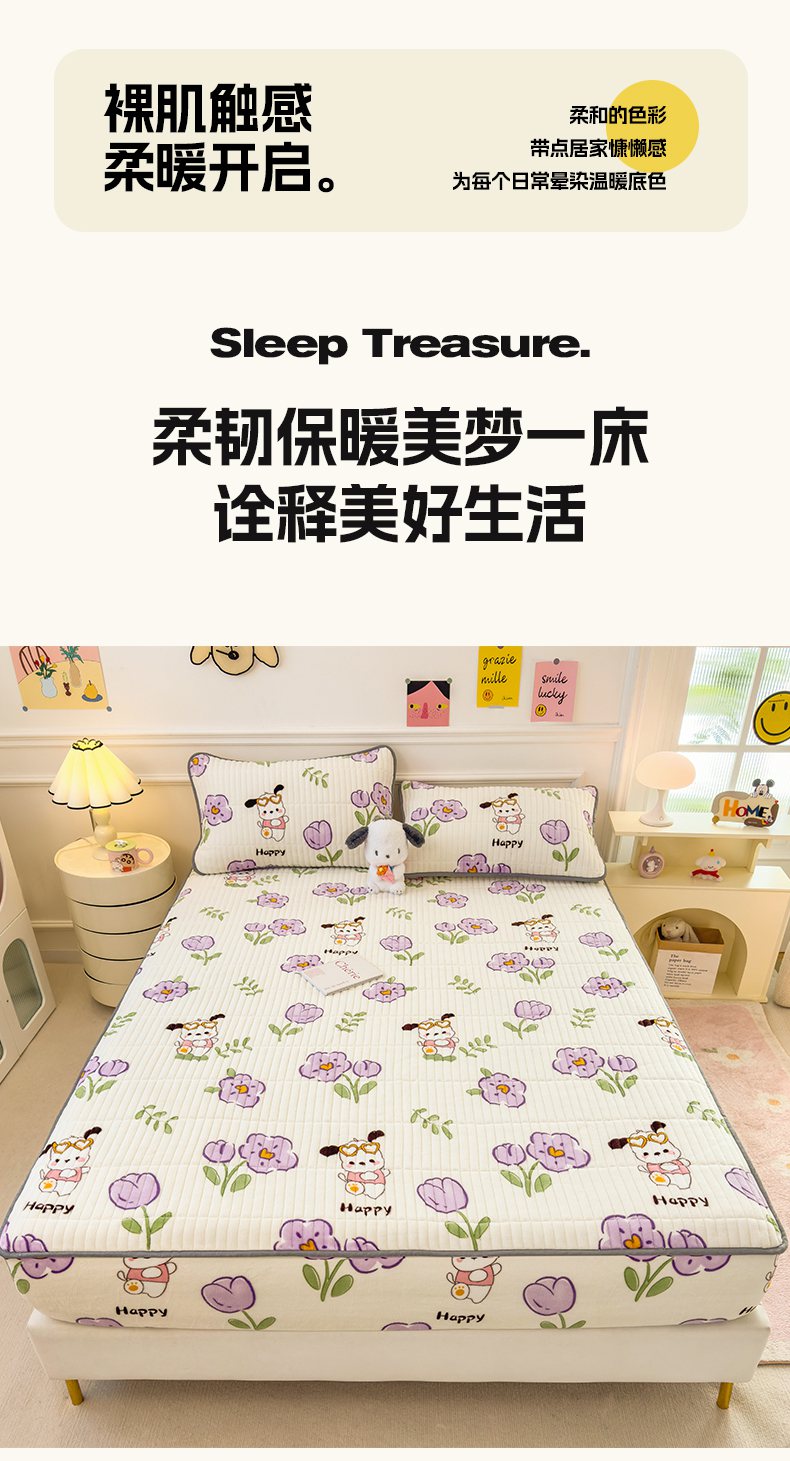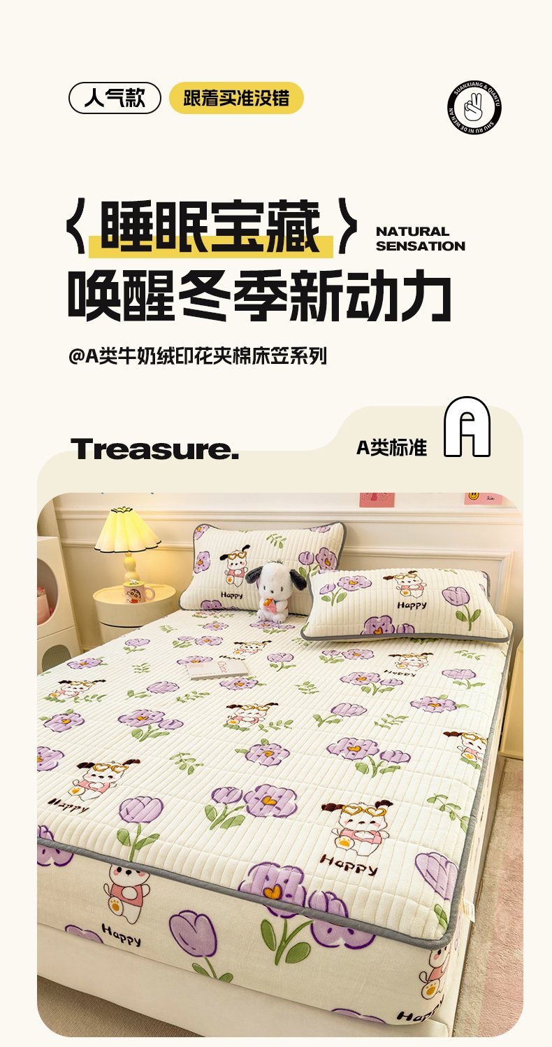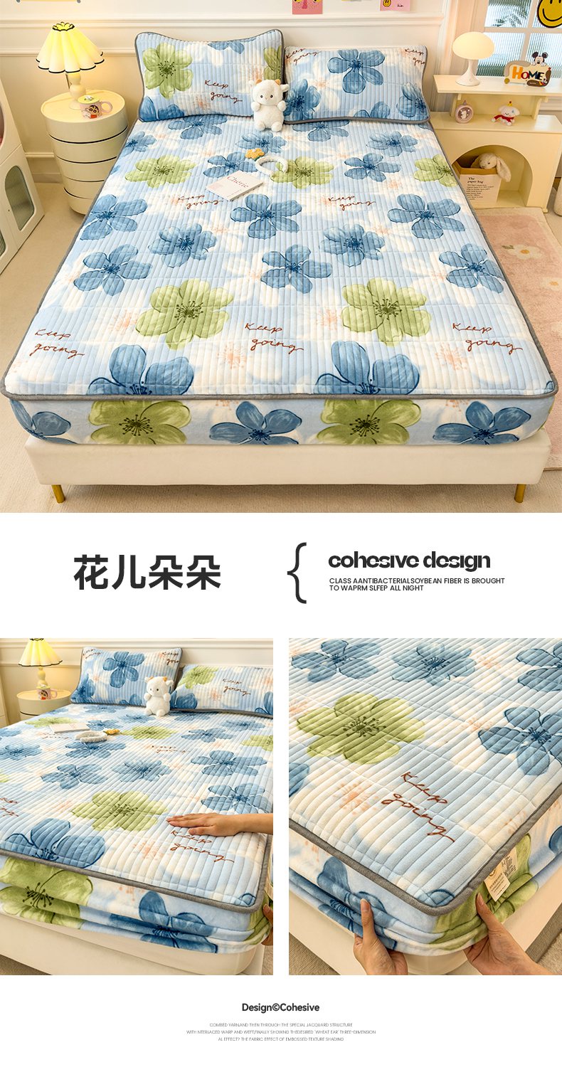 (总)摩妮卡 2025新款加厚保暖牛奶绒夹棉绣花床垫三件套,呆呆熊-蓝,呆呆熊-黄,呆呆熊-咖,Kitty猫-白,Kitty猫-粉,Kitty猫-紫