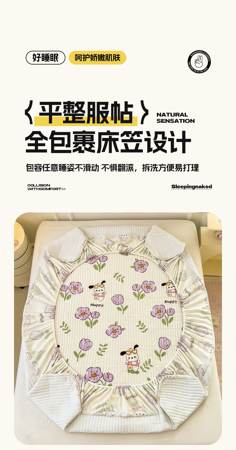 摩妮卡 2025新款小清新系列印花牛奶绒夹棉床笠三件套 秘密花园