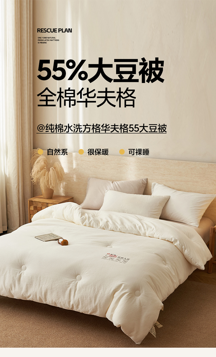 • 91家纺网 家纺一手货源 找家纺 子由家居 2025新款纯棉水洗棉经典小格提花55大豆被被子被芯 经典小格55大豆被