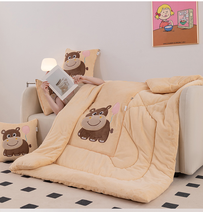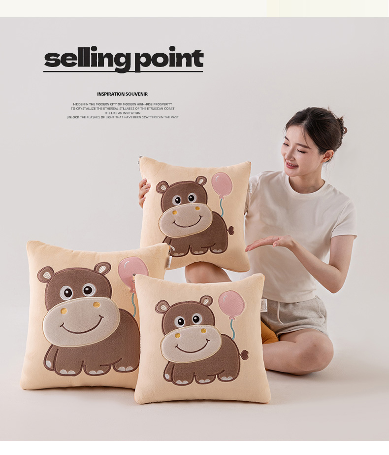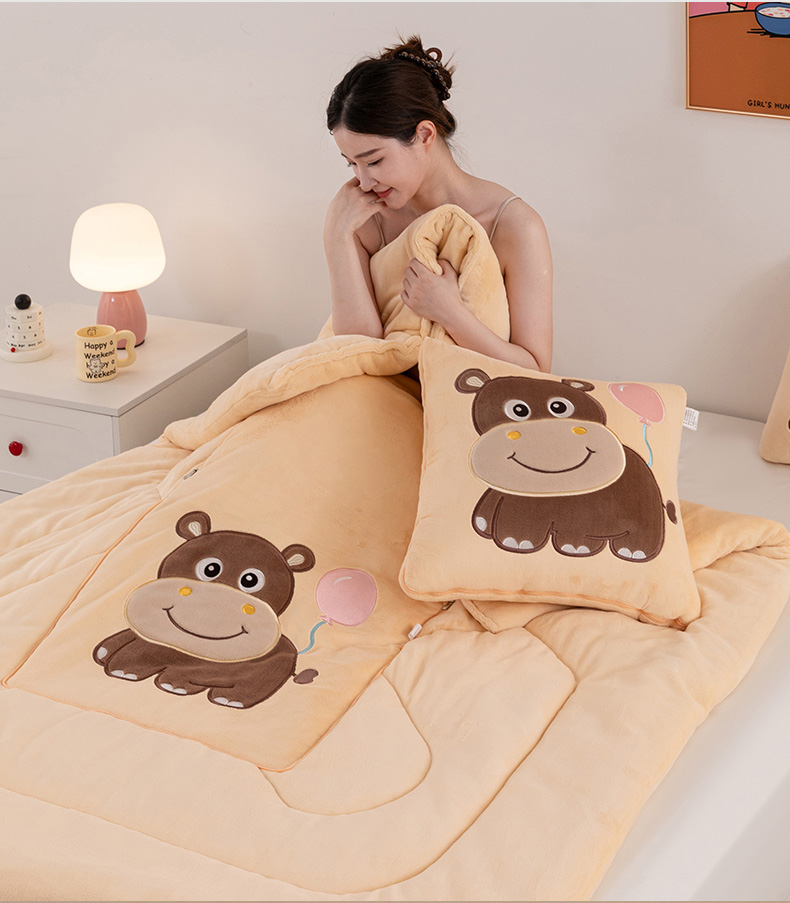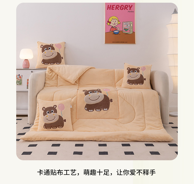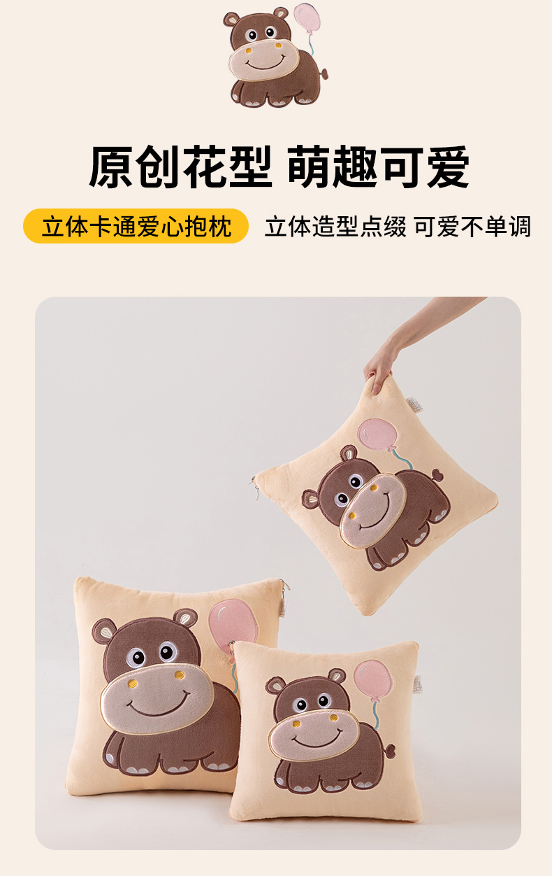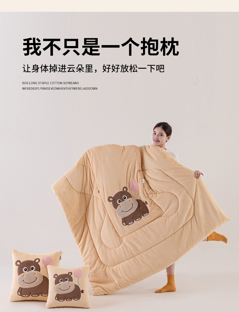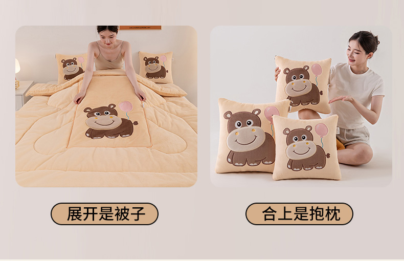商品名称:哩哩熊 2025新款抱枕被子两用加厚牛奶绒二合一汽车载枕头办公室午睡毯子冬天-气球河马 气球河马-麦黄