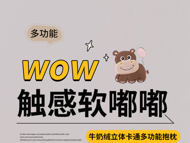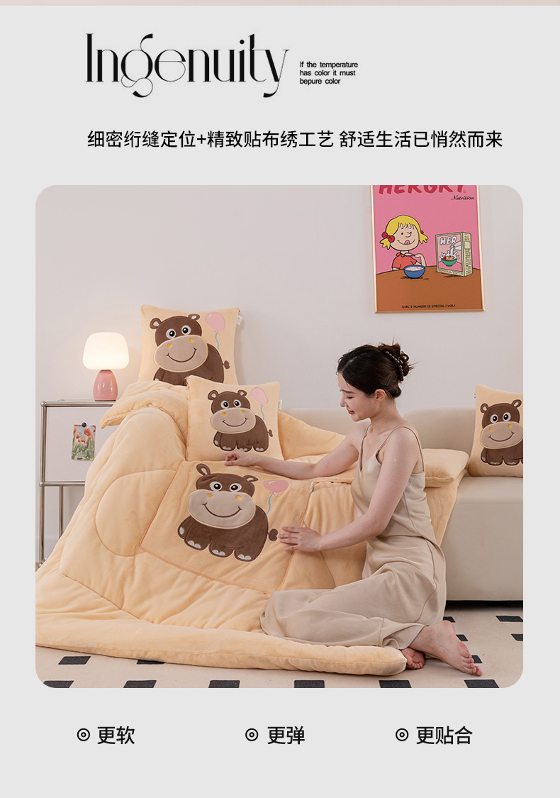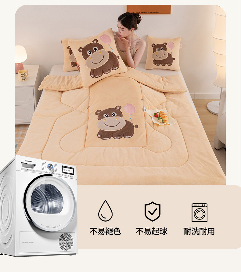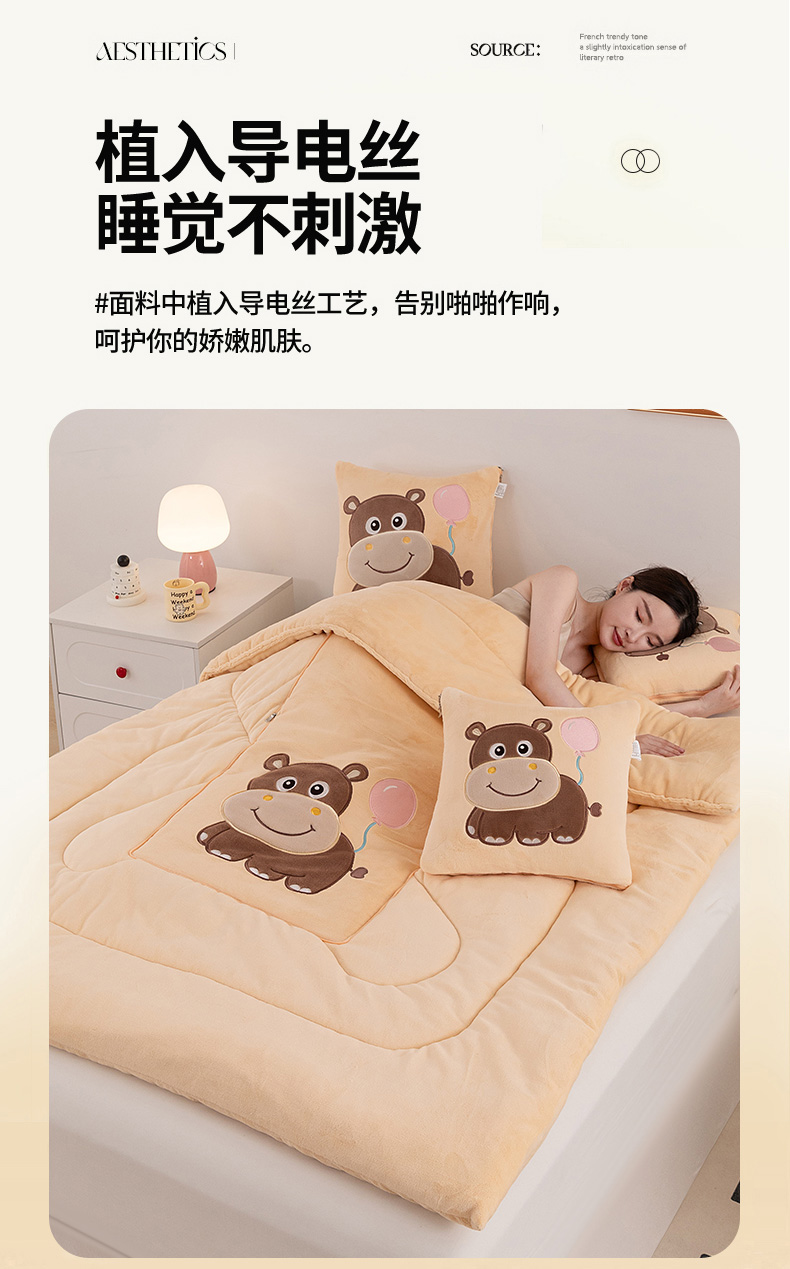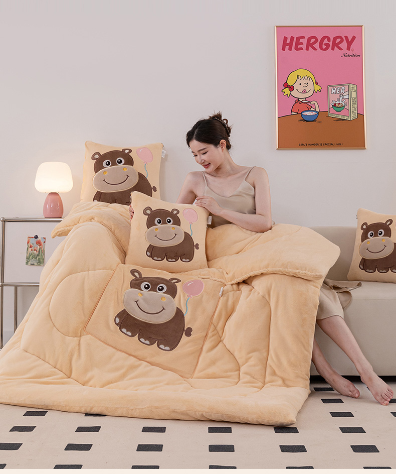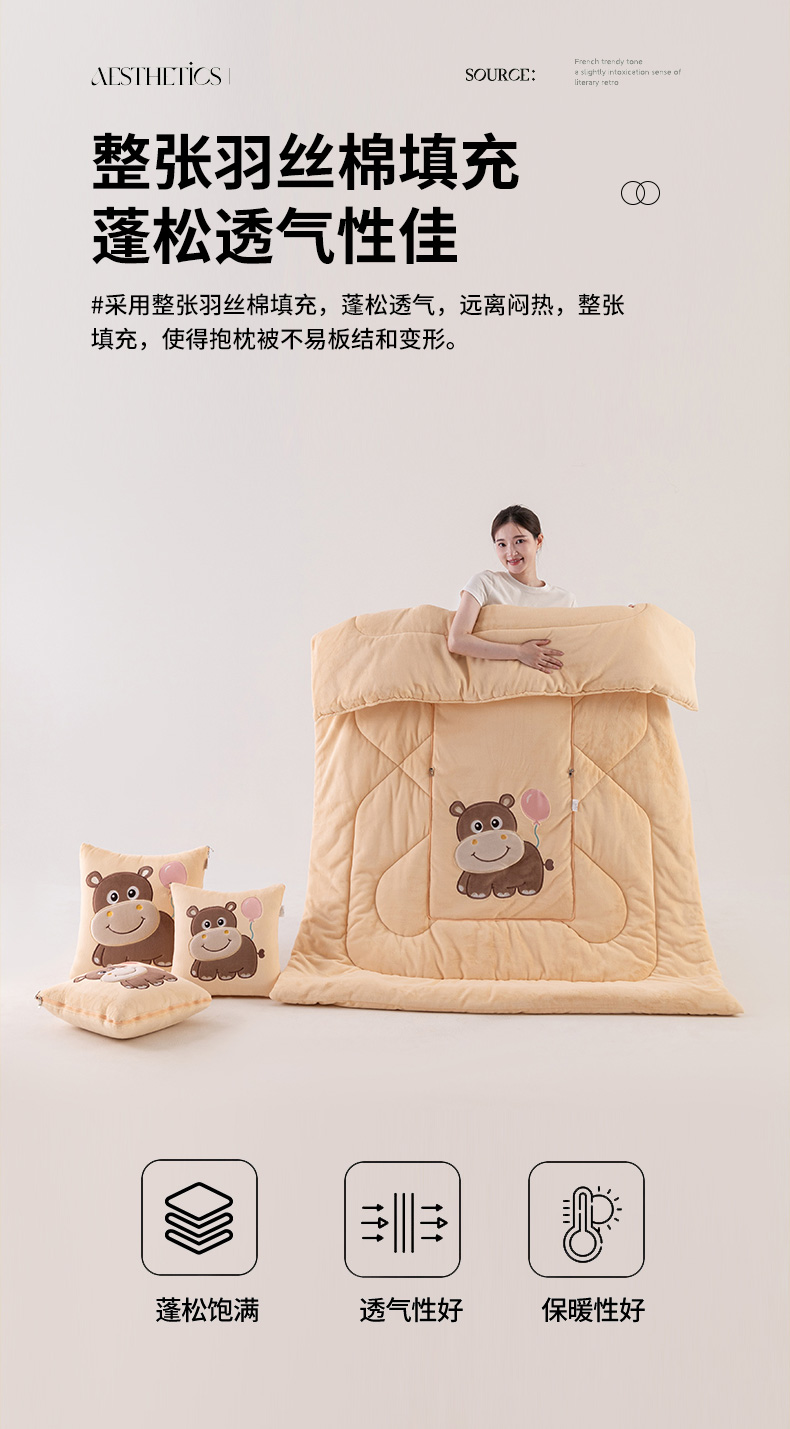 商品名称:哩哩熊 2025新款抱枕被子两用加厚牛奶绒二合一汽车载枕头办公室午睡毯子冬天-气球河马 气球河马-麦黄