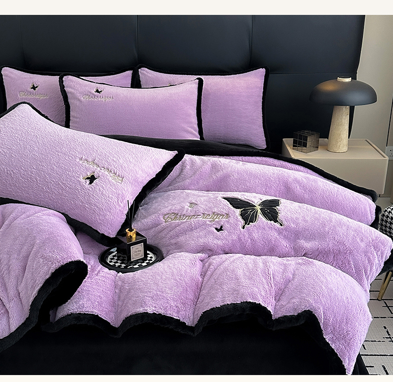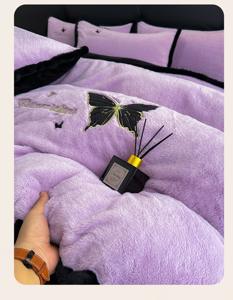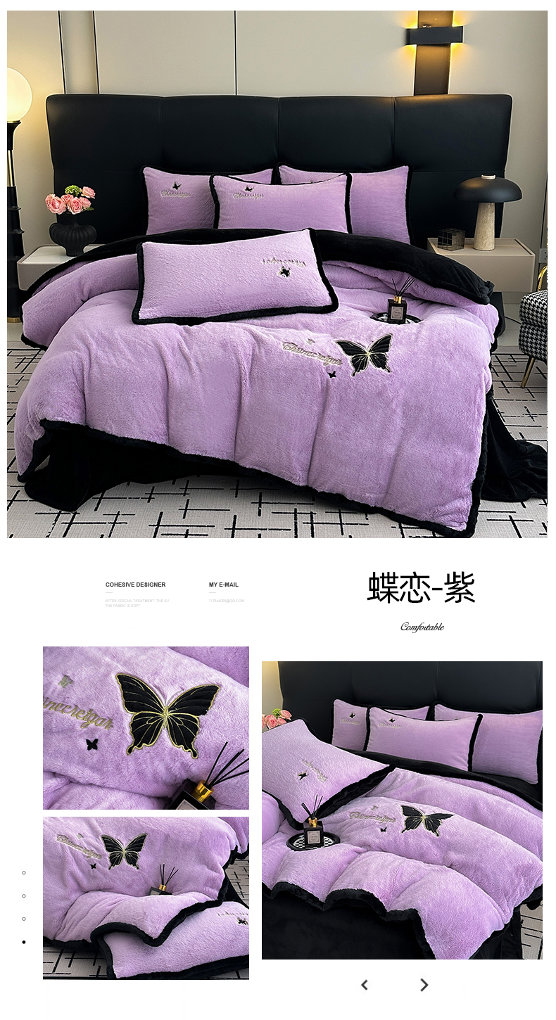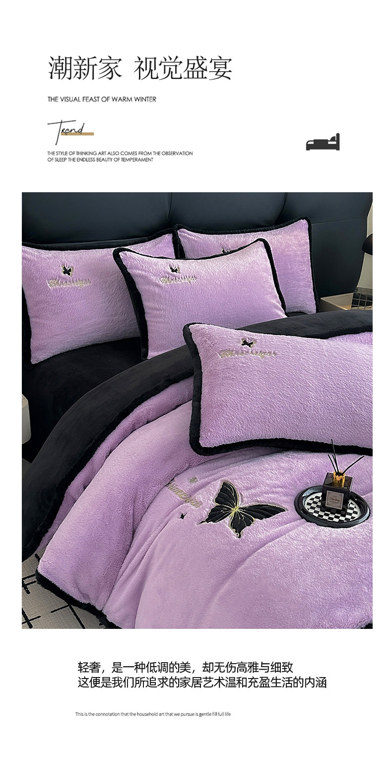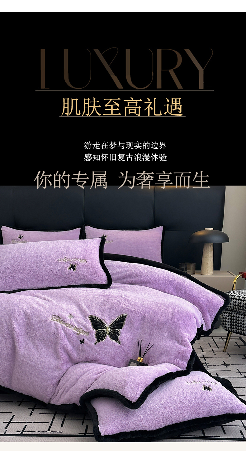 商品名称:2025兔毛包边贴布绣花牛奶绒四件套蝶恋 蝶恋-紫