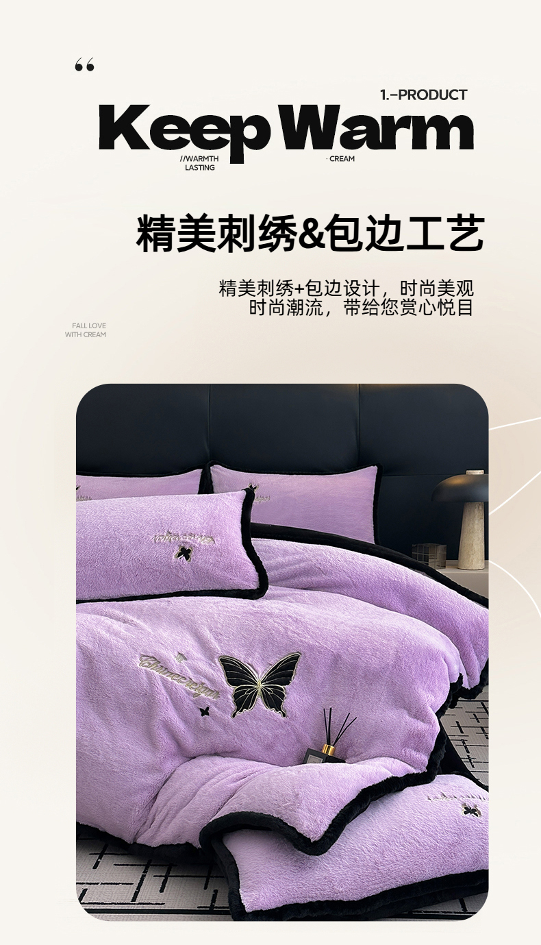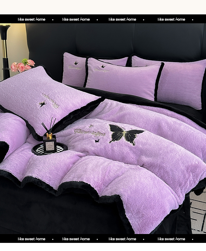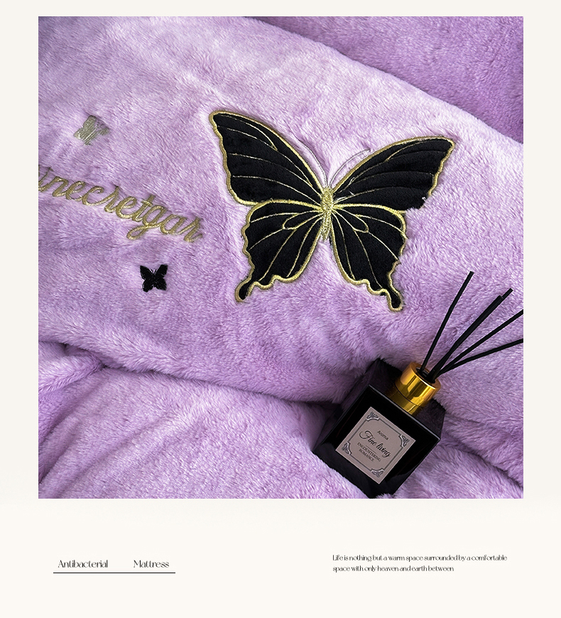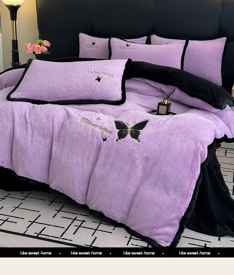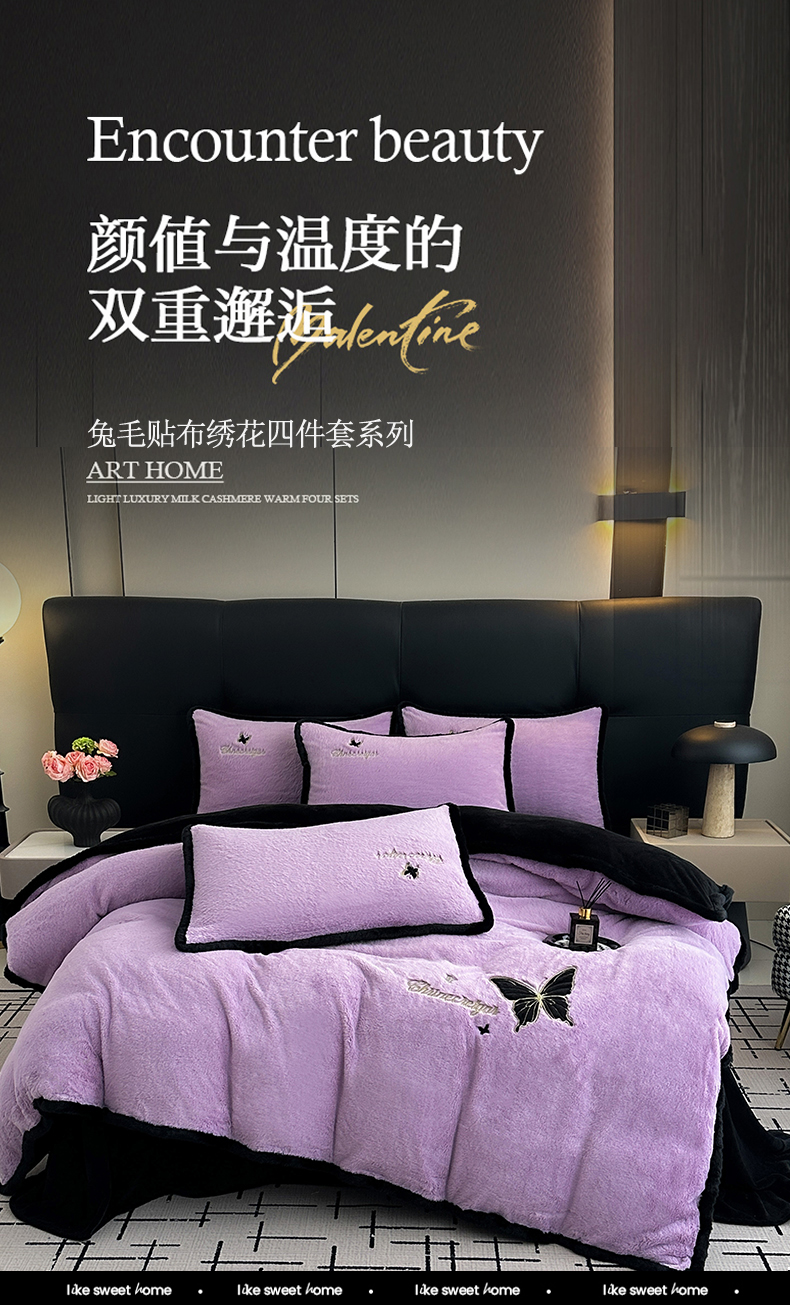 商品名称:2025兔毛包边贴布绣花牛奶绒四件套蝶恋 蝶恋-紫