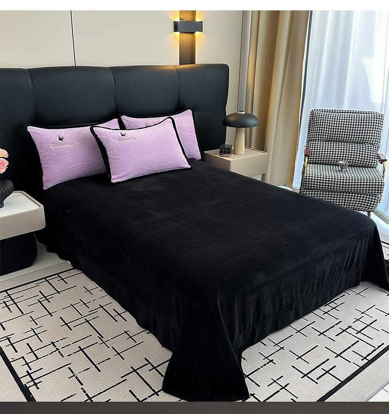 2025兔毛包边贴布绣花牛奶绒四件套蝶恋 蝶恋-紫