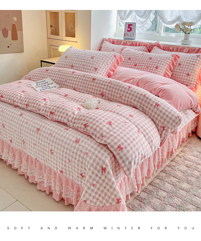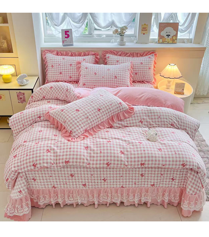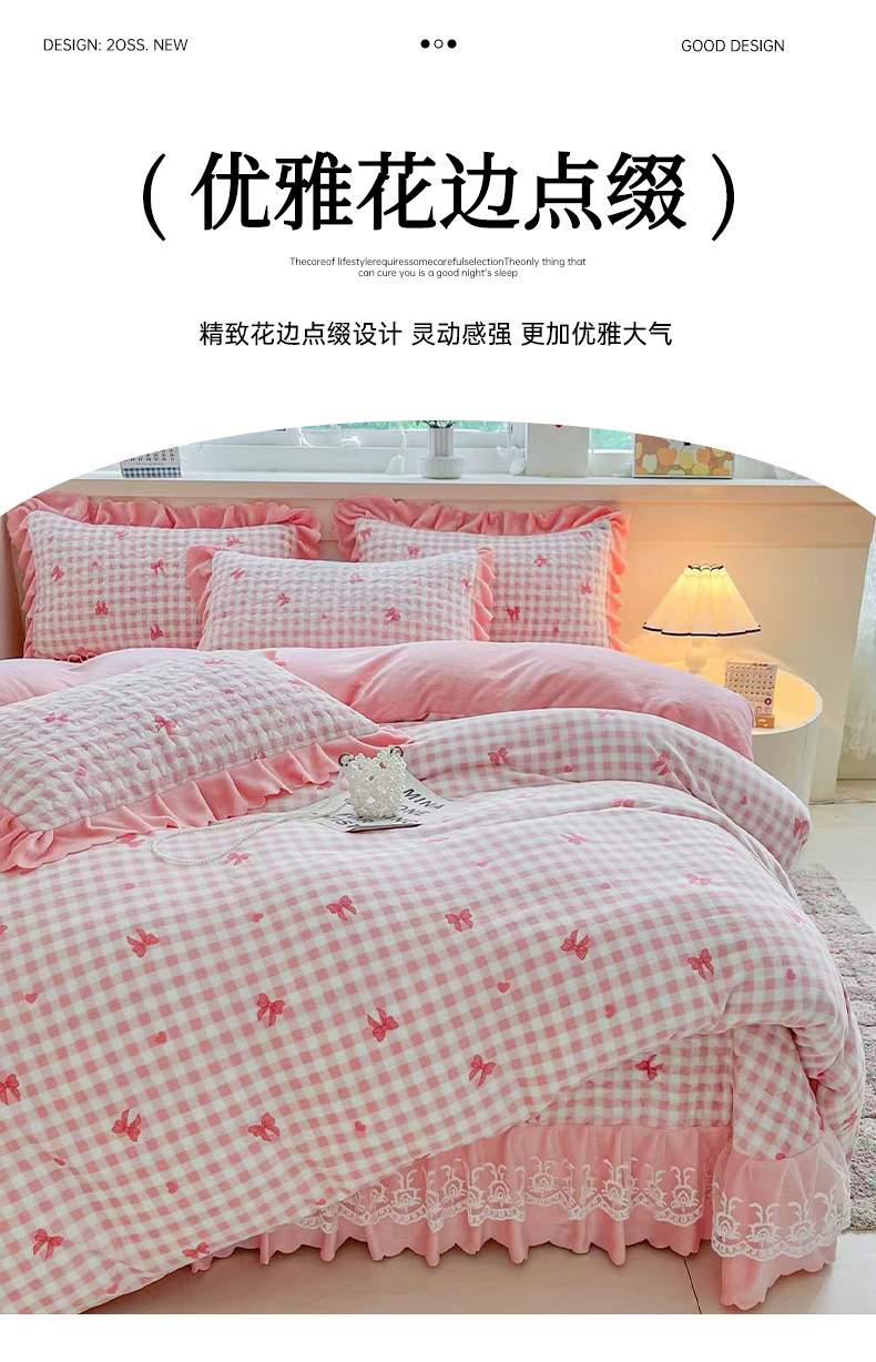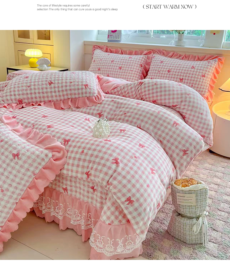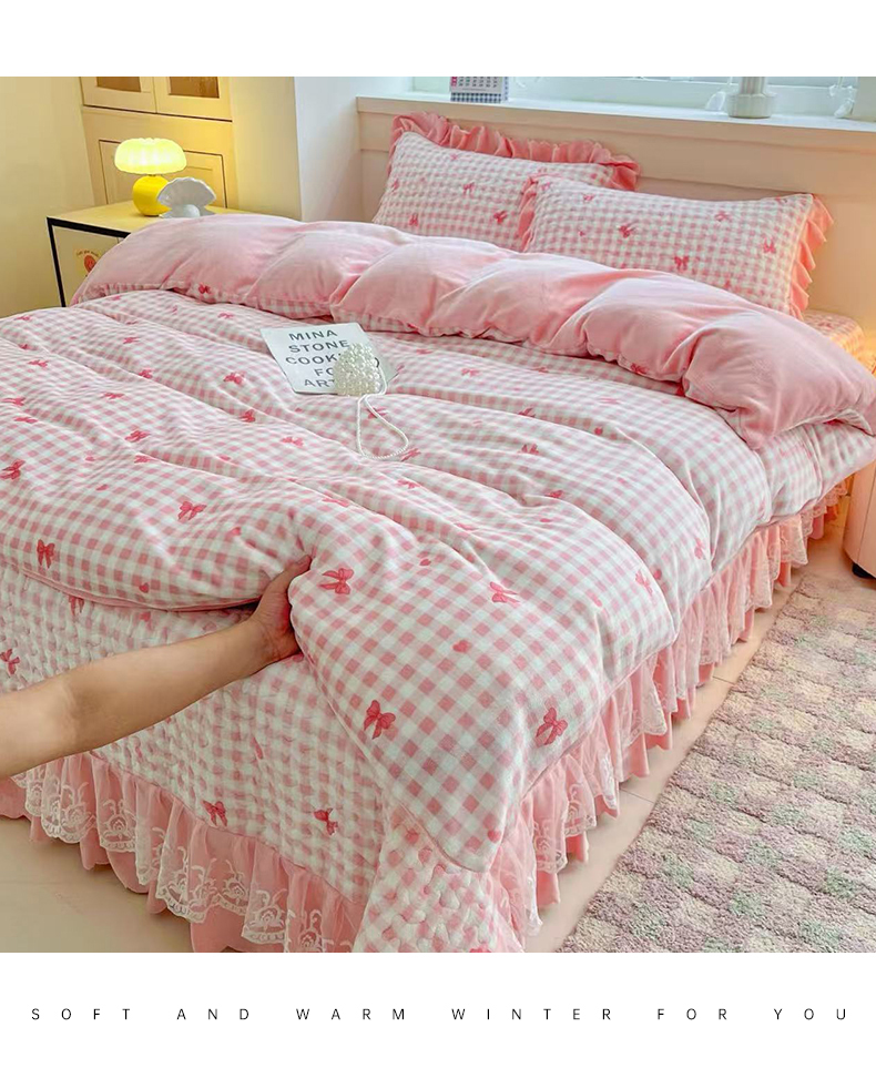 当前位置: 91家纺网 > 商品网购 > 床品套件 > 四件套 > 牛奶绒四件套 > 铠畅 2025新款加厚牛奶绒床盖四件套 蜜糖蝴蝶结