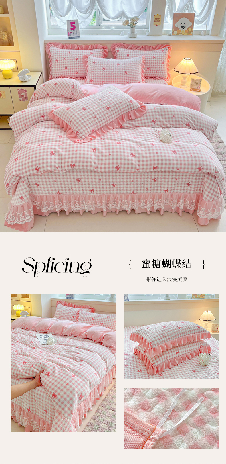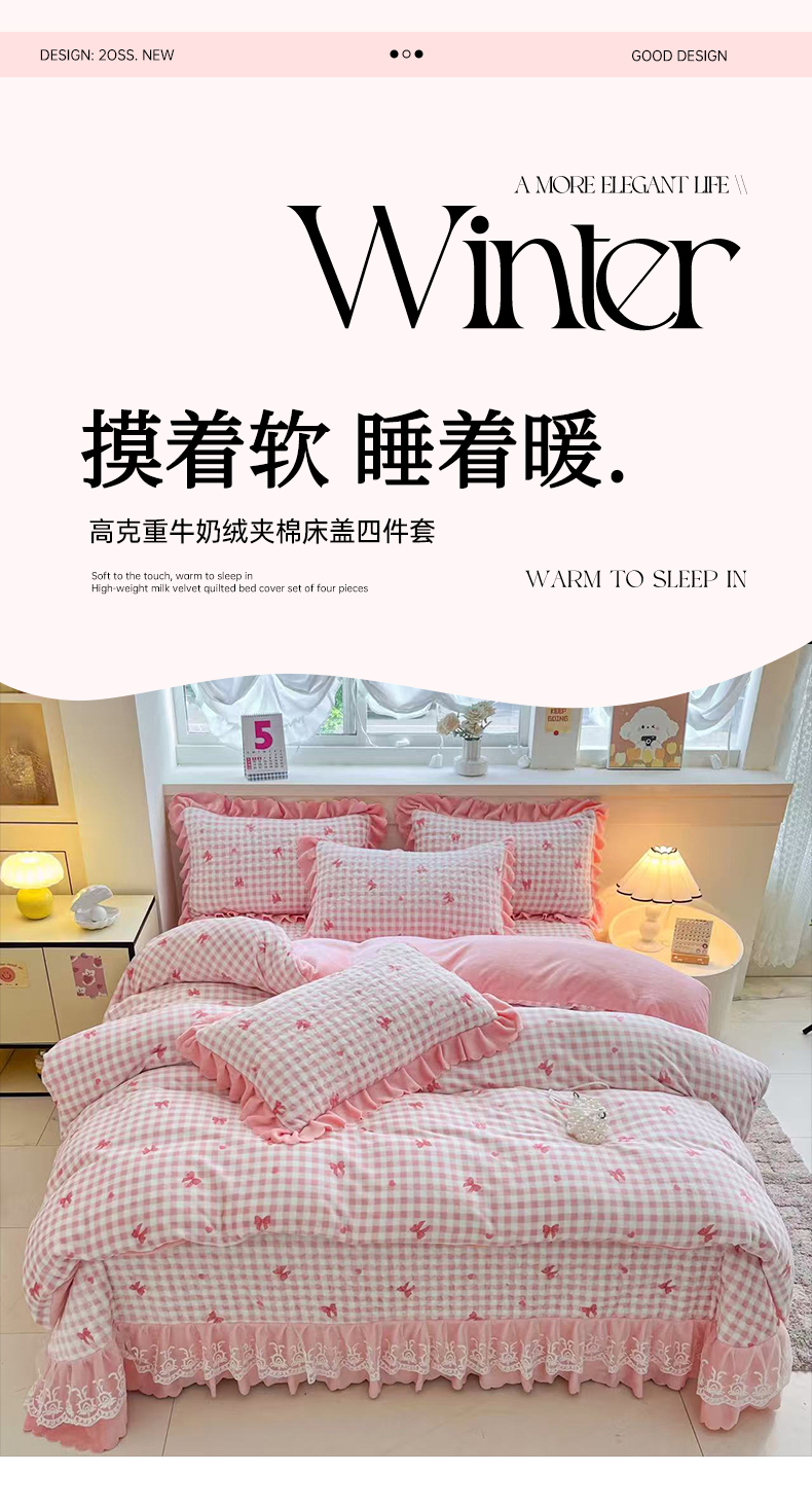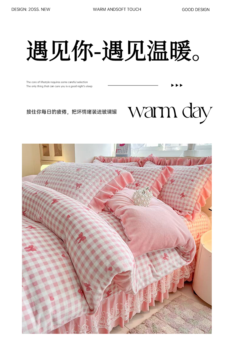 当前位置: 91家纺网 > 商品网购 > 床品套件 > 四件套 > 牛奶绒四件套 > 铠畅 2025新款加厚牛奶绒床盖四件套 蜜糖蝴蝶结