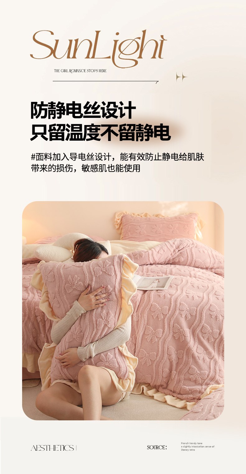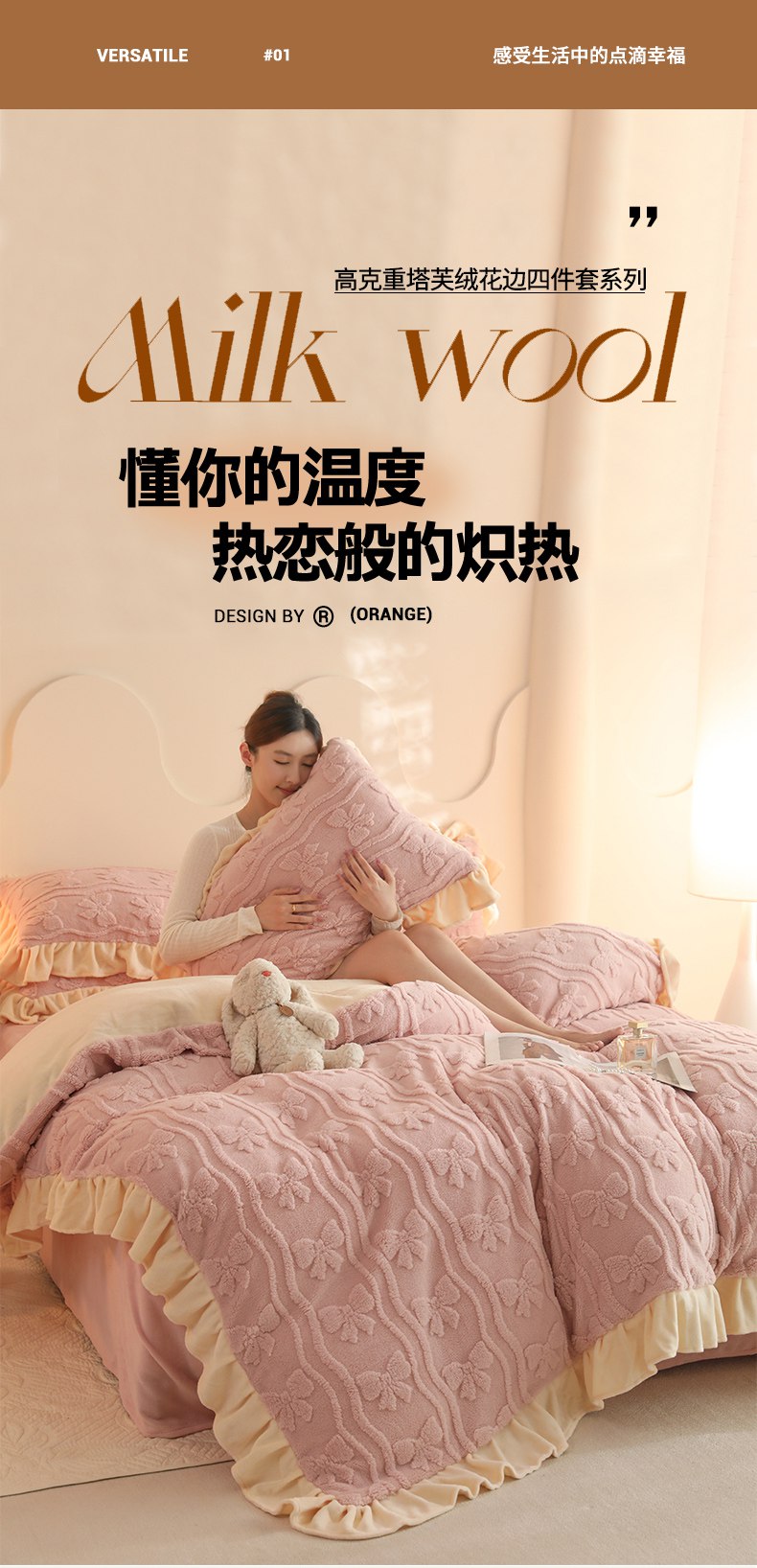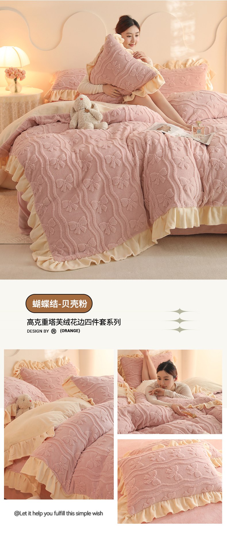 (总)首尔家纺 2025新款牛奶绒提花塔芙绒四件套-蝴蝶结和花期系列