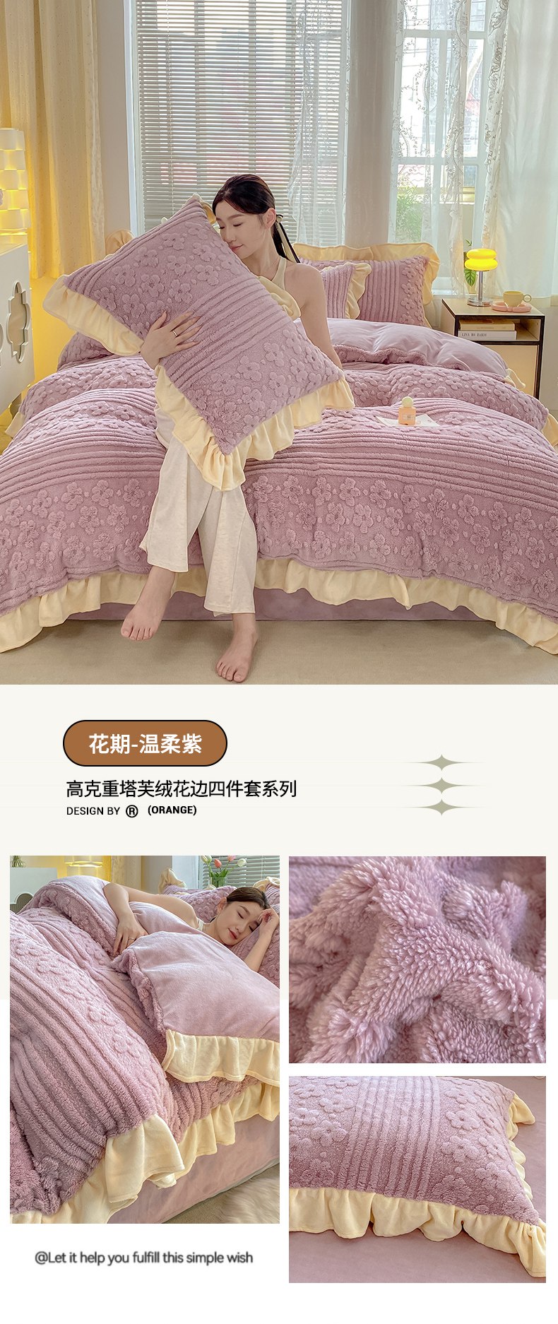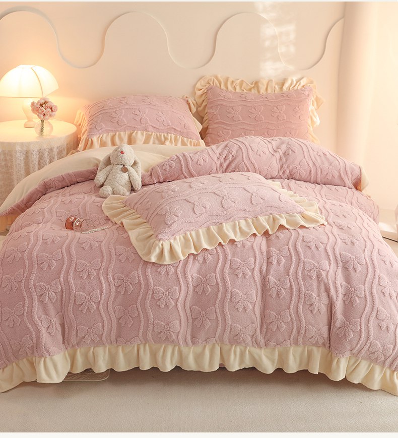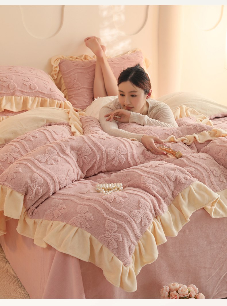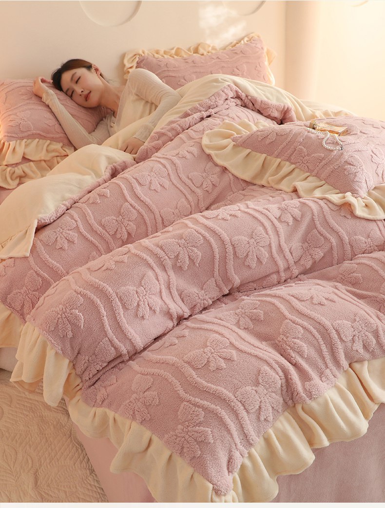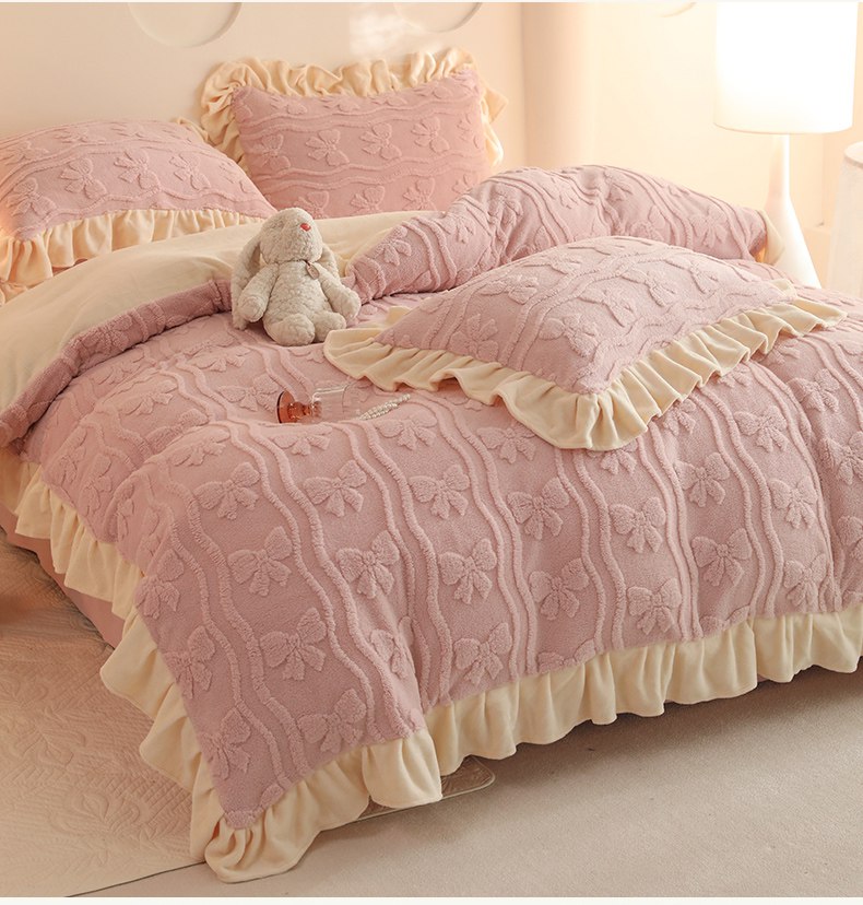 (总)首尔家纺 2025新款牛奶绒提花塔芙绒四件套-蝴蝶结和花期系列