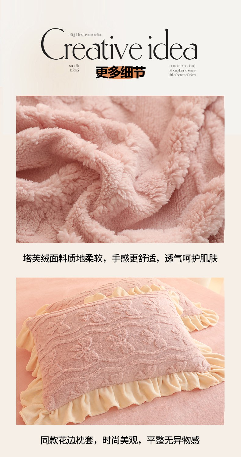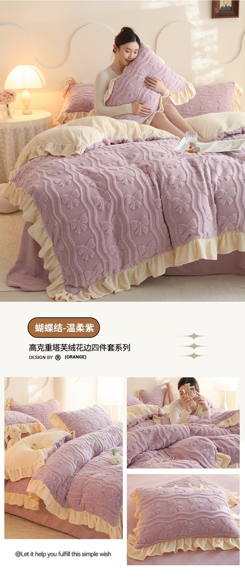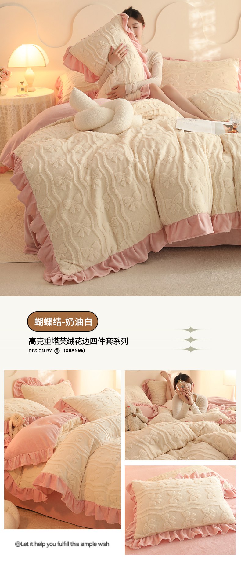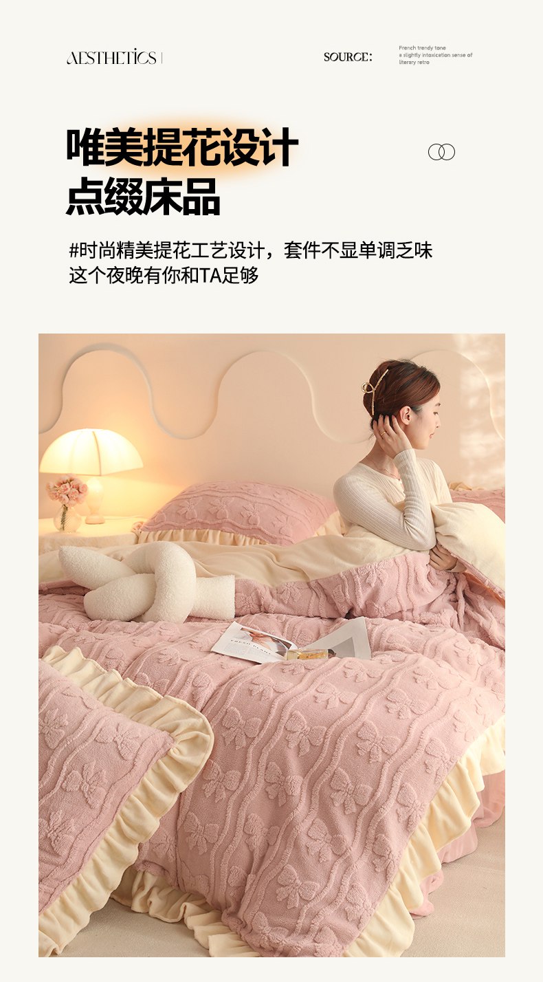商品名称:(总)首尔家纺 2025新款牛奶绒提花塔芙绒四件套-蝴蝶结和花期系列