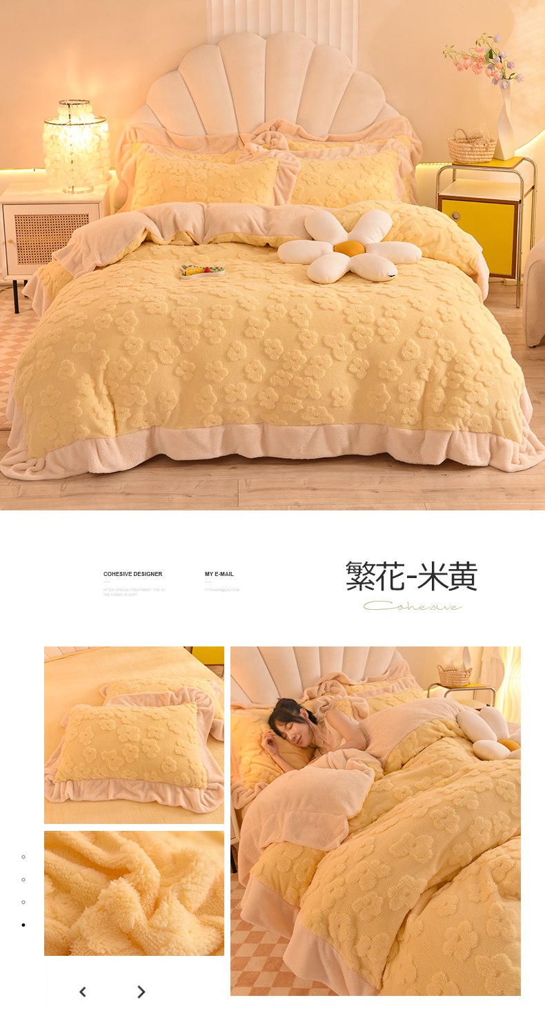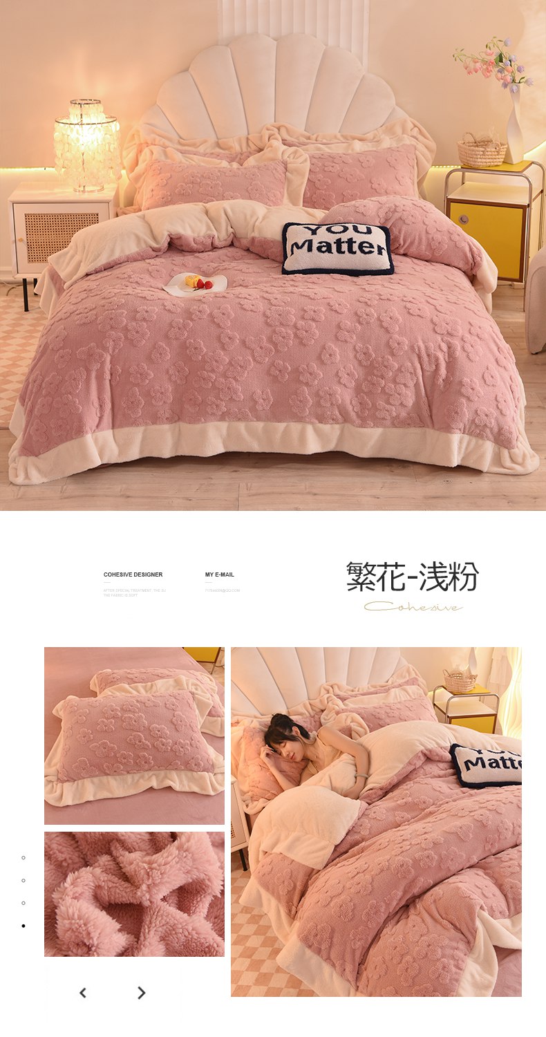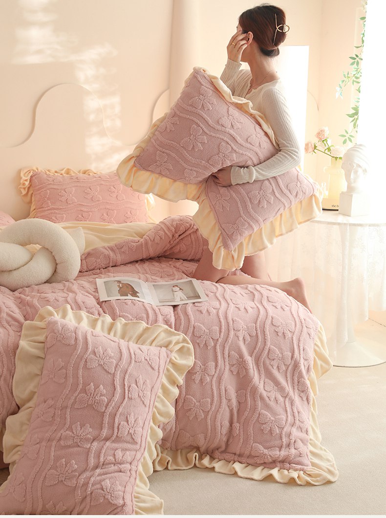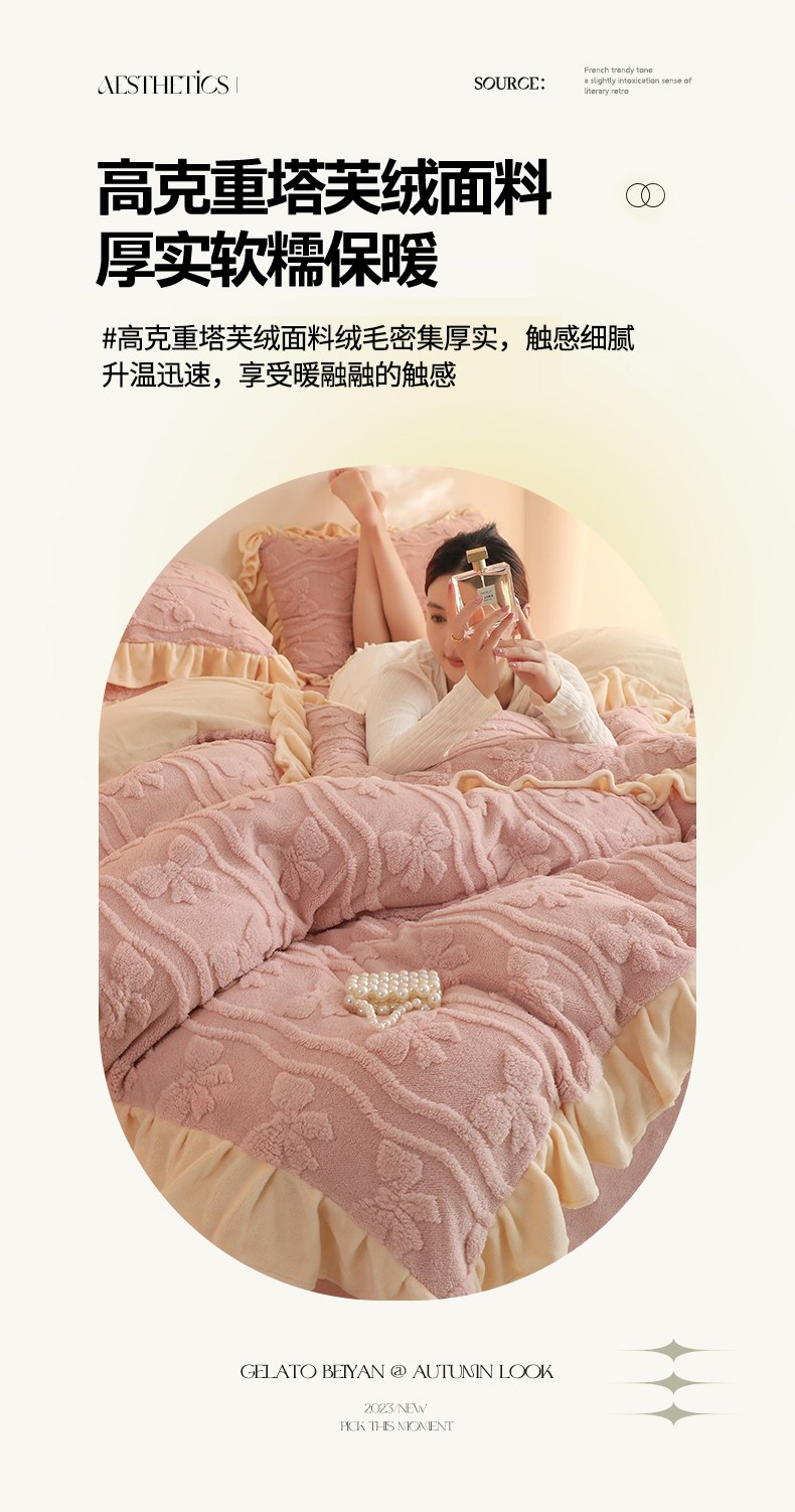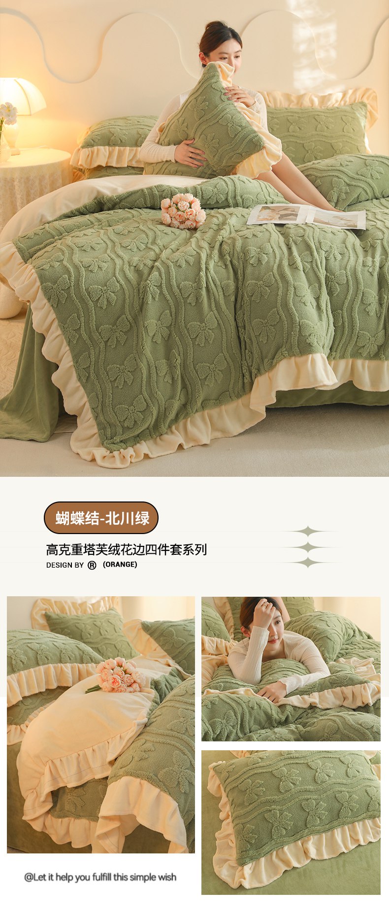 商品名称:(总)首尔家纺 2025新款牛奶绒提花塔芙绒四件套-蝴蝶结和花期系列