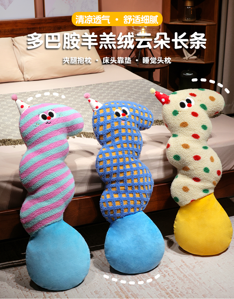 商品名称:仟亿莱 2025新款多巴胺羊羔绒大眼云朵长条抱枕 波点大眼云朵