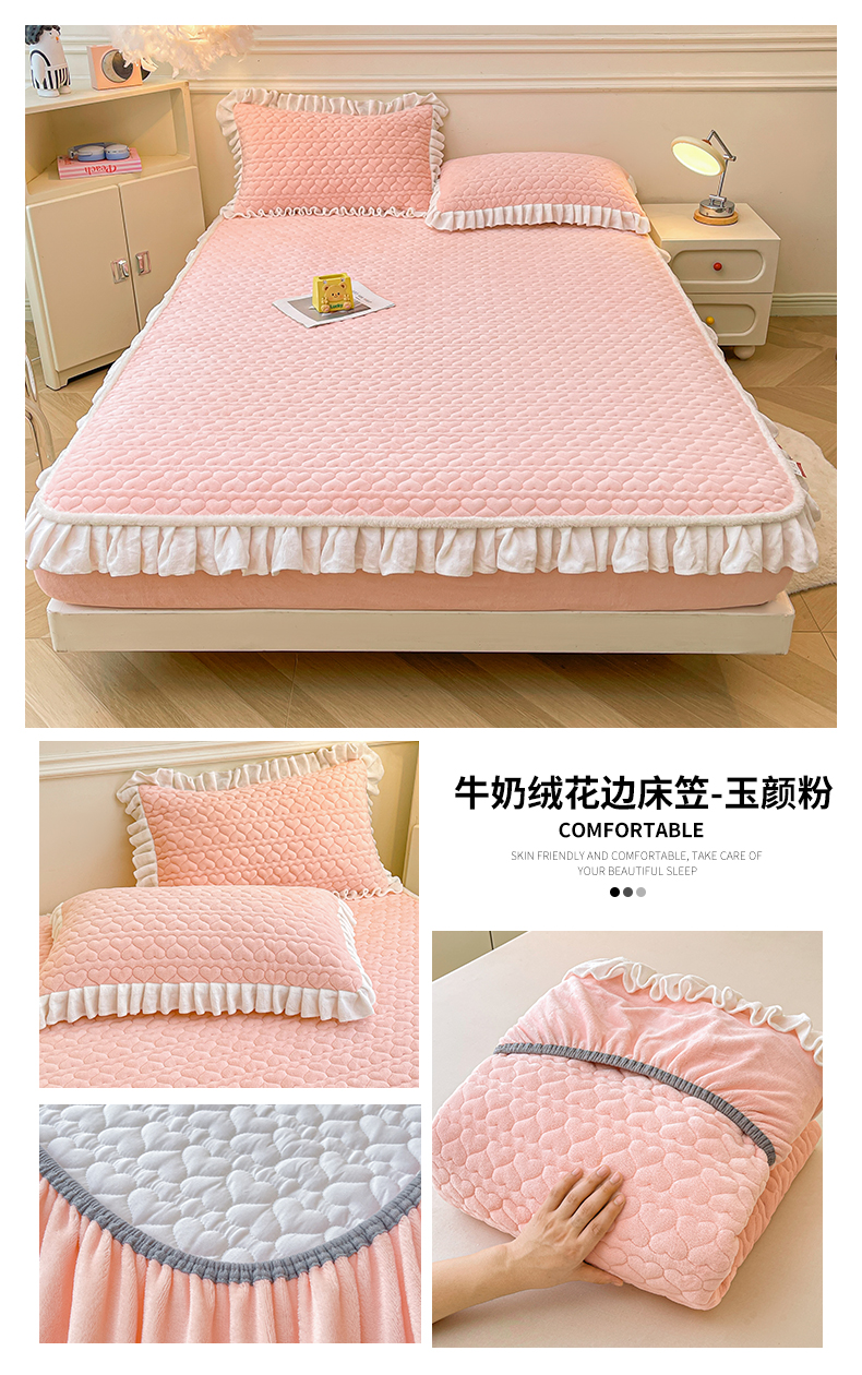 • 91家纺网 家纺一手货源 找家纺 雯豆家纺 2025新款牛奶绒花边床笠单床笠单品床笠单件床笠 牛奶绒花边床笠-多彩生活