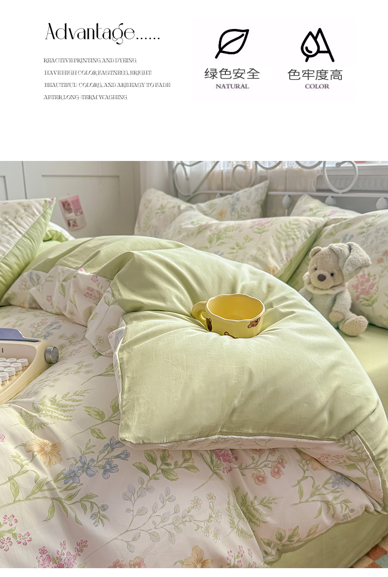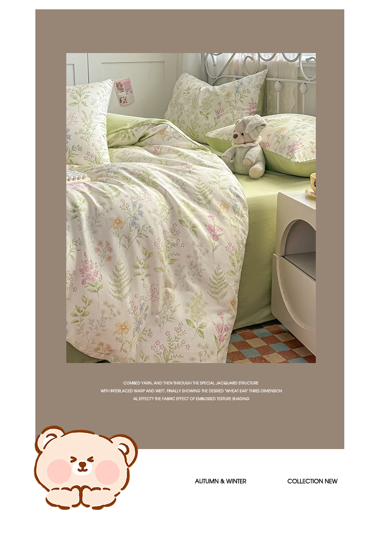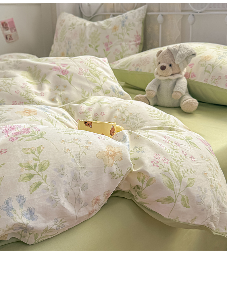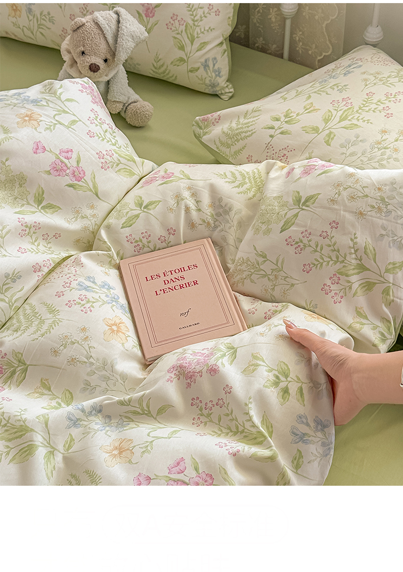 恒爱家纺 2025新款全棉花卉四件套 绿色仙子