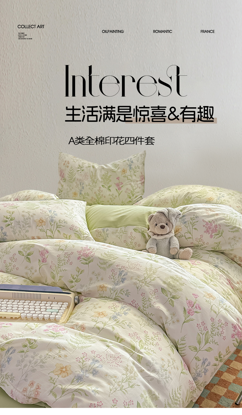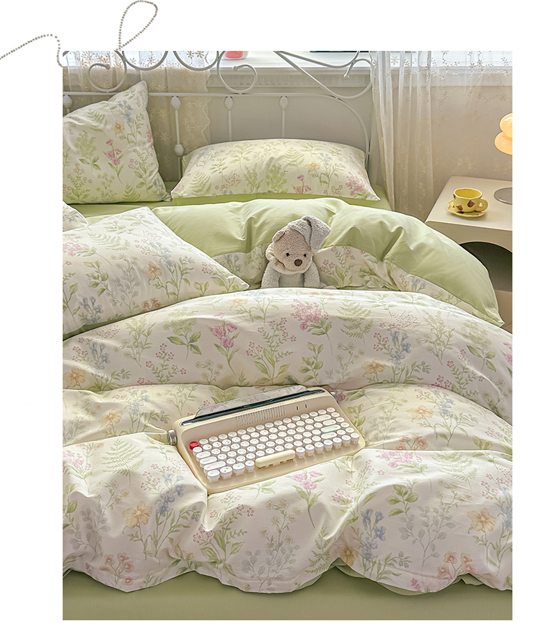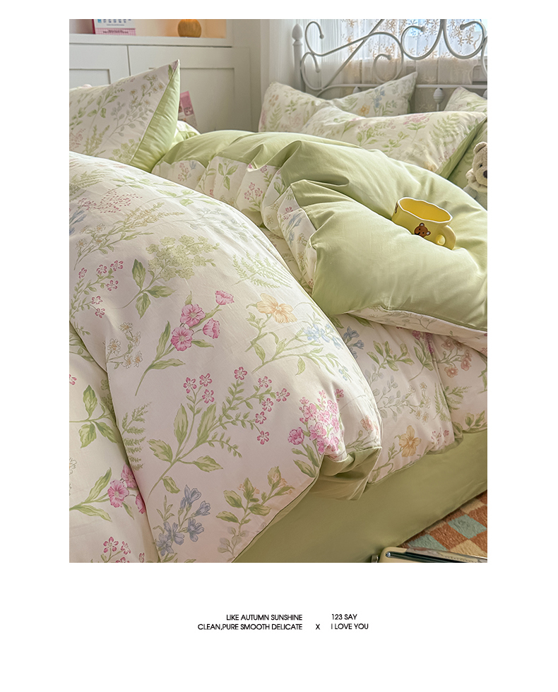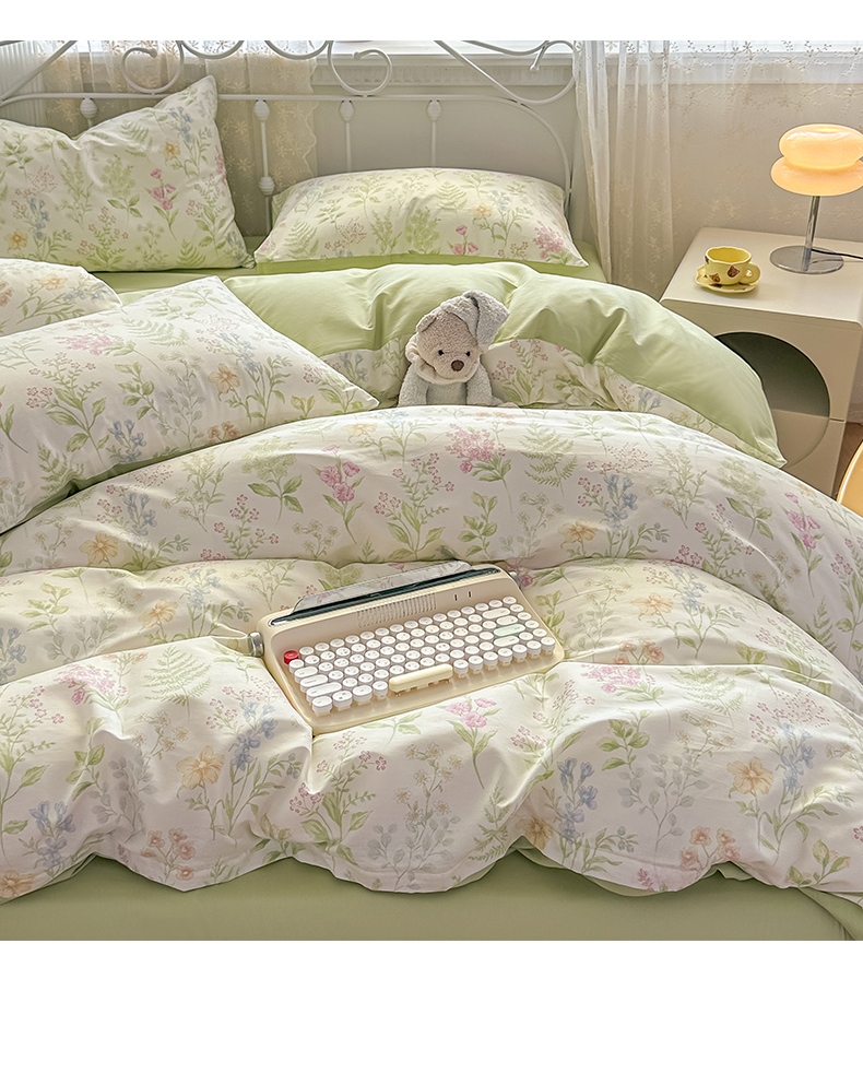 恒爱家纺 2025新款全棉花卉四件套 绿色仙子