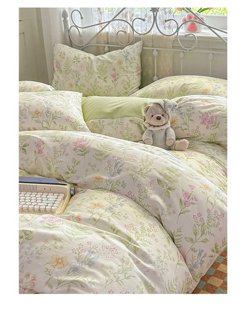 商品名称:恒爱家纺 2025新款全棉花卉四件套 绿色仙子