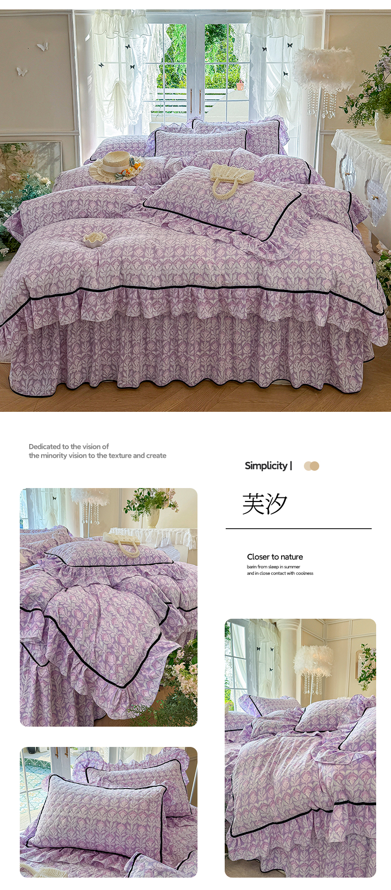 当前位置: 91家纺网 > 商品网购 > 床品套件 > 四件套 > 其它四件套 > 宜凡家纺 2025新款A类水洗珍珠棉夹棉床裙四件套 兰伊