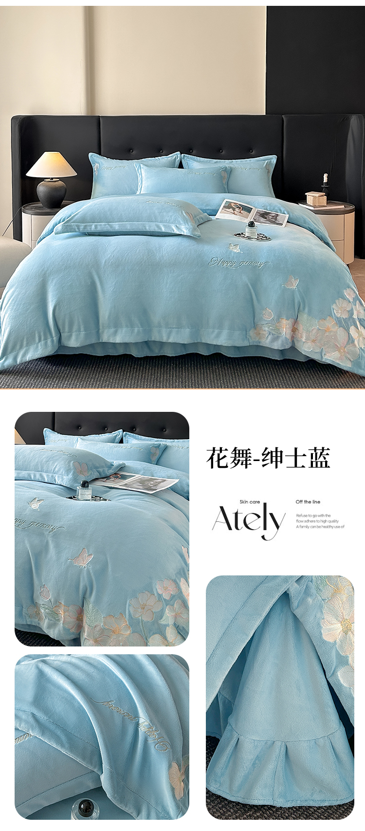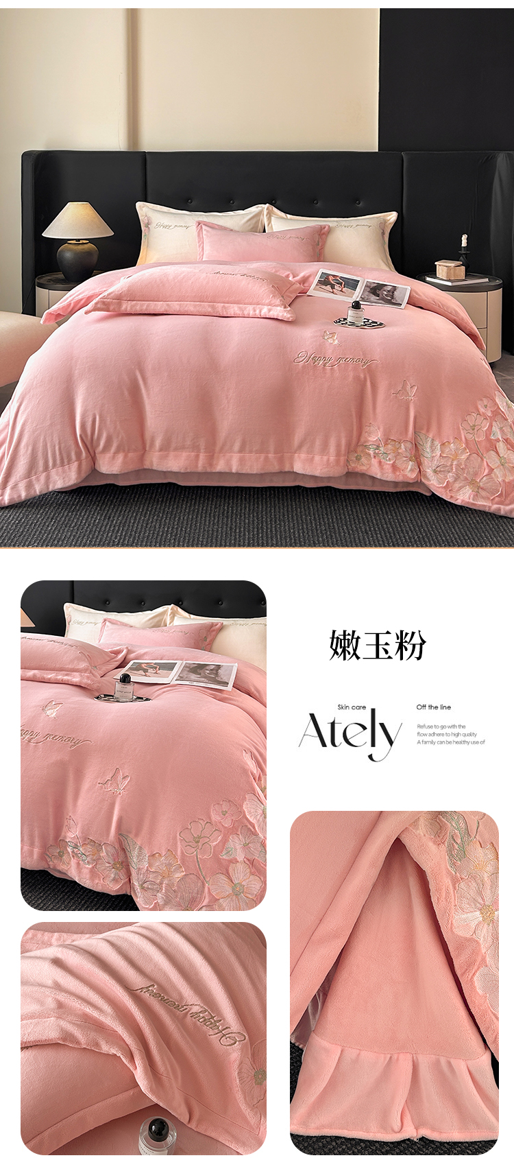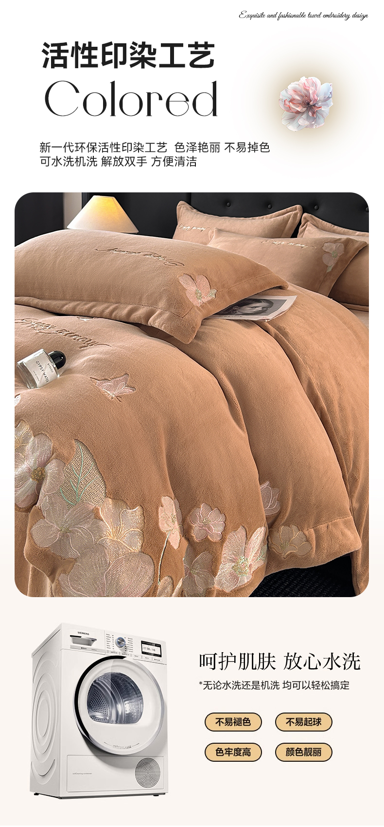 恋绒家纺 2025新款牛奶绒刺绣四件套-花舞 轻奢咖