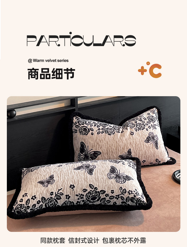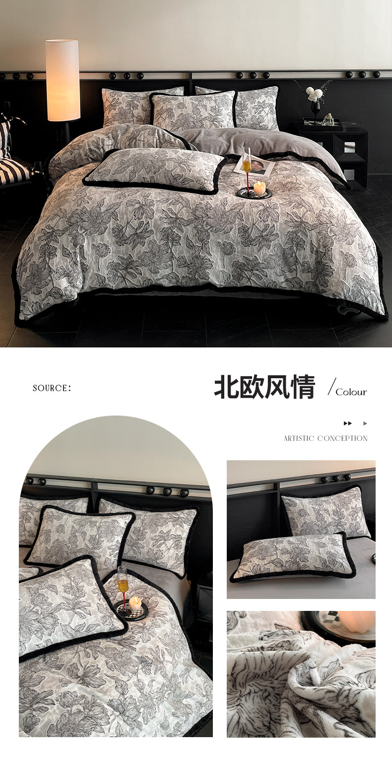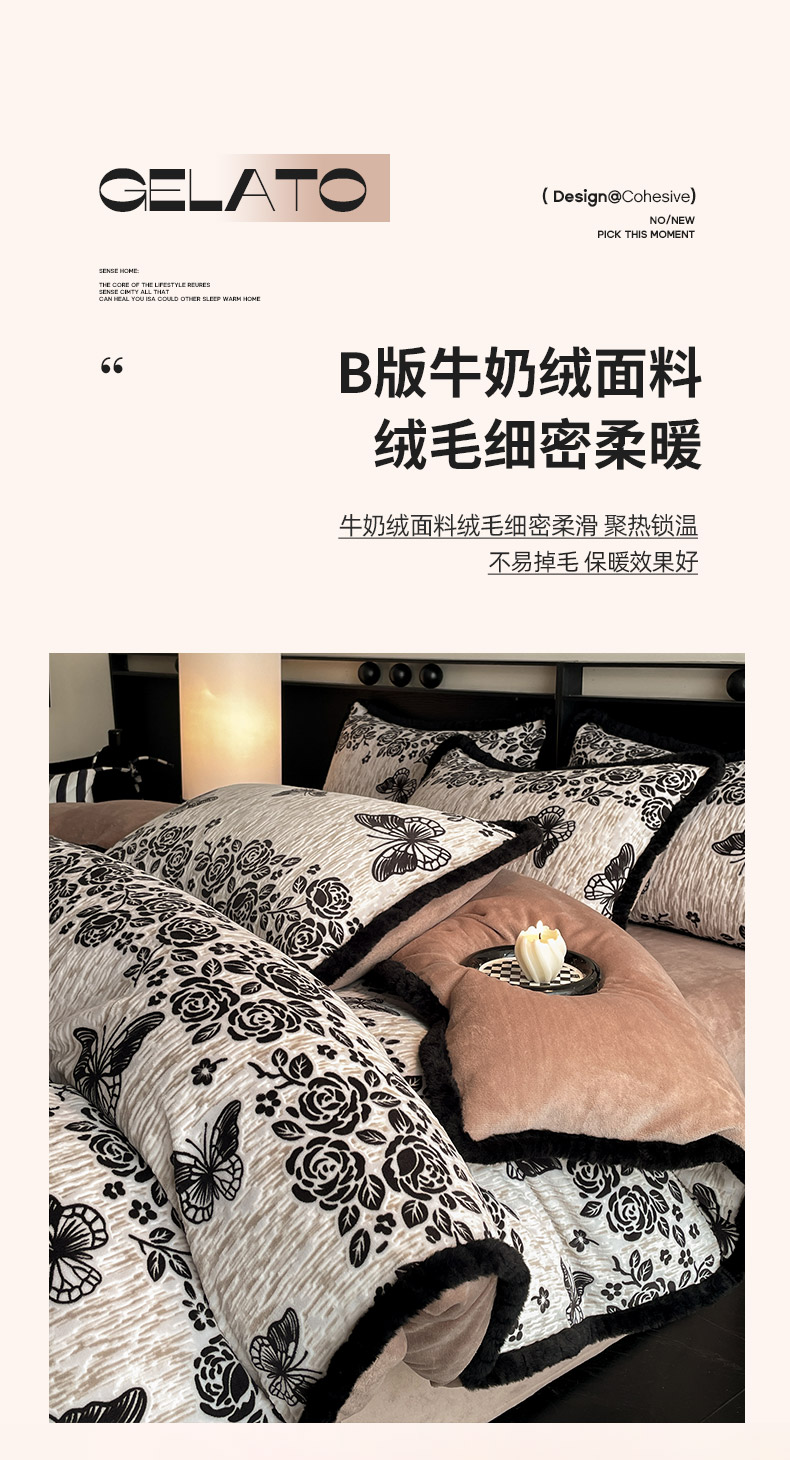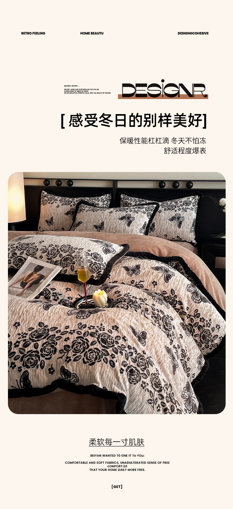 商品名称:吾诺家居 2025新款美拉德雕花绒黑金系列四件套 蝶恋花