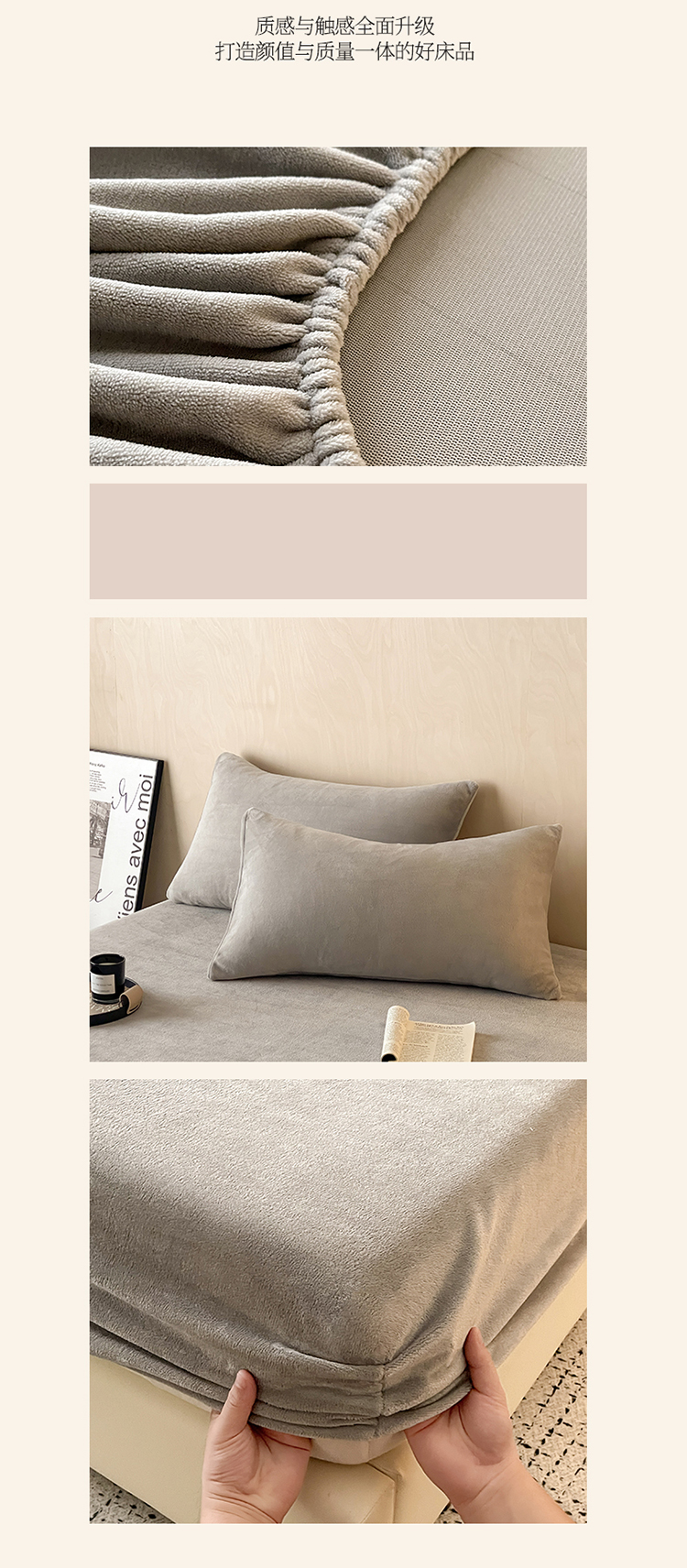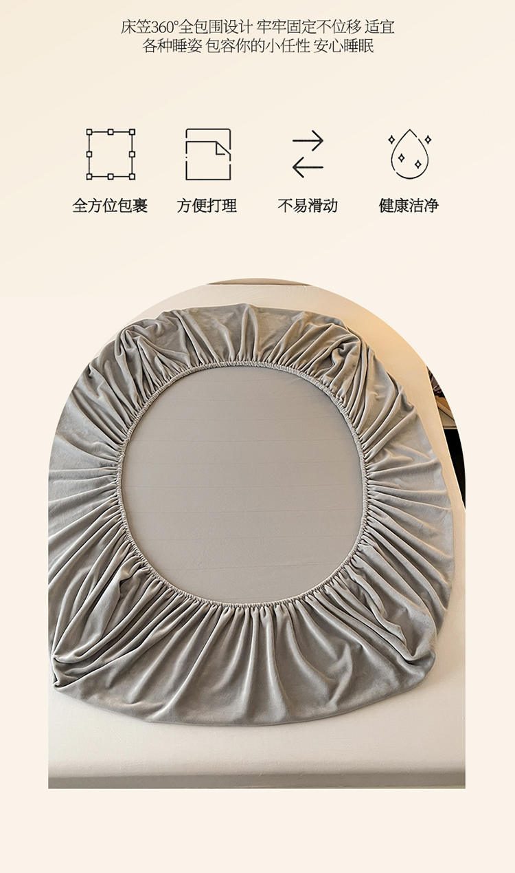 商品名称:世爵 2025新款简约纯色牛奶绒床笠单床笠床笠单件床垫保护套 高级灰